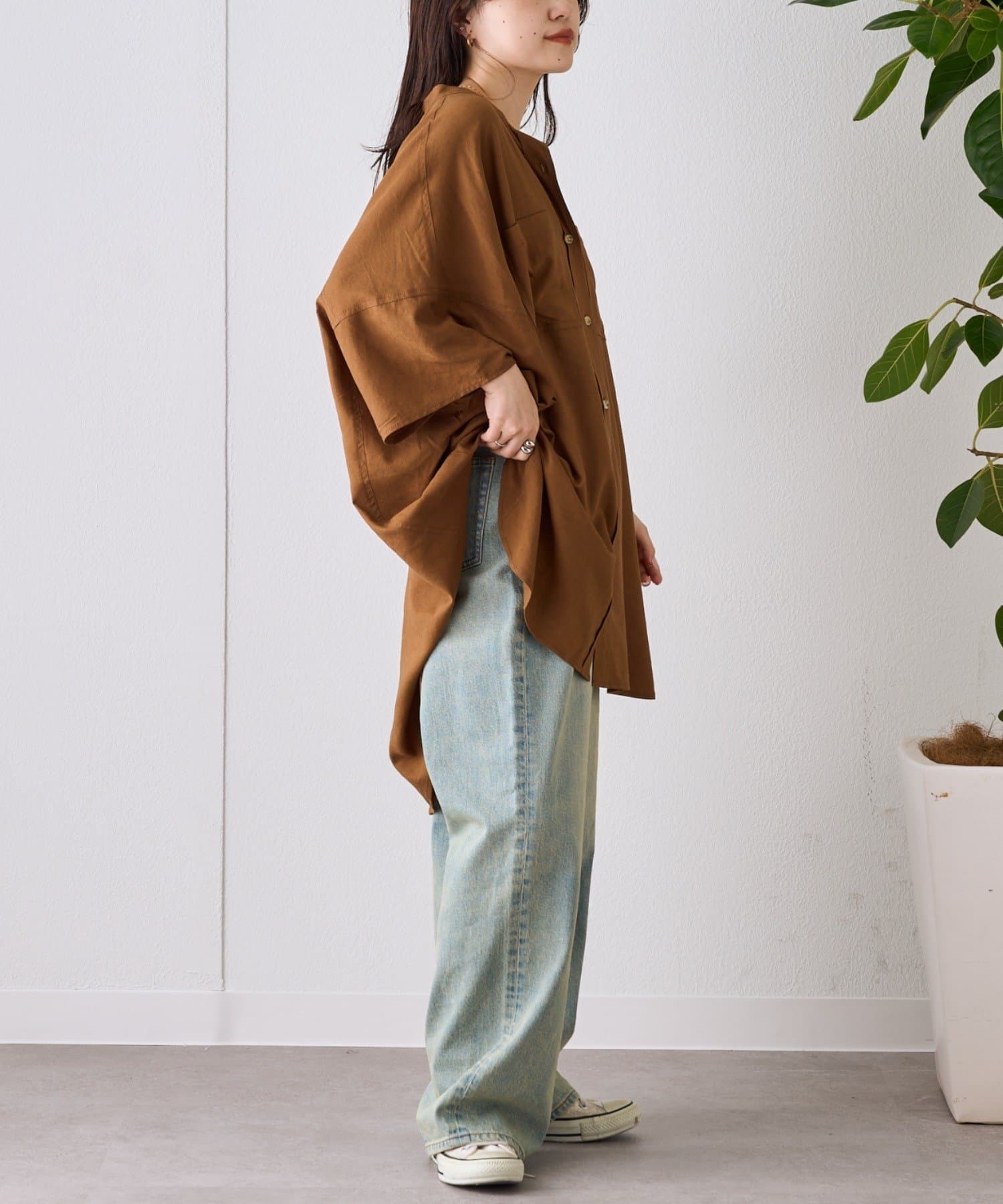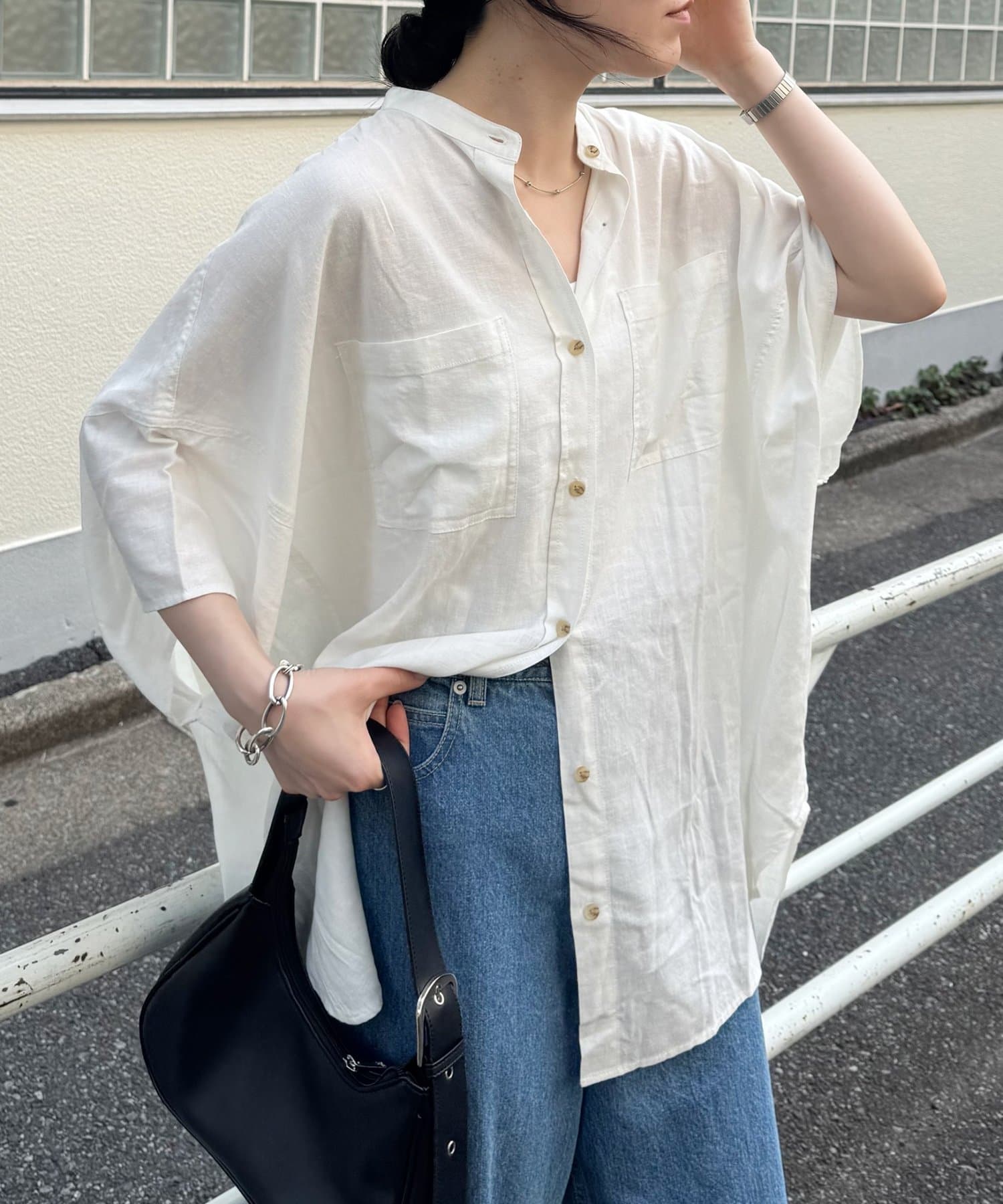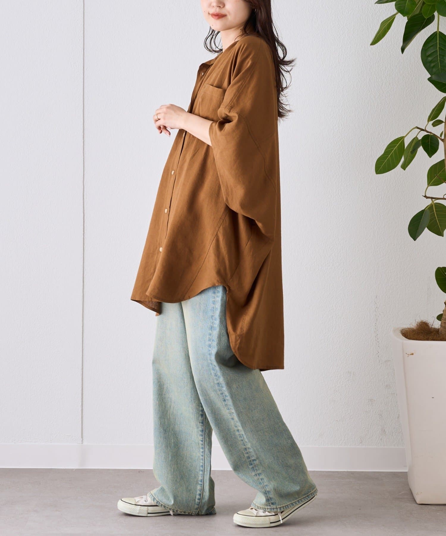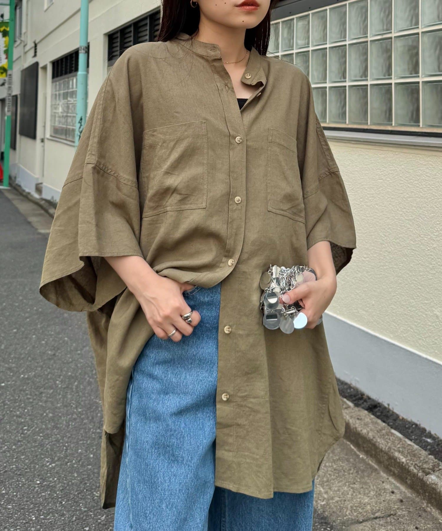 リネンレーヨン×オーバーサイズで、リラックス感のあるシャツ。