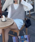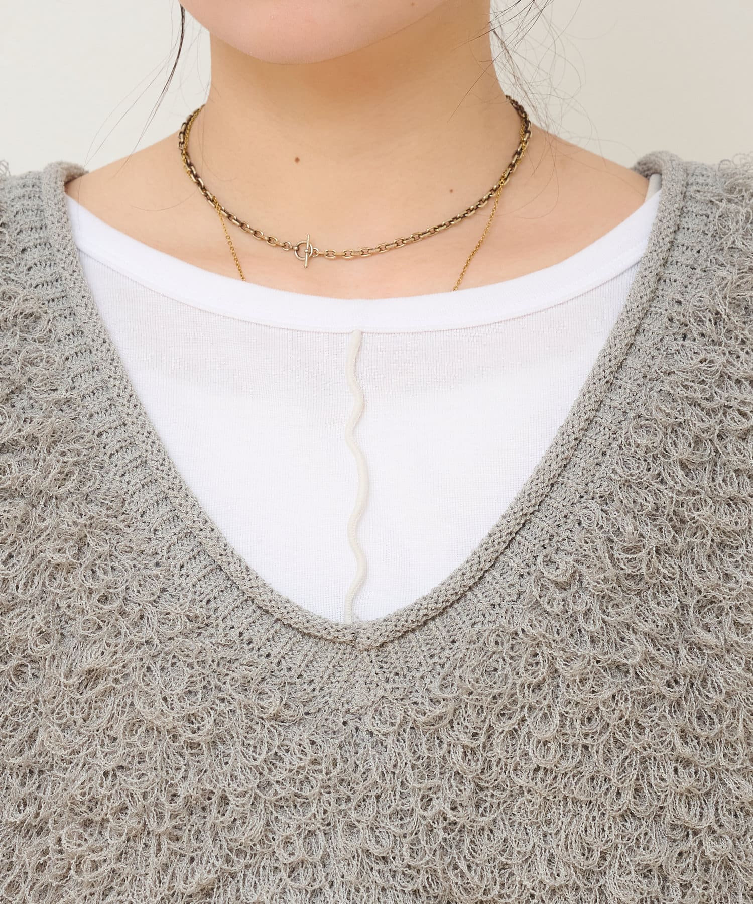 Vネックになっているので、顔周りすっきり見せてくれるのも嬉しいポイント◎