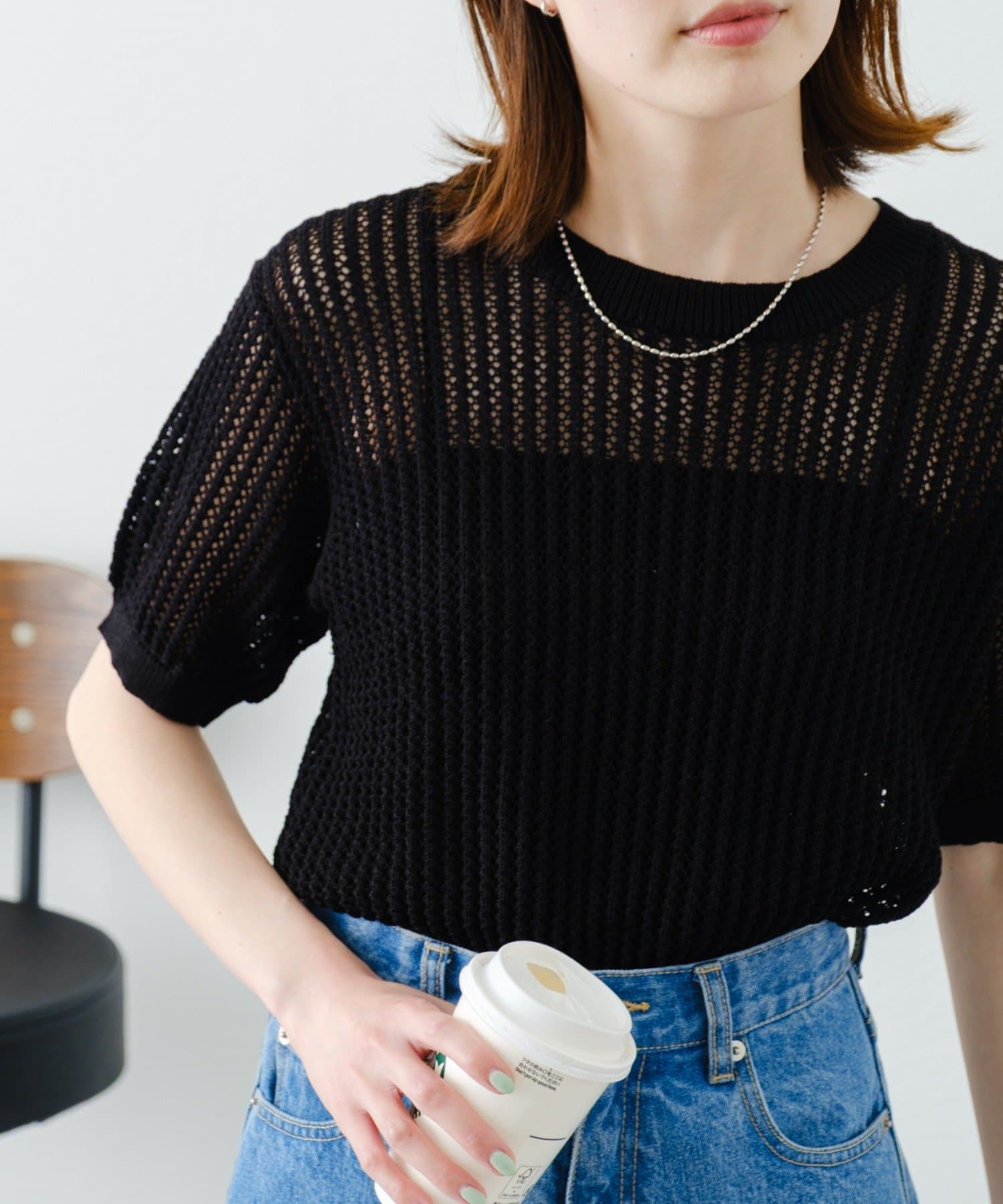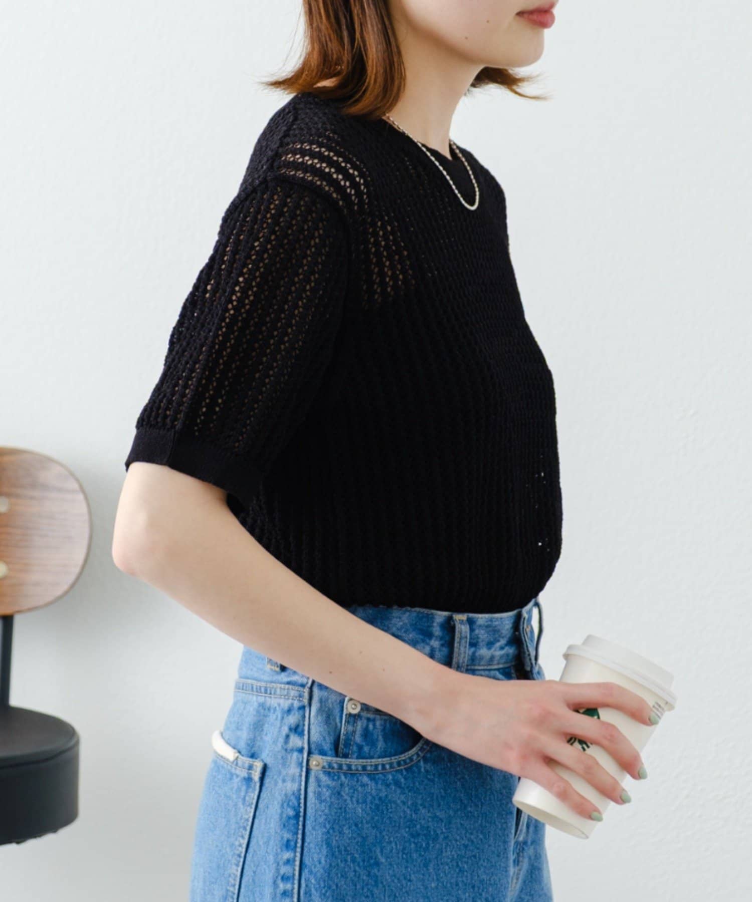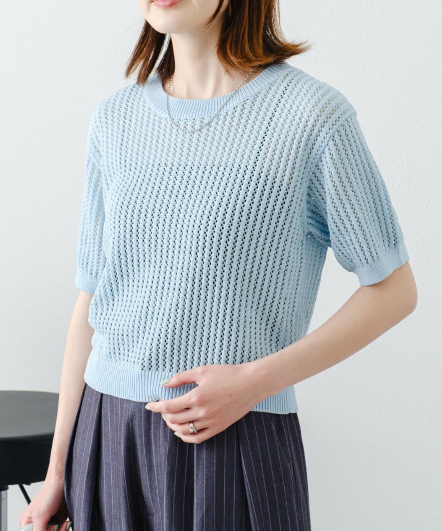 \1枚で完成◎大人ヘルシーな透かし編みニット/