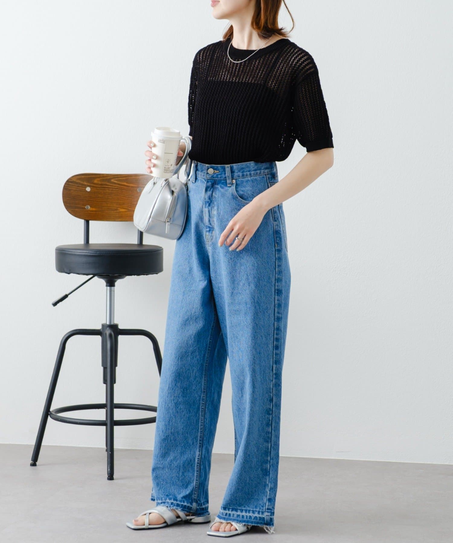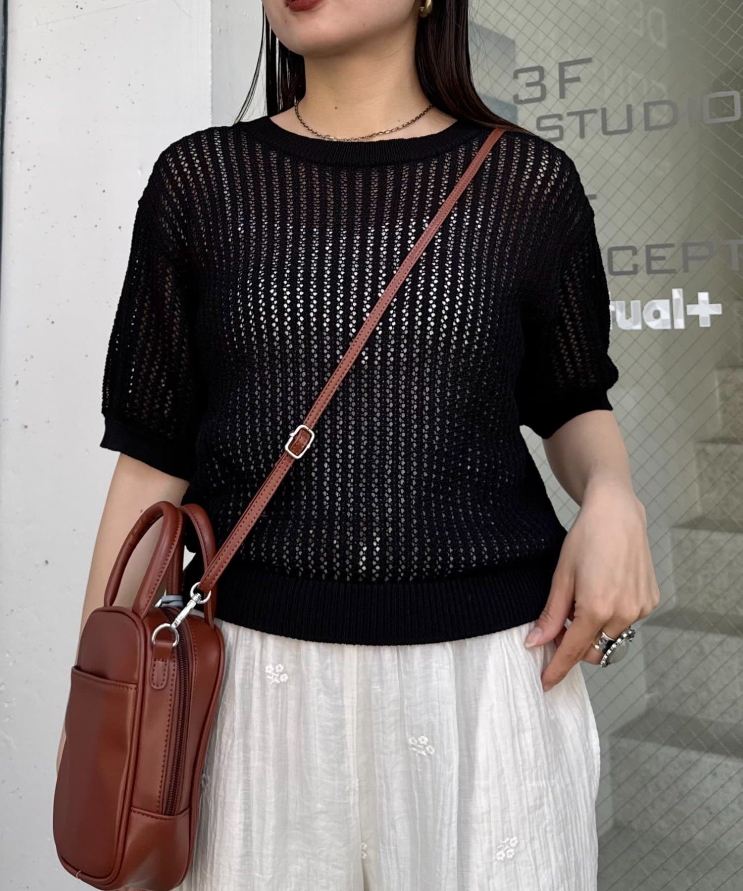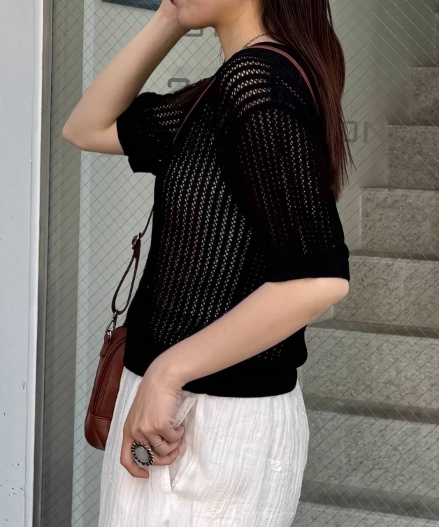\1枚で完成◎大人ヘルシーな透かし編みニット/