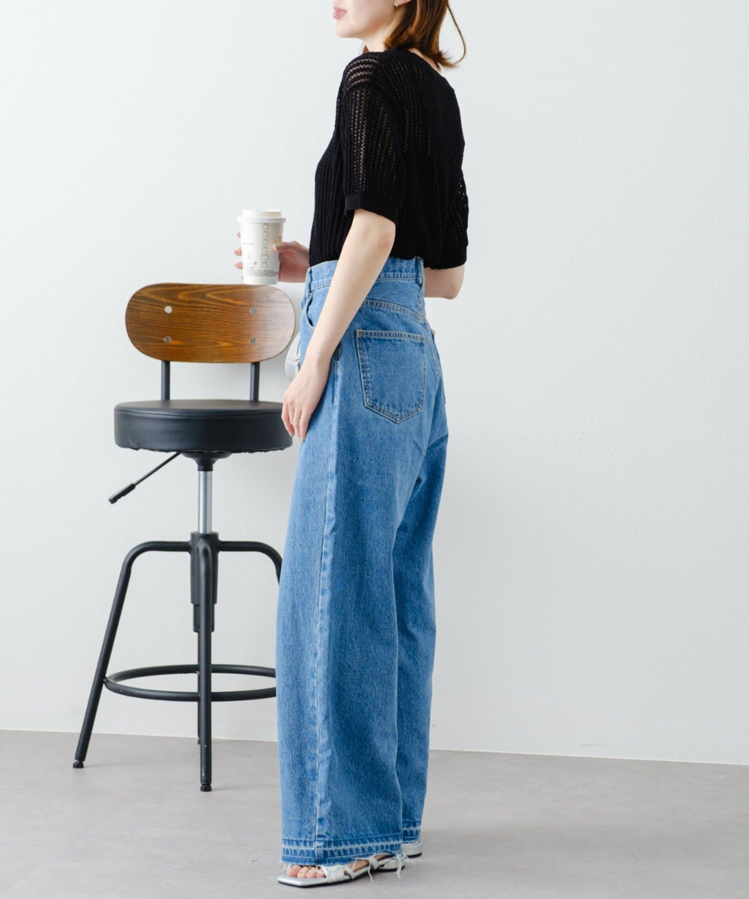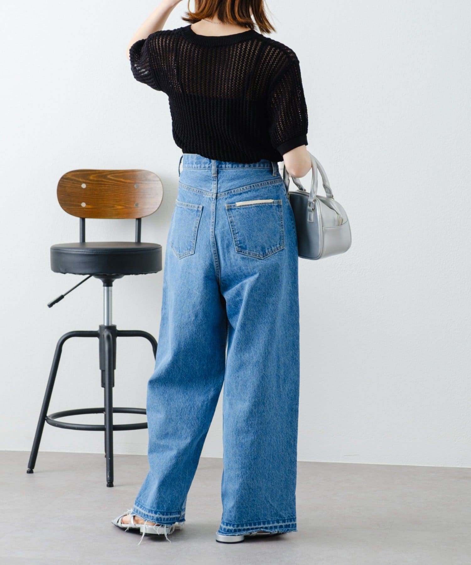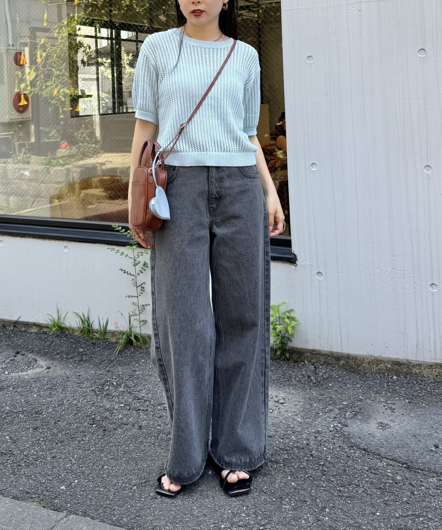 着丈がすっきりしているのでワイドパンツやロングワンピースを合わせるとバランスの良いスタイリングが叶います。