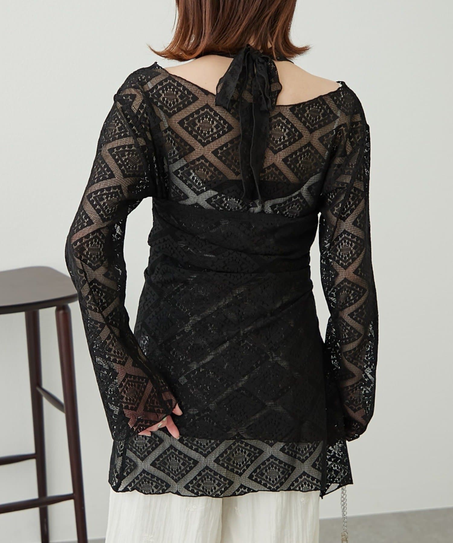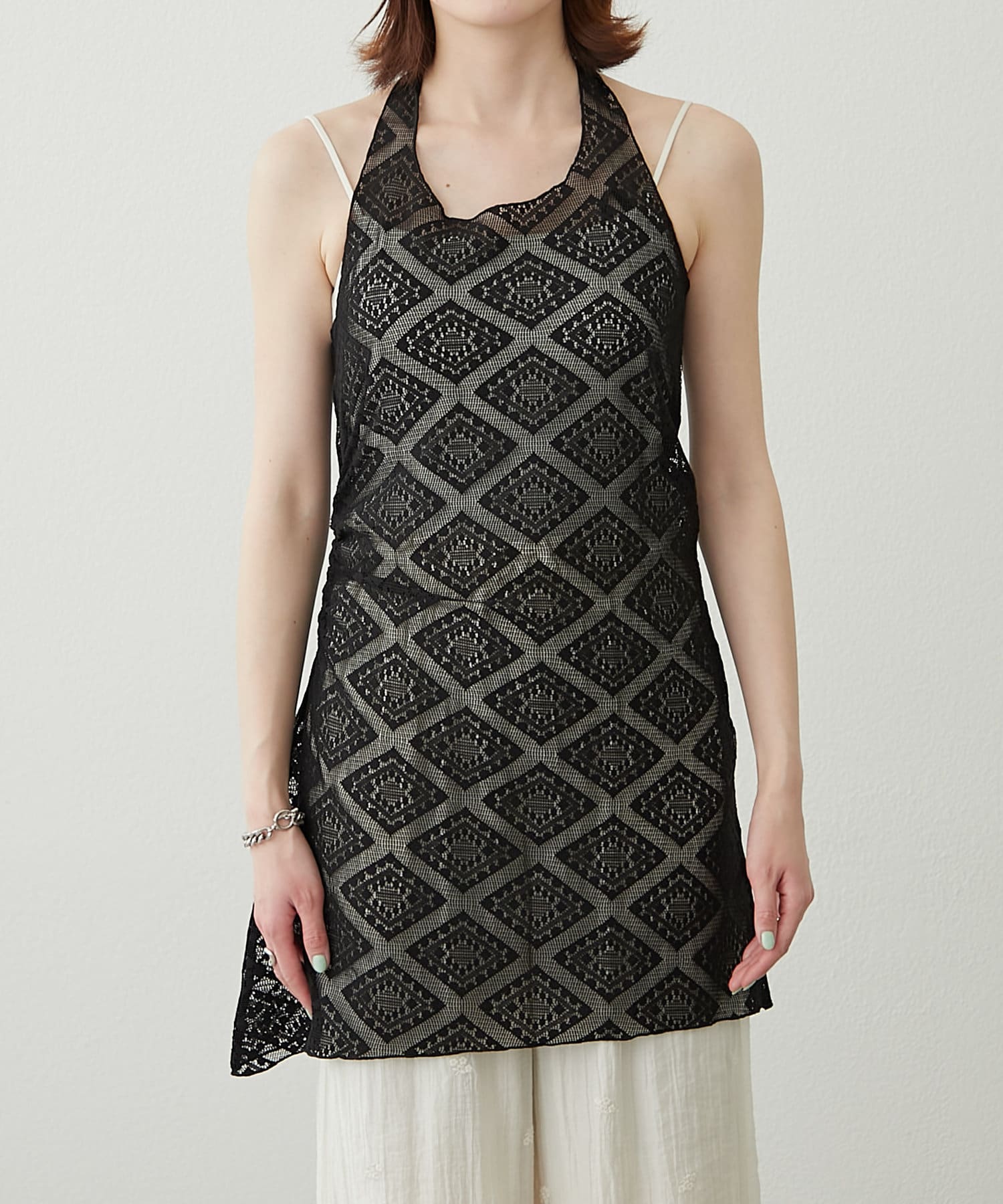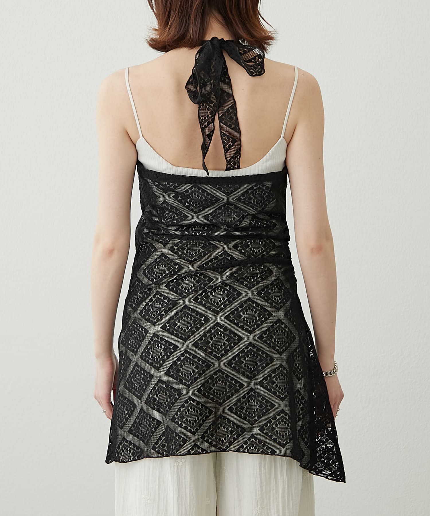 トレンドのレーストップスをホルターキャミとセットにしました◎