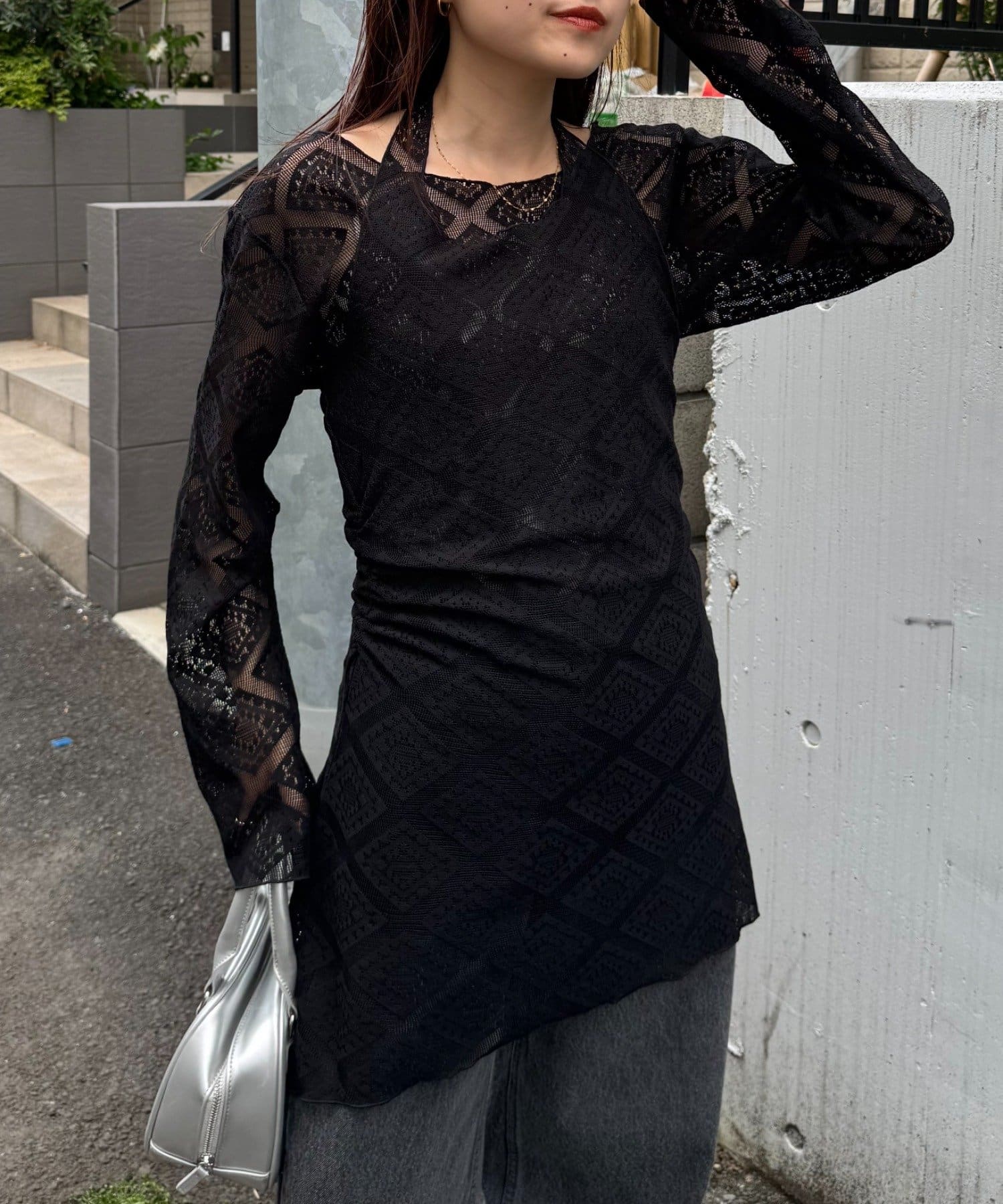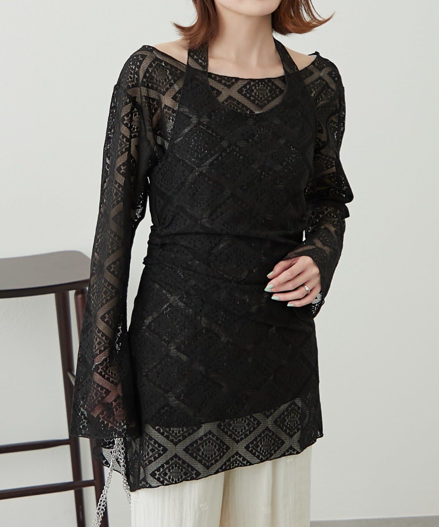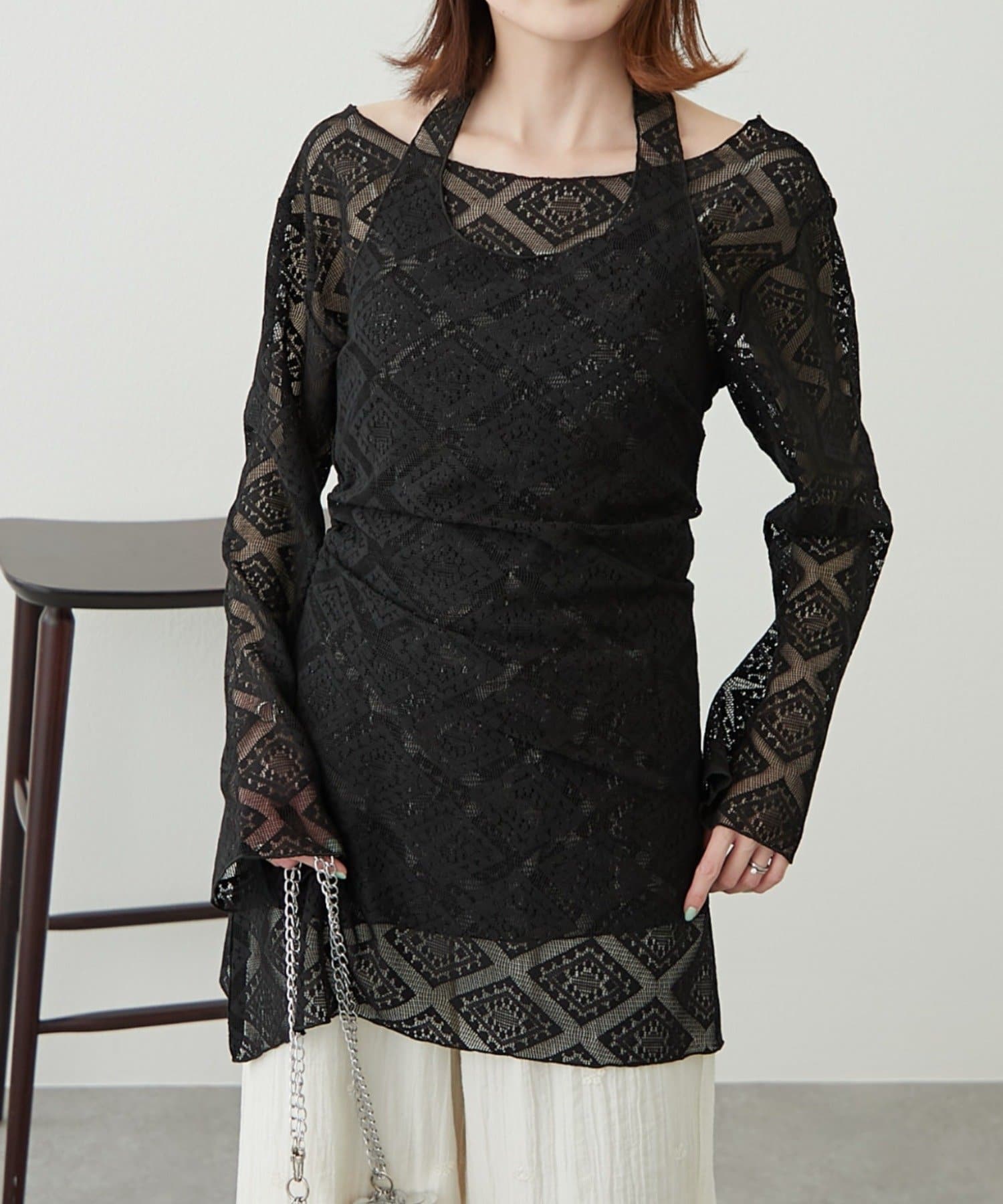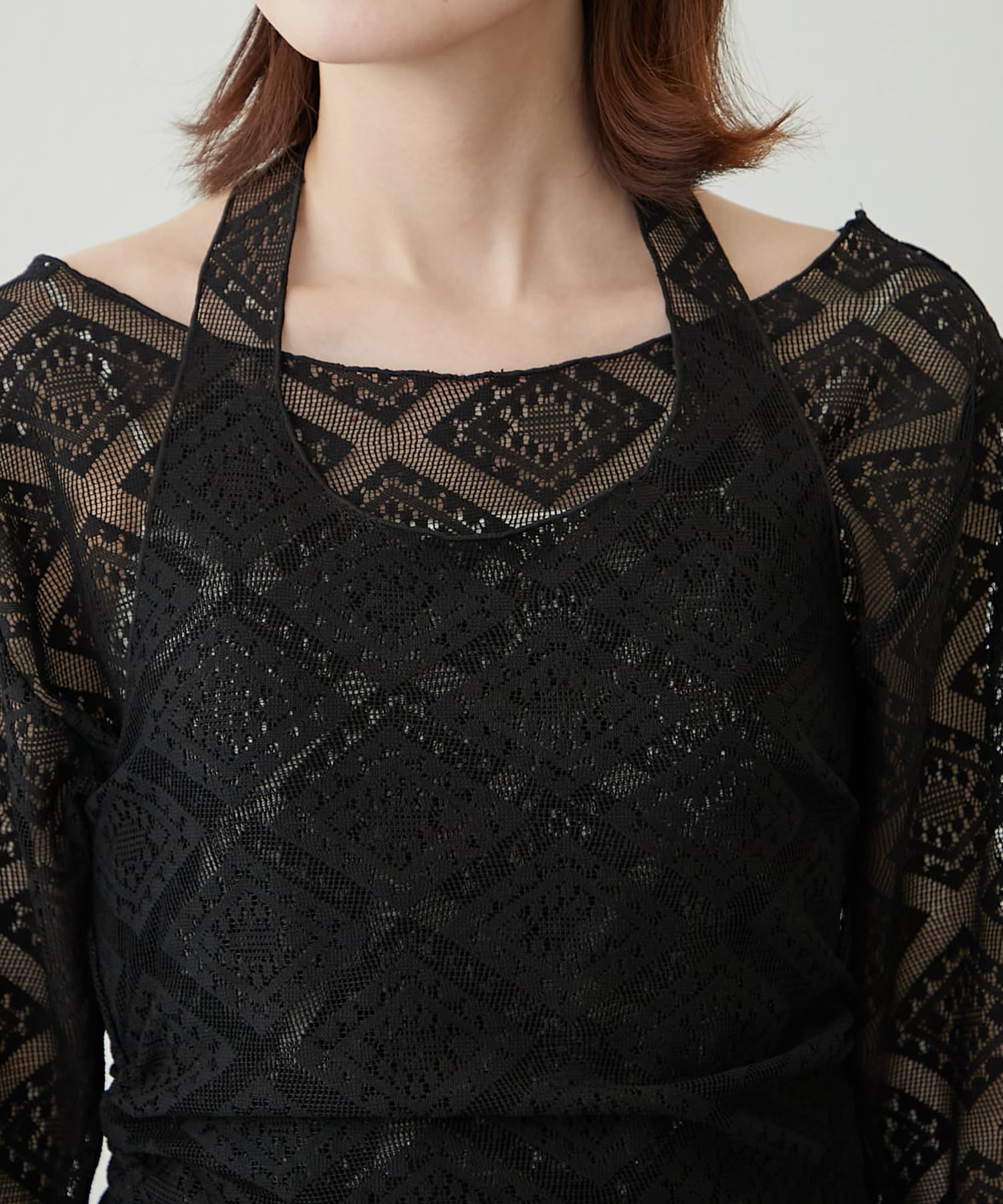 トレンドのレーストップスをホルターキャミとセットにしました◎