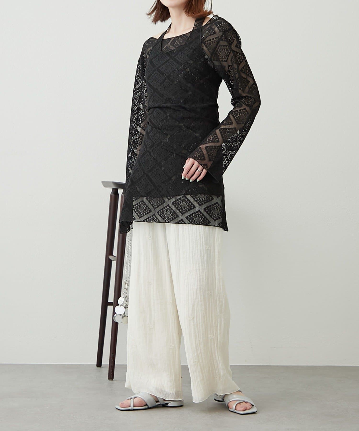 セクシー過ぎない程よい透け感のレースが大人ヘルシーなこなれ感をプラスしてくれます。