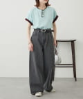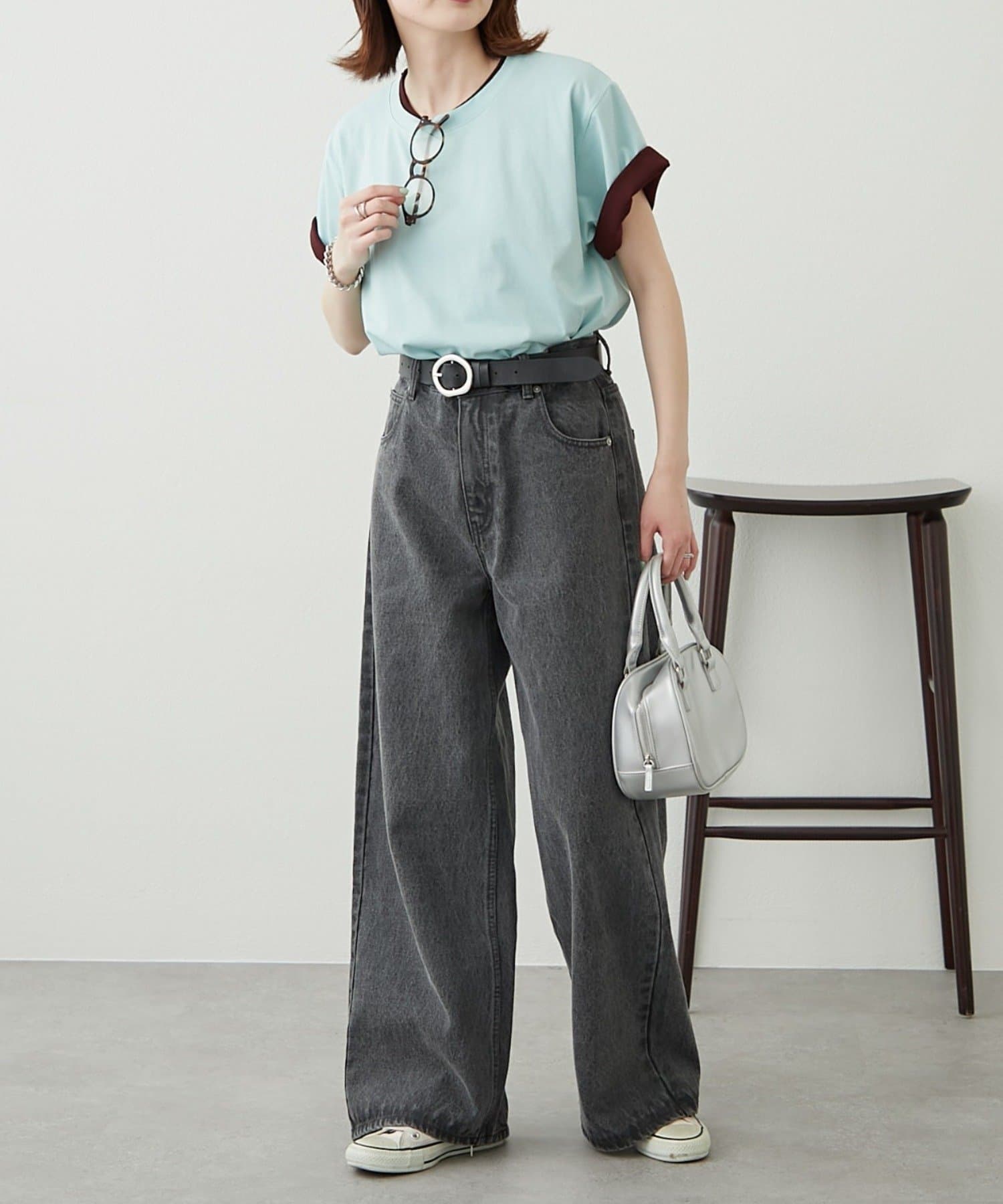 長すぎない着丈を活かしたワイドやストレートボトムとの組み合わせがおすすめ。