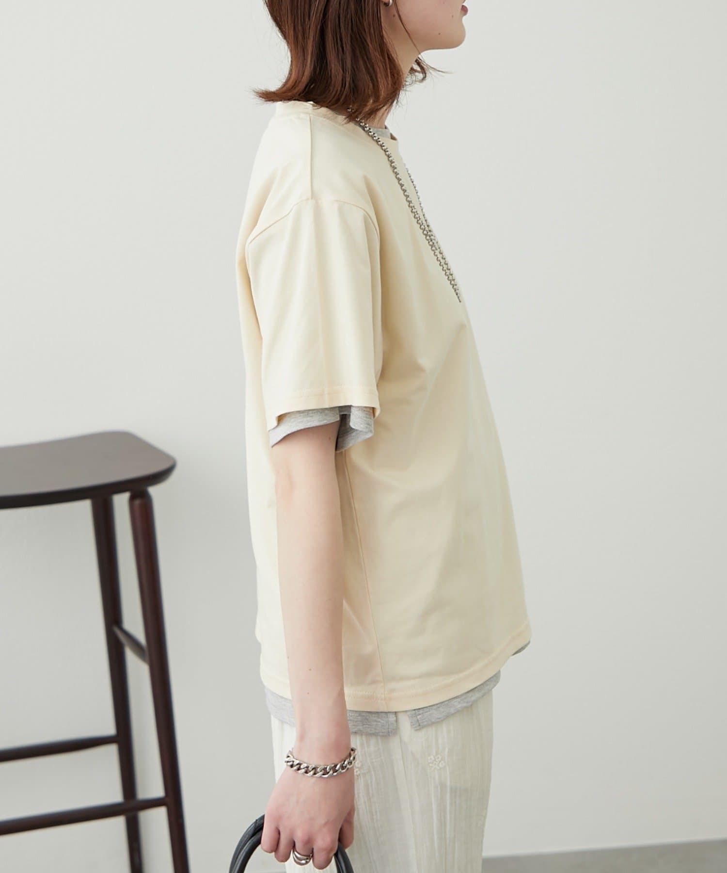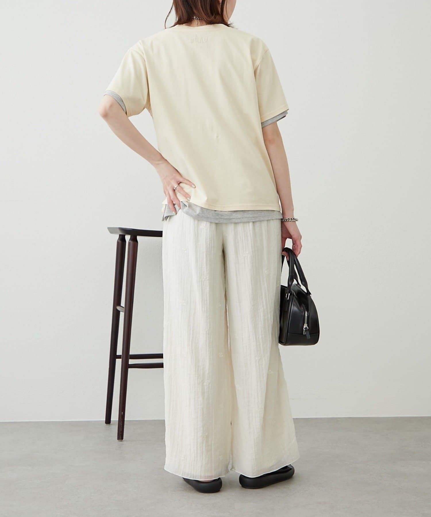 【willow】カラーレイヤードワンポイント刺繍TEE