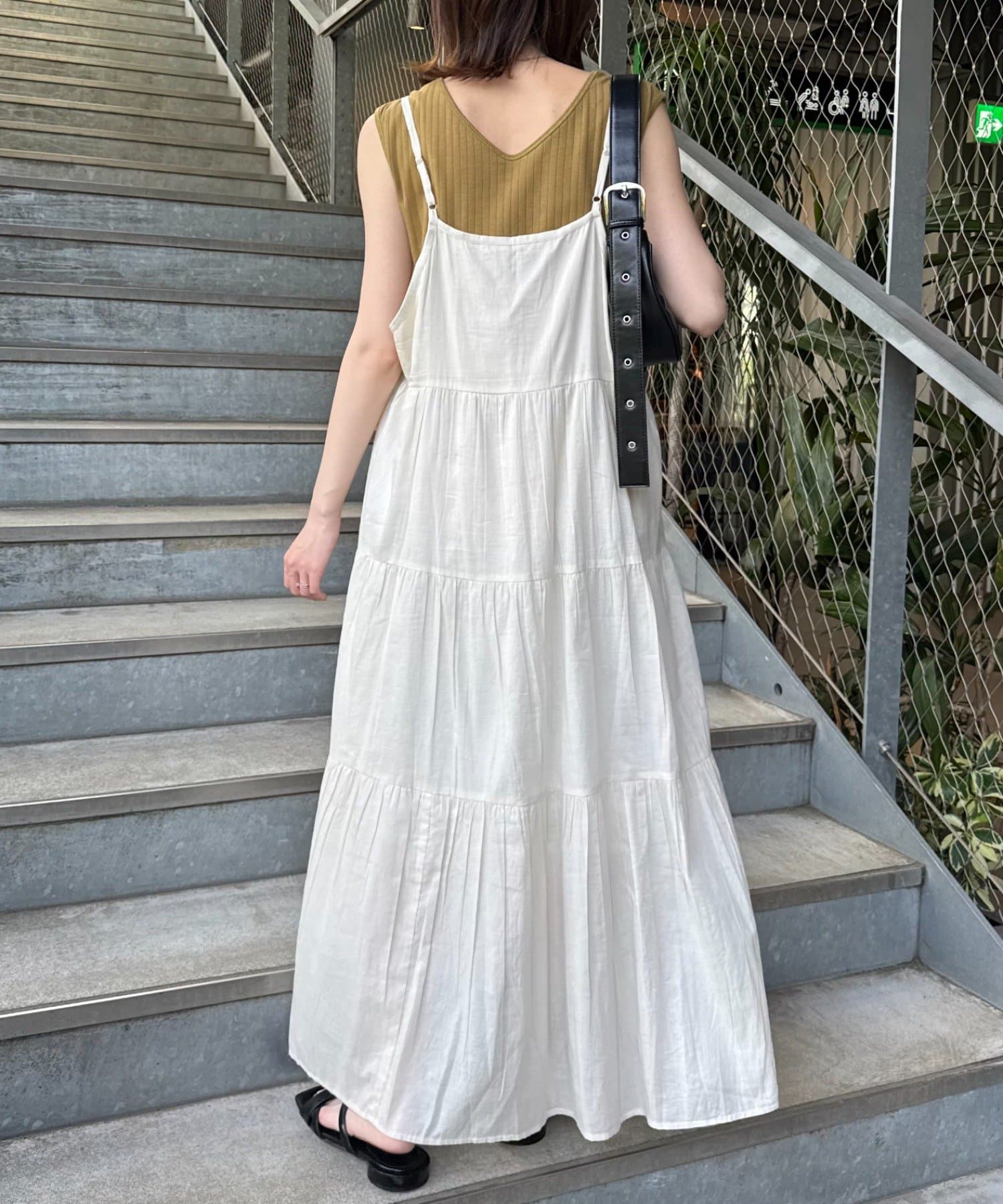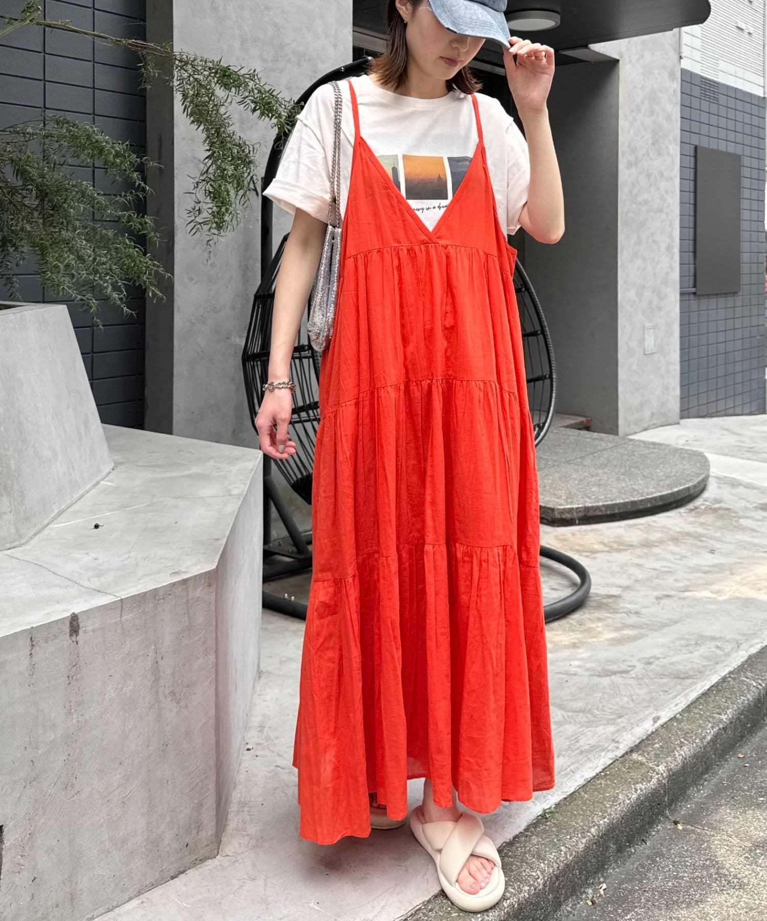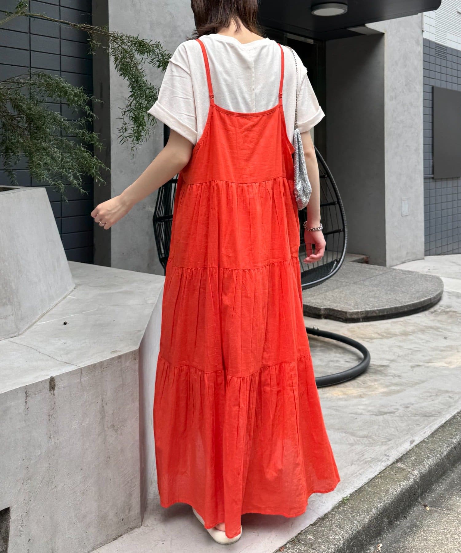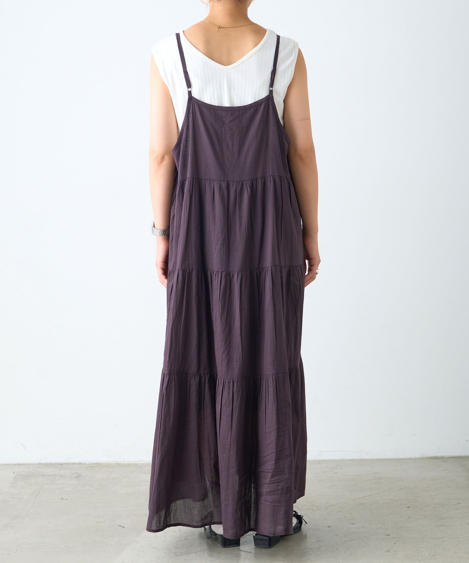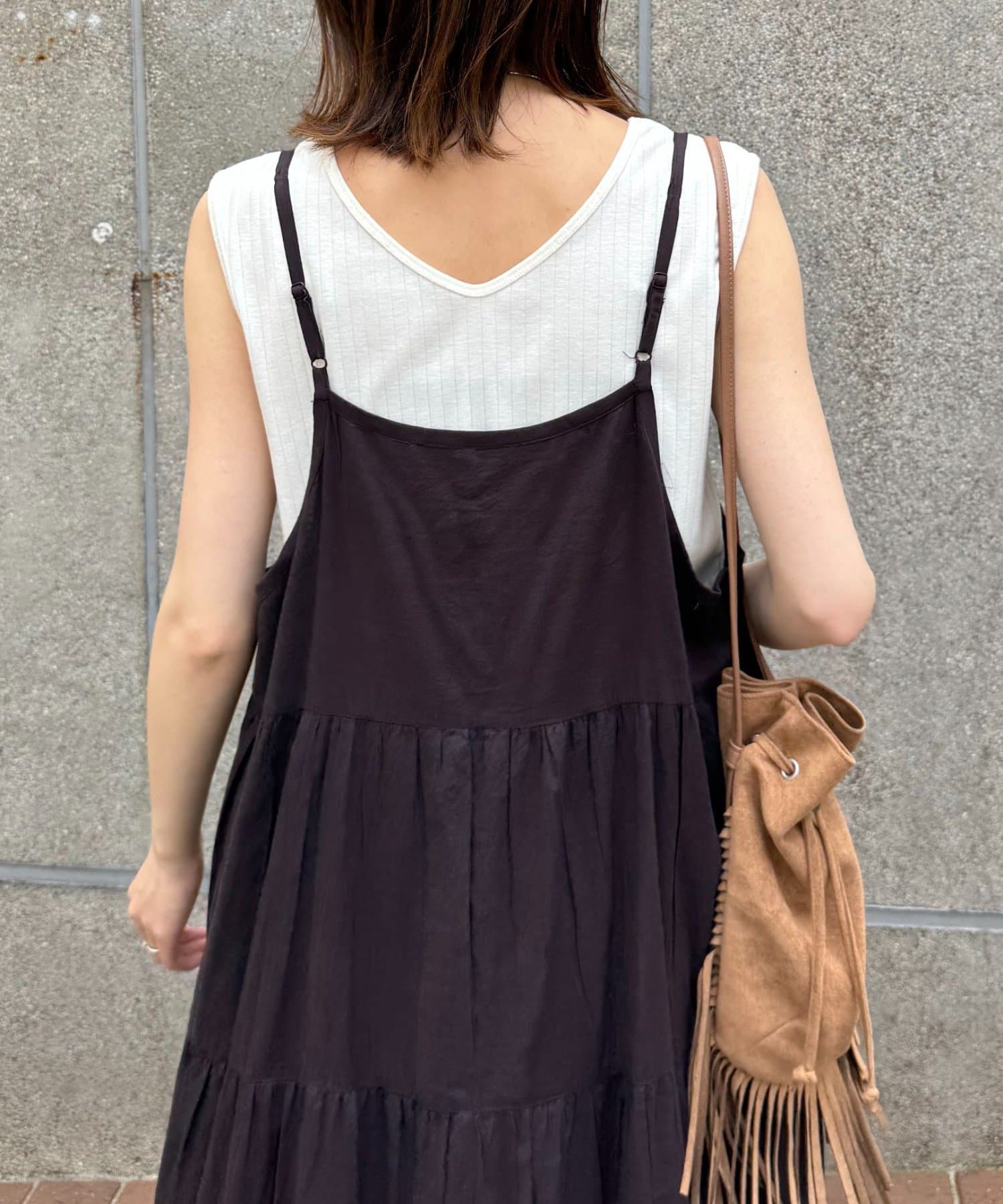 【India】シリコンウォッシュ2WAYティアードキャミワンピ