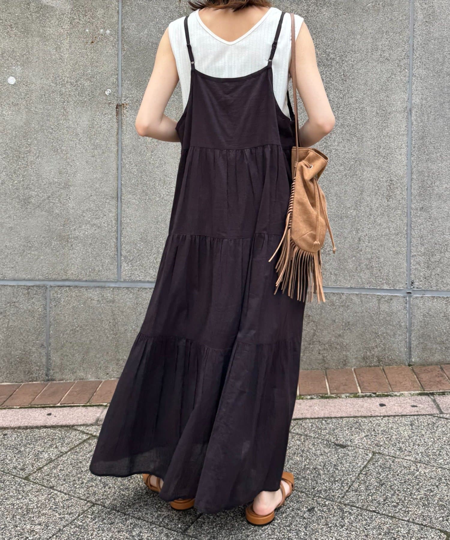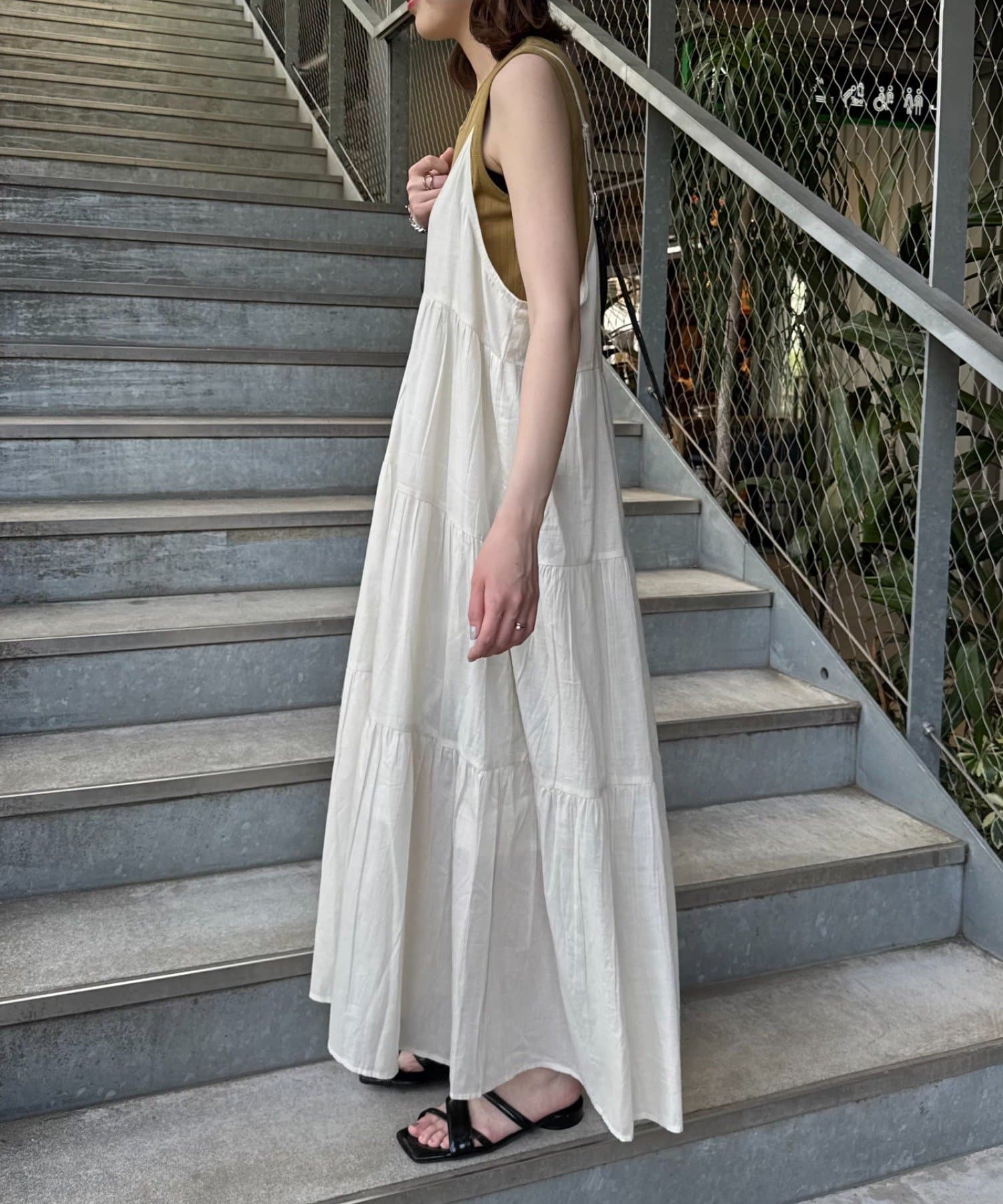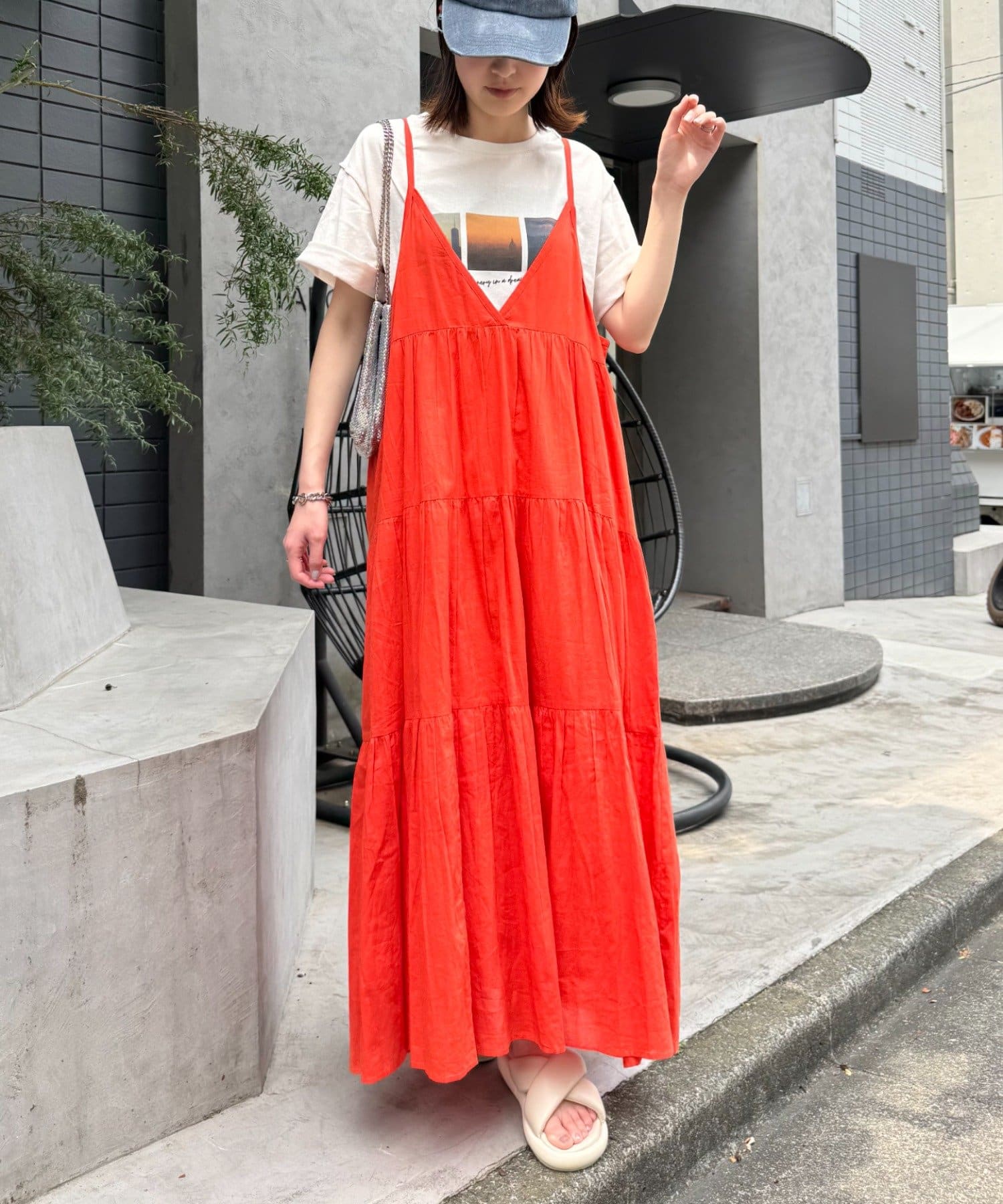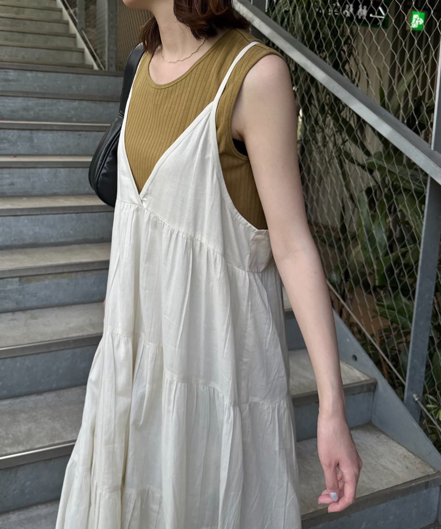 【India】シリコンウォッシュ2WAYティアードキャミワンピ