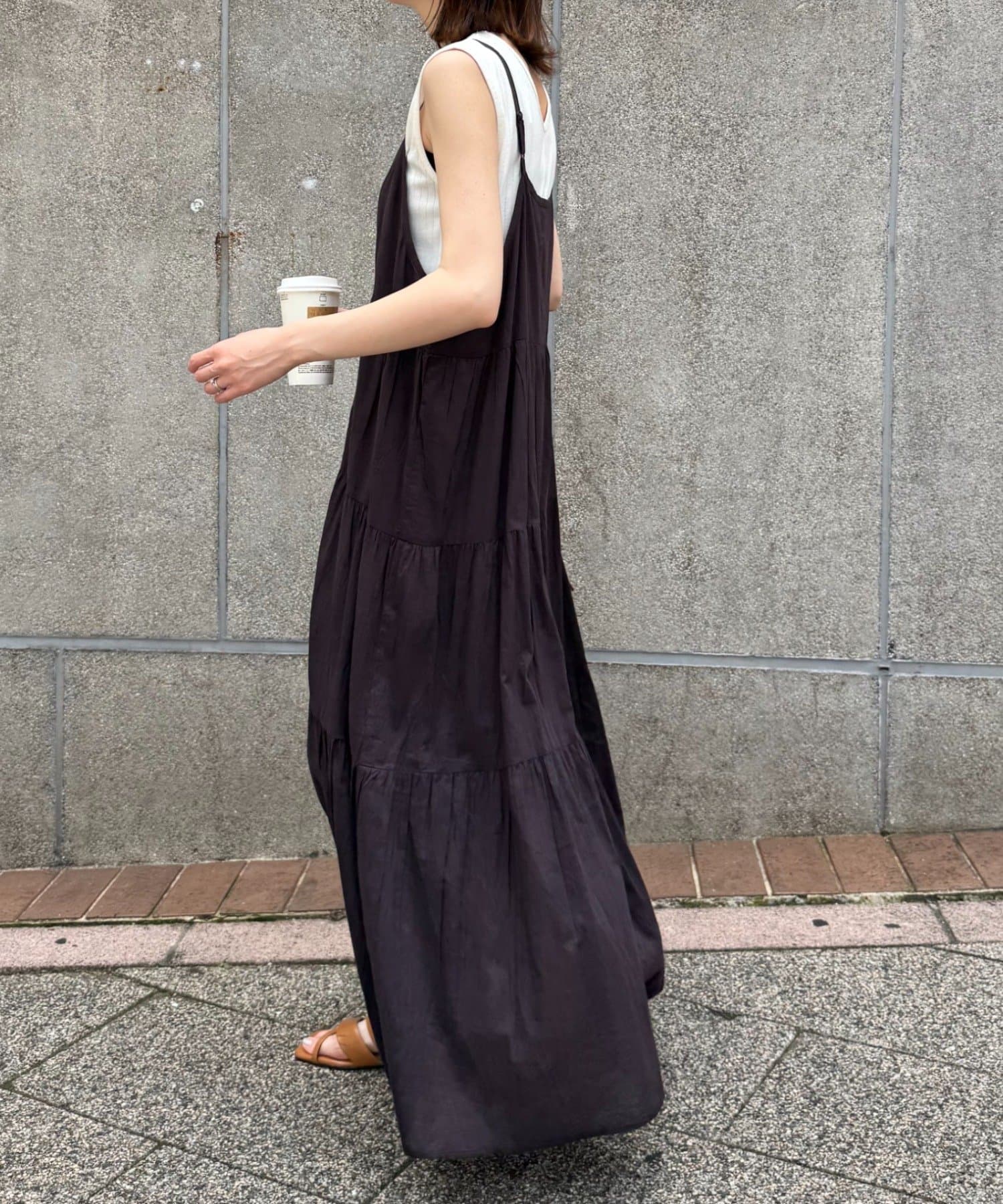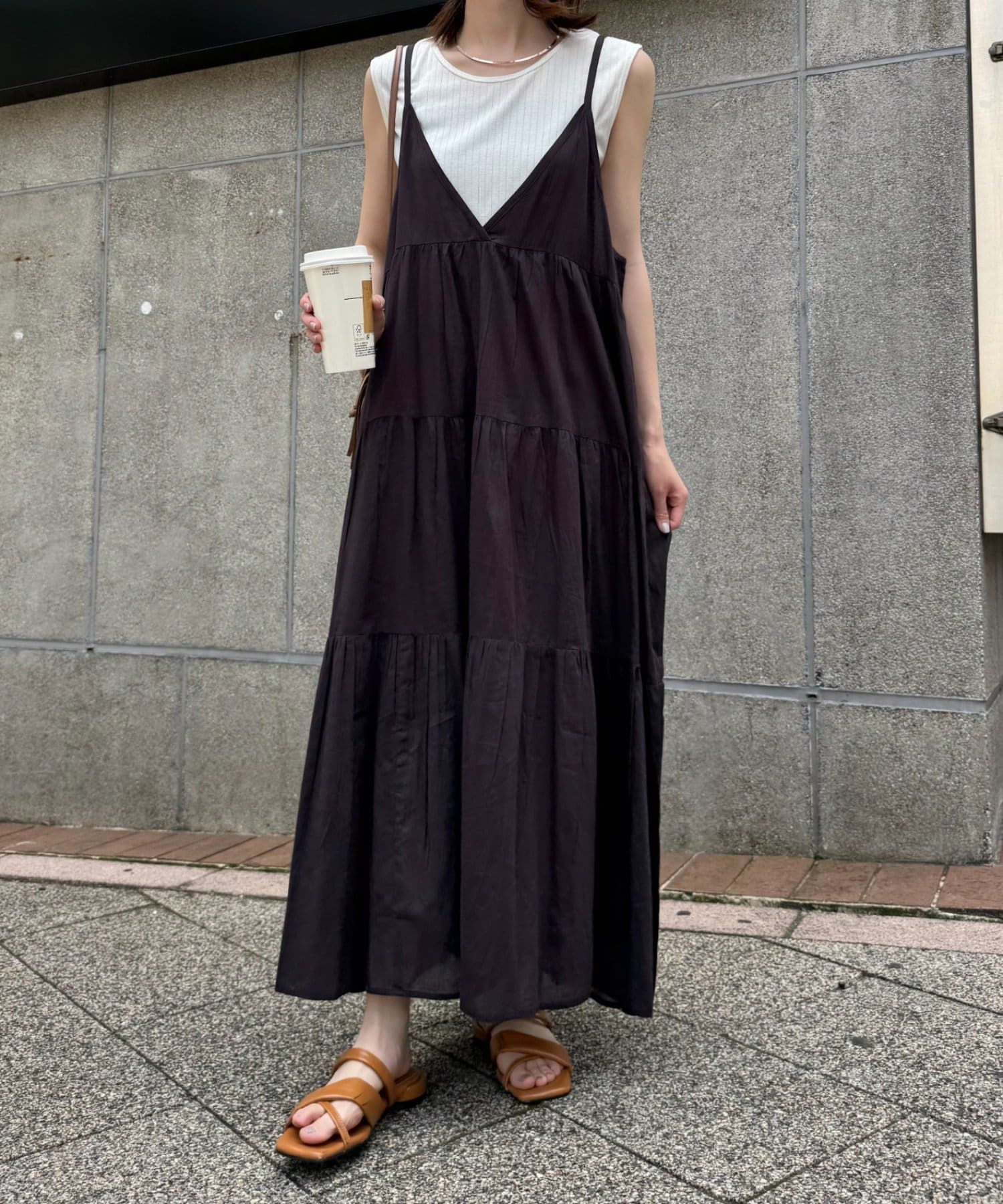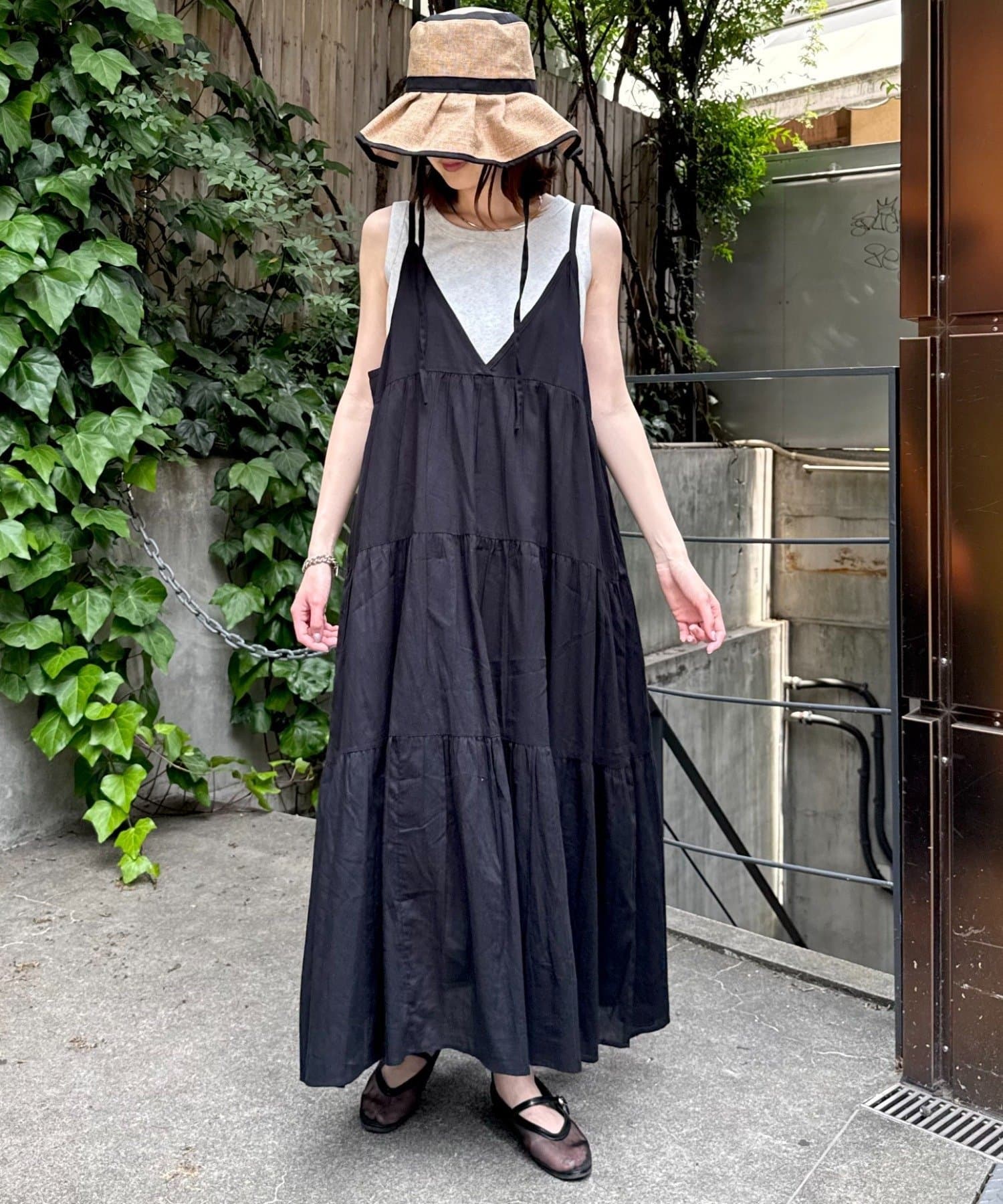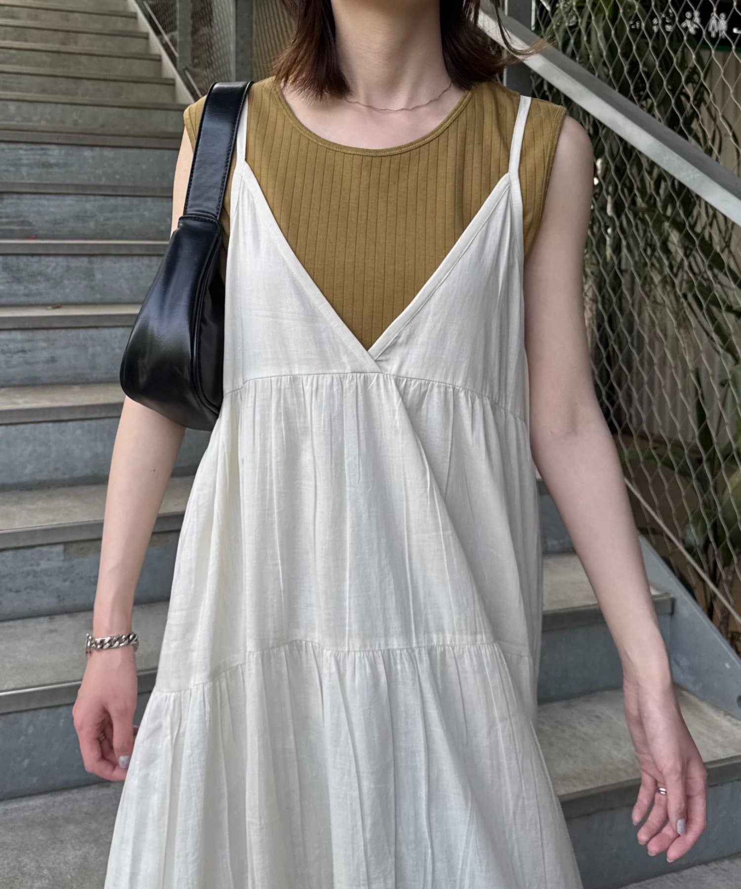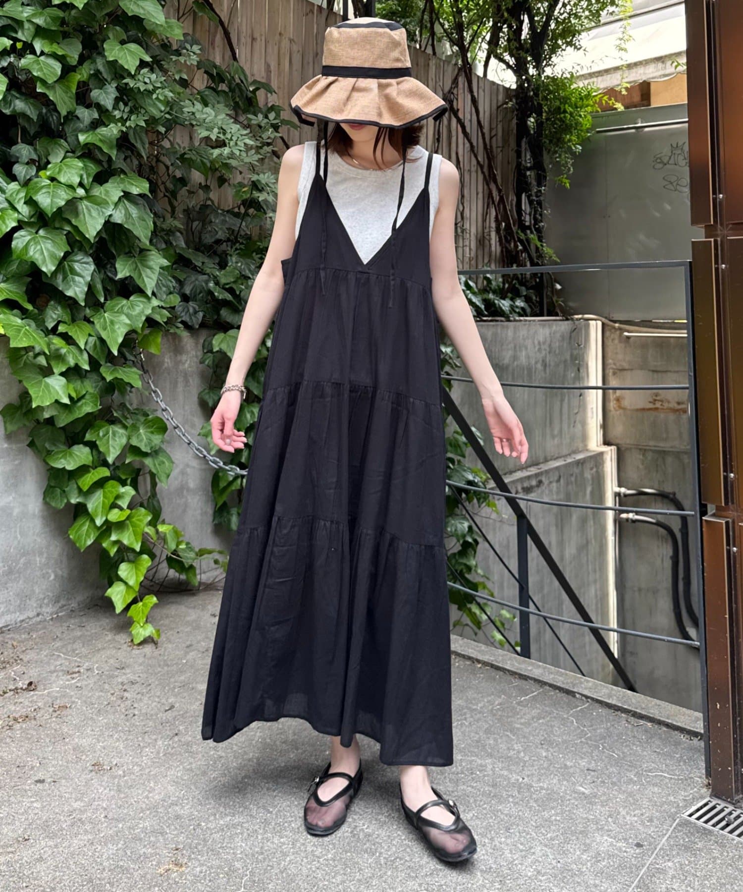 【India】シリコンウォッシュ2WAYティアードキャミワンピ
