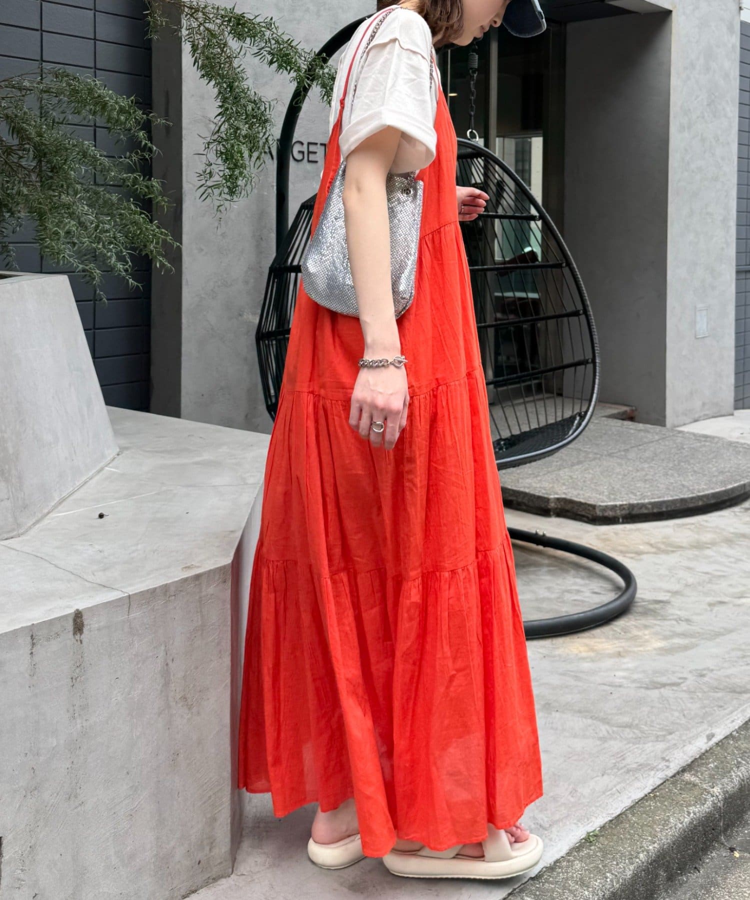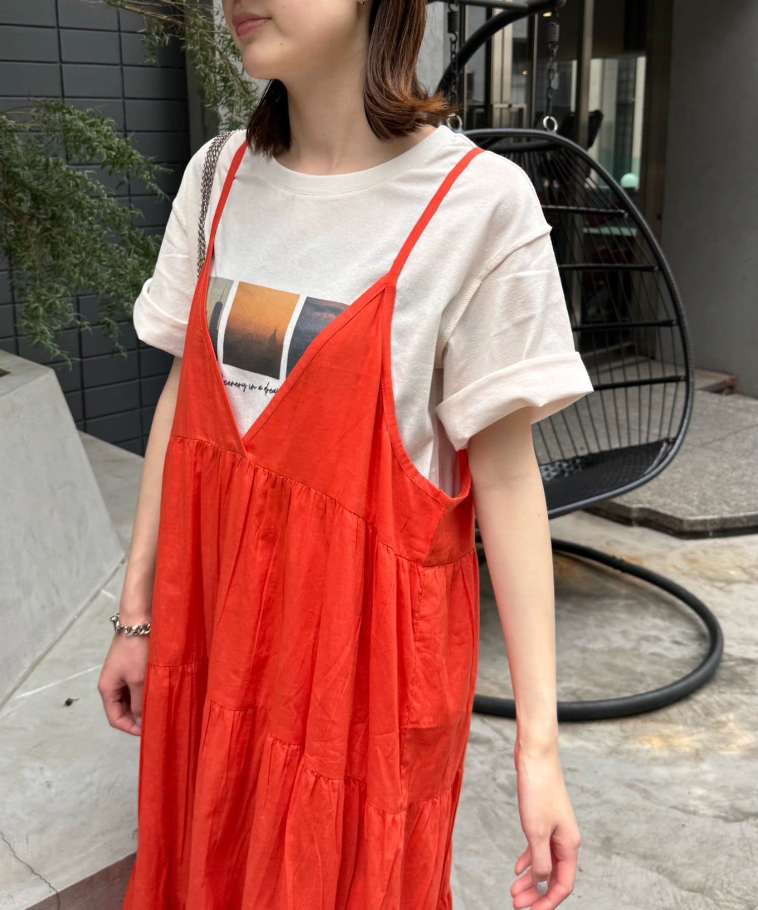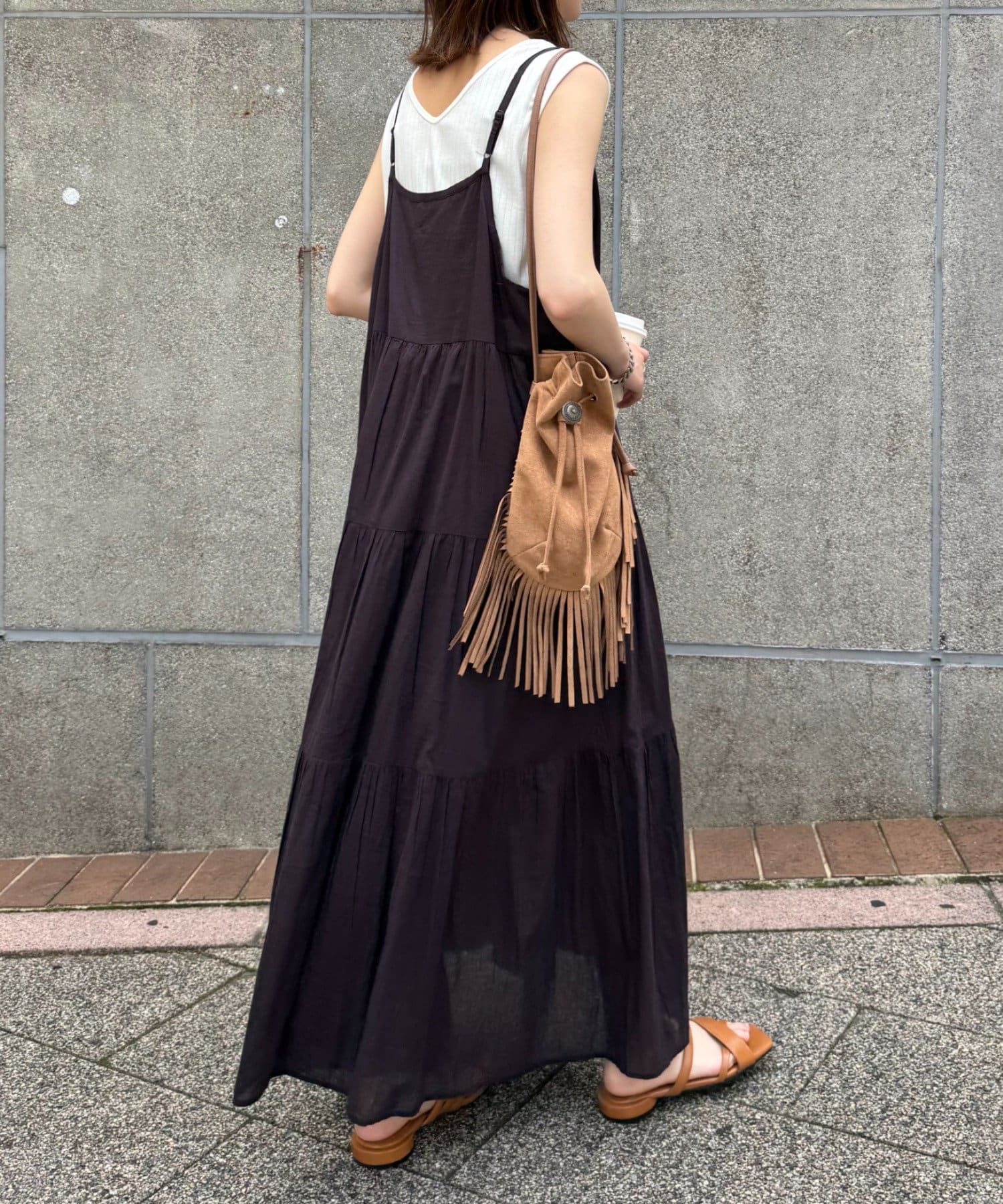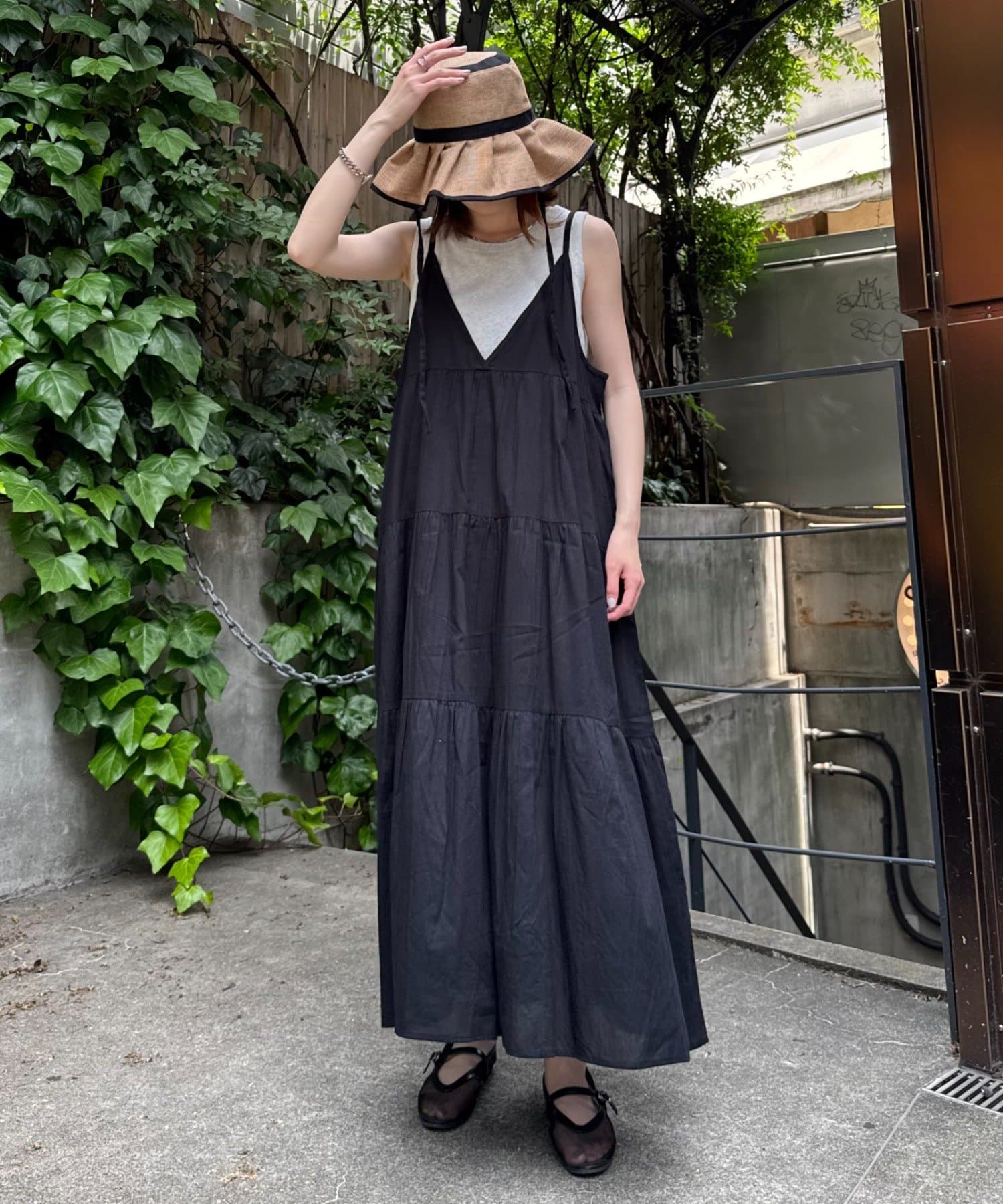 【India】シリコンウォッシュ2WAYティアードキャミワンピ