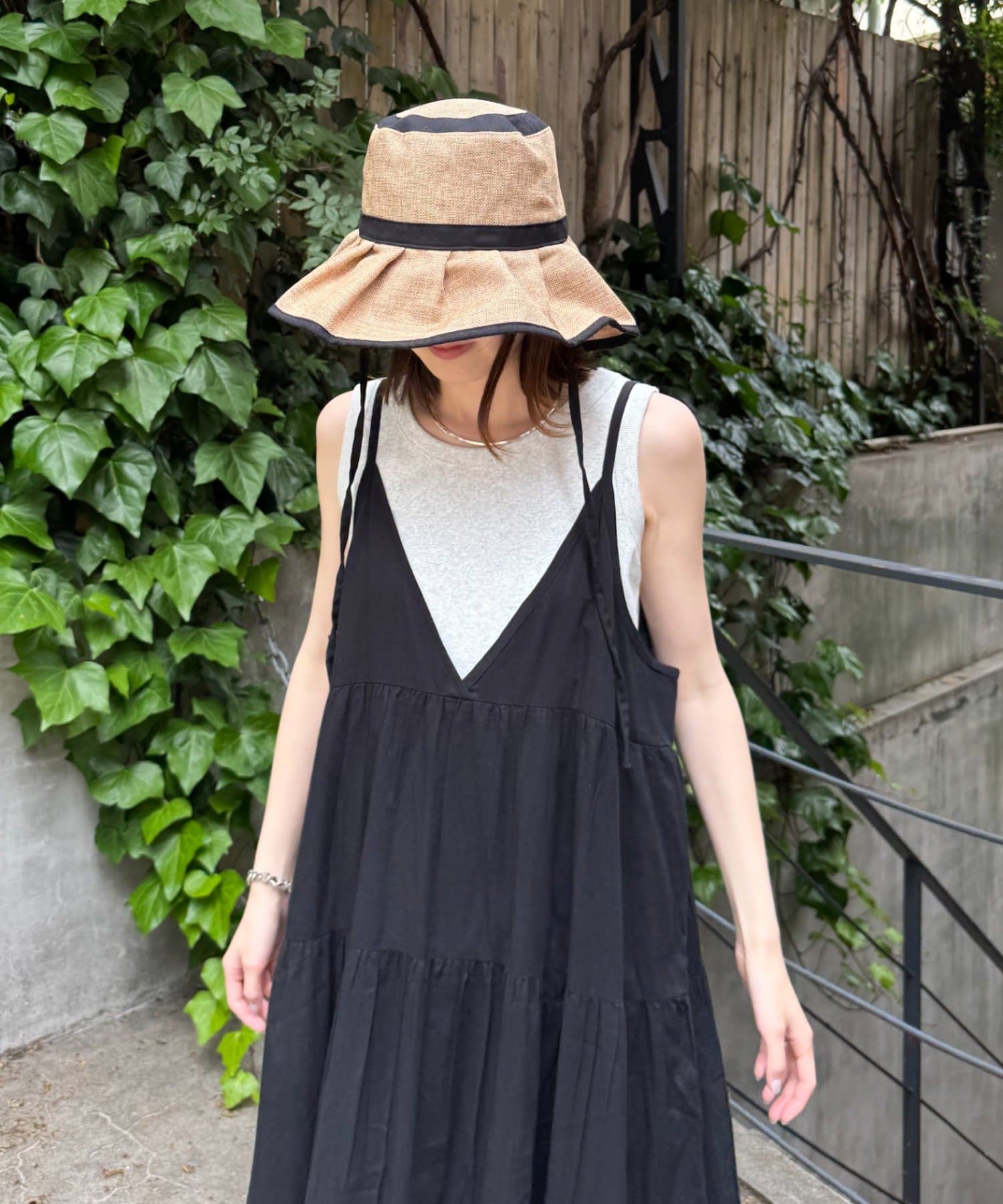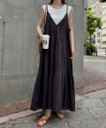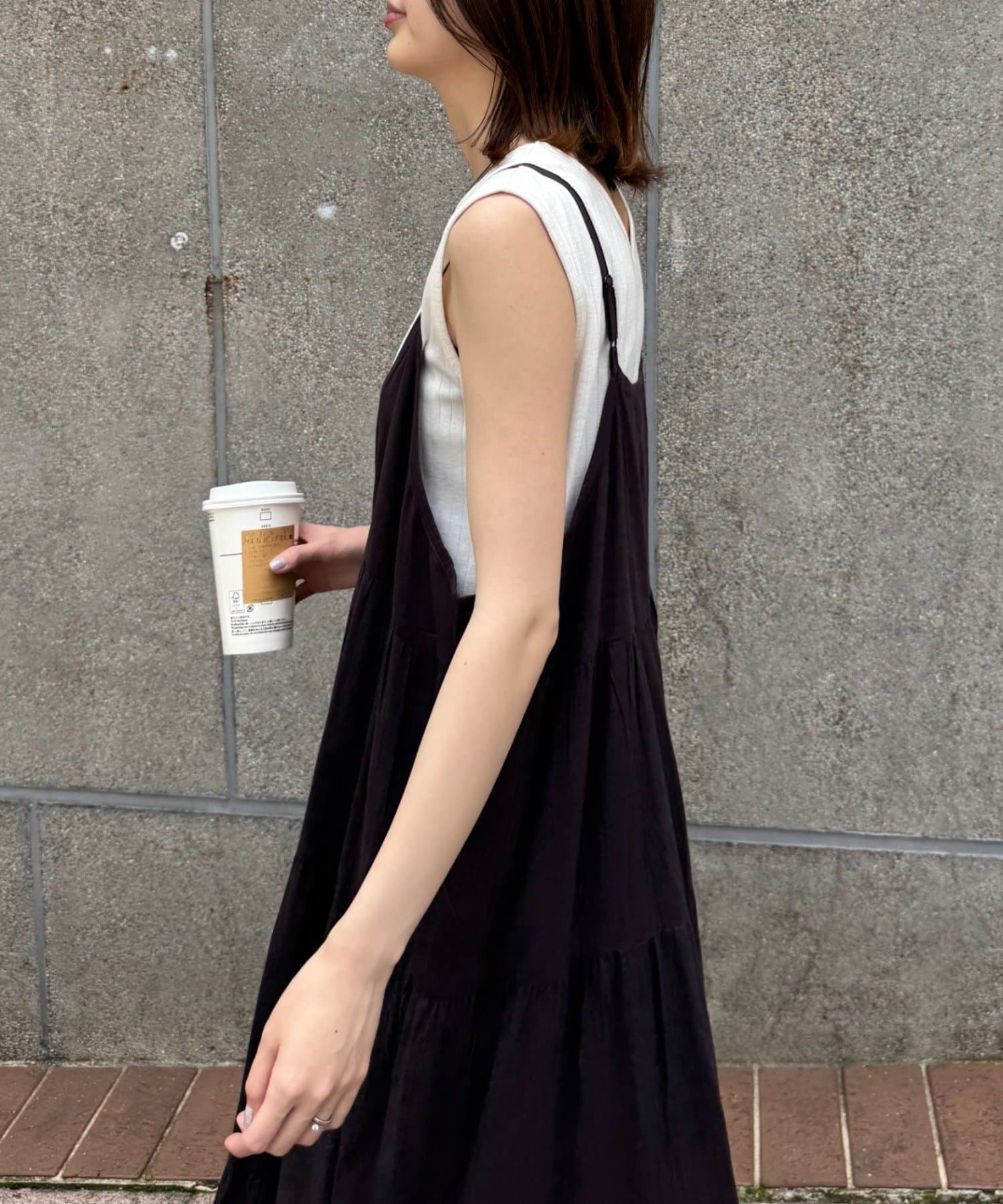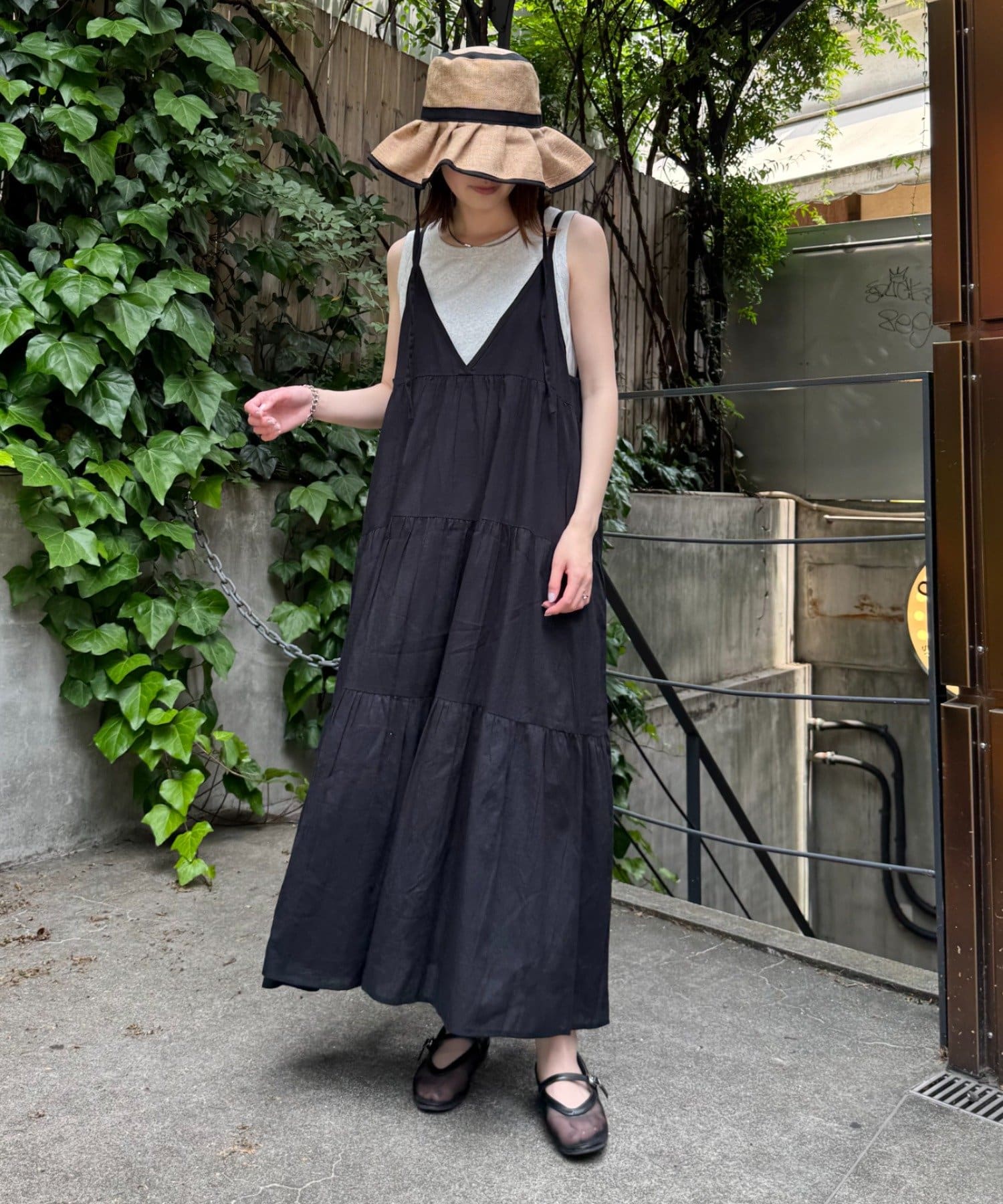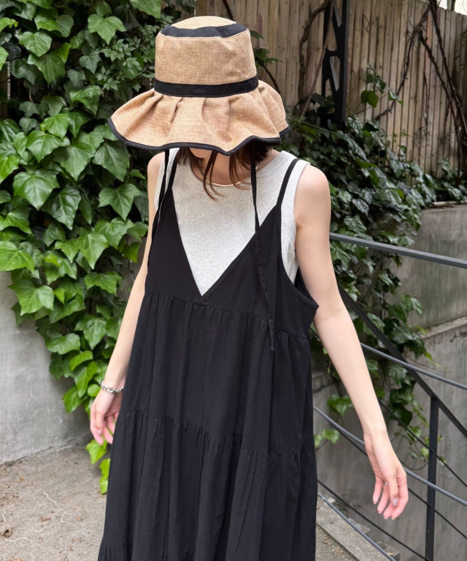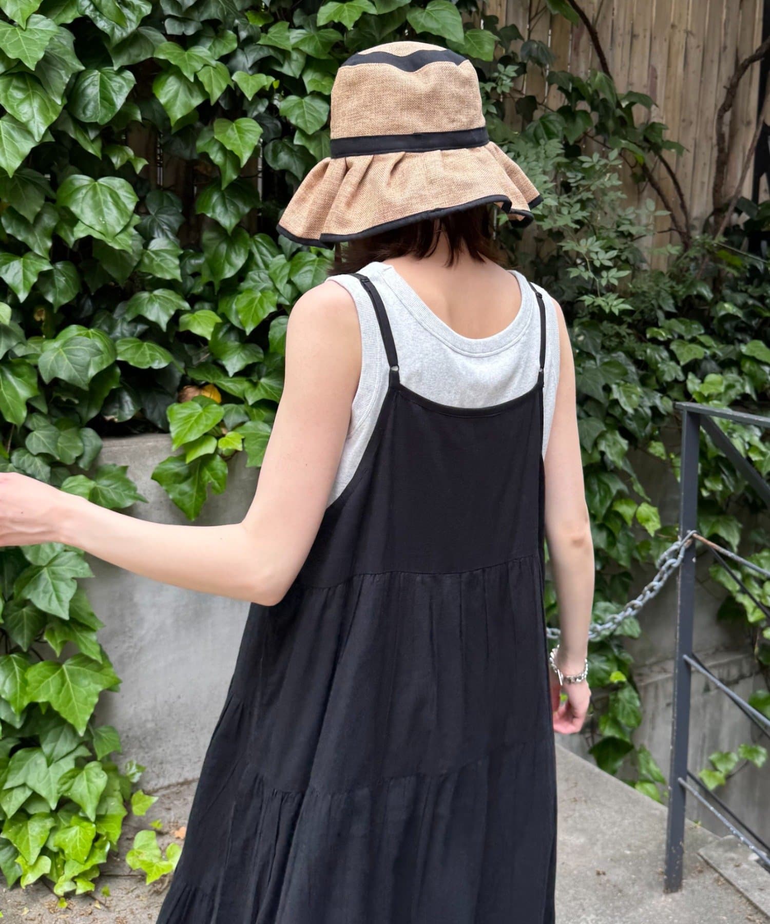 【India】シリコンウォッシュ2WAYティアードキャミワンピ