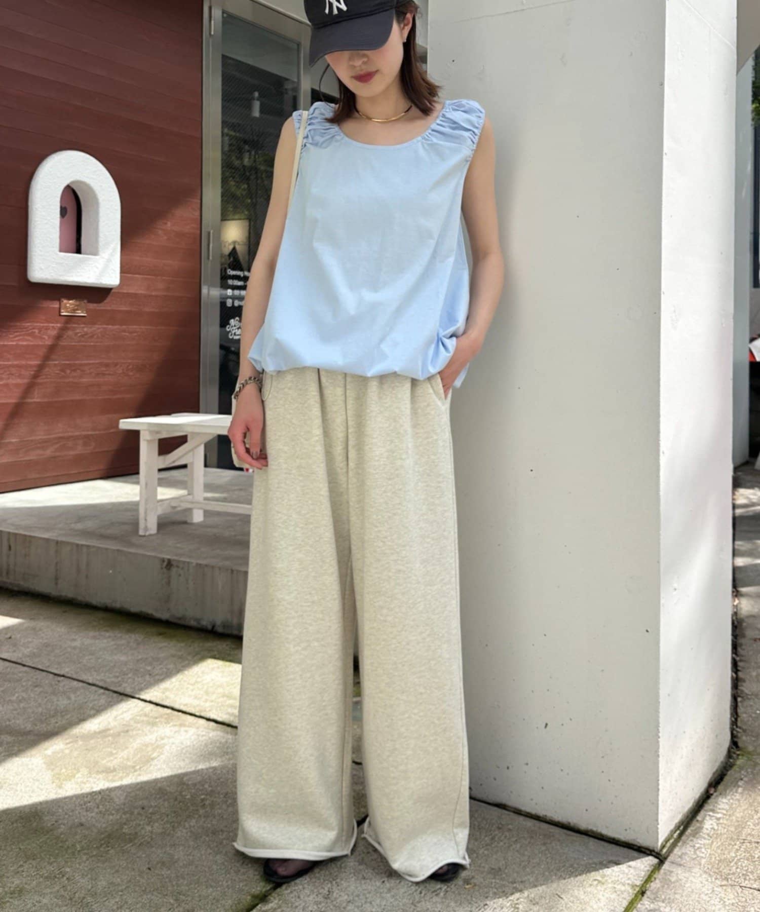 裏毛ワイドスウェットパンツ/イージーパンツ