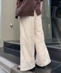 パッチワーク切替レースワイドパンツ