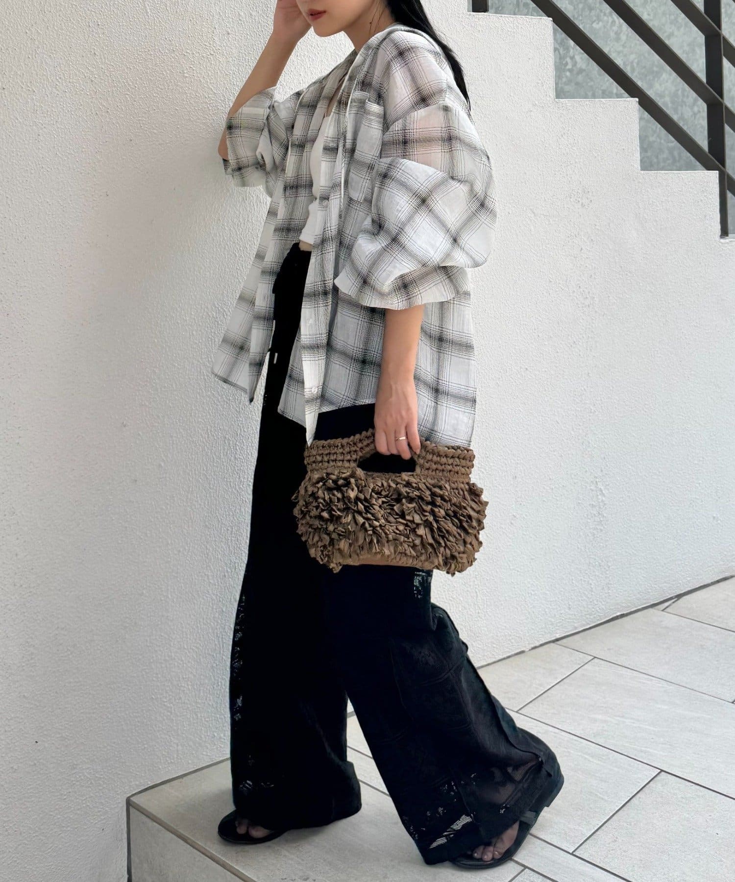 ワイドなシルエットに対して腰回りはすっきりしているので着痩せ効果も◎