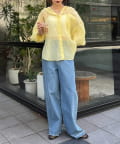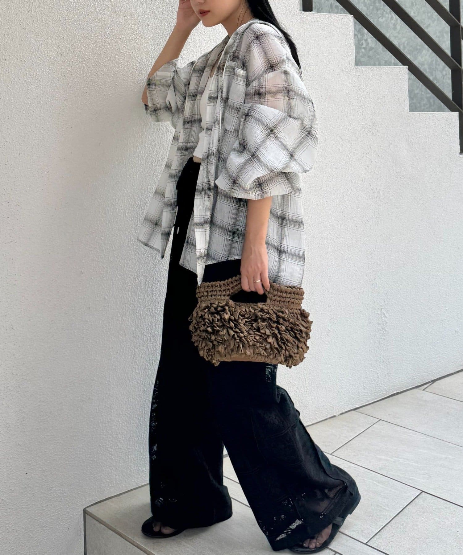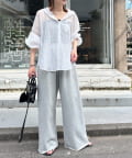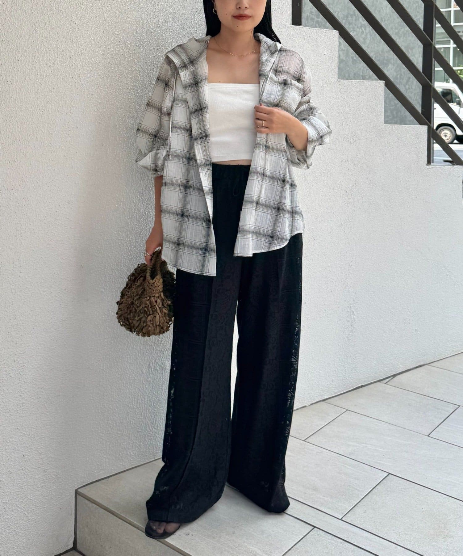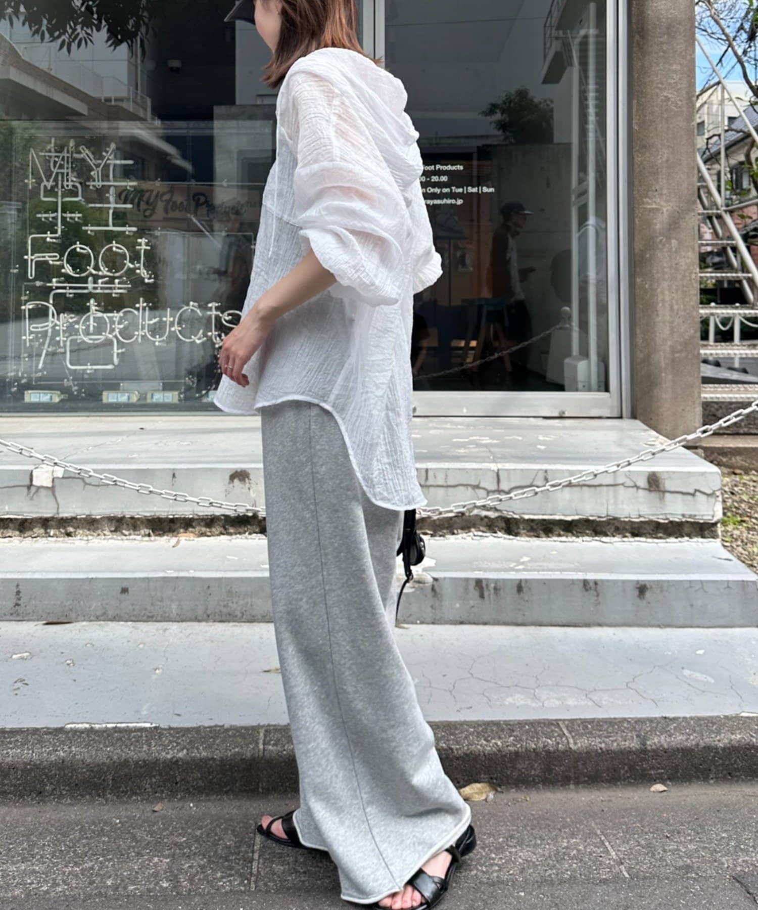 動くたびにふわっとするシルエットと程よい透け感が、女性らしさをプラス。