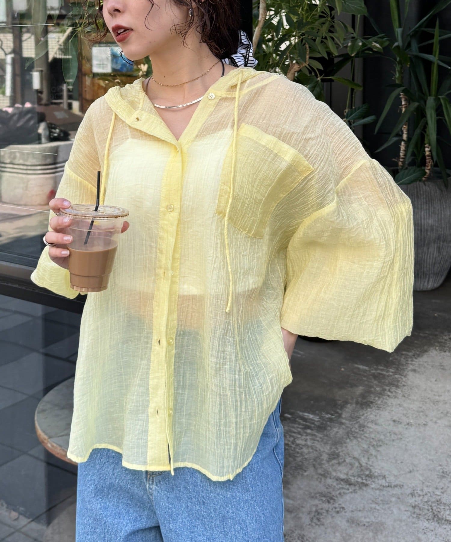 ▶【新色追加/体型カバーも叶う】フード付きシアーシャツ