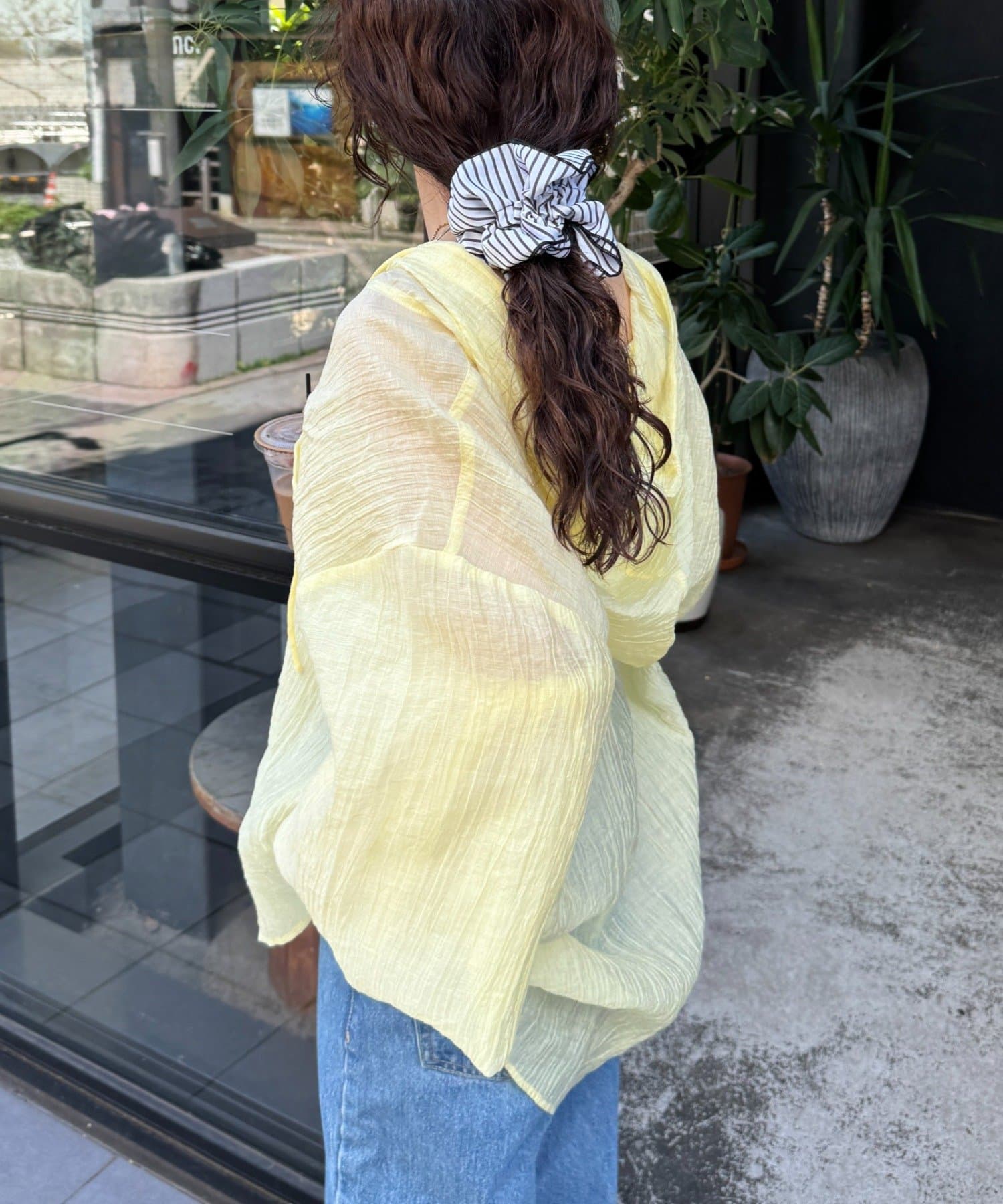 ▶【累計販売数1万枚突破/程よい透け感】シアーバンドカラーシャツ