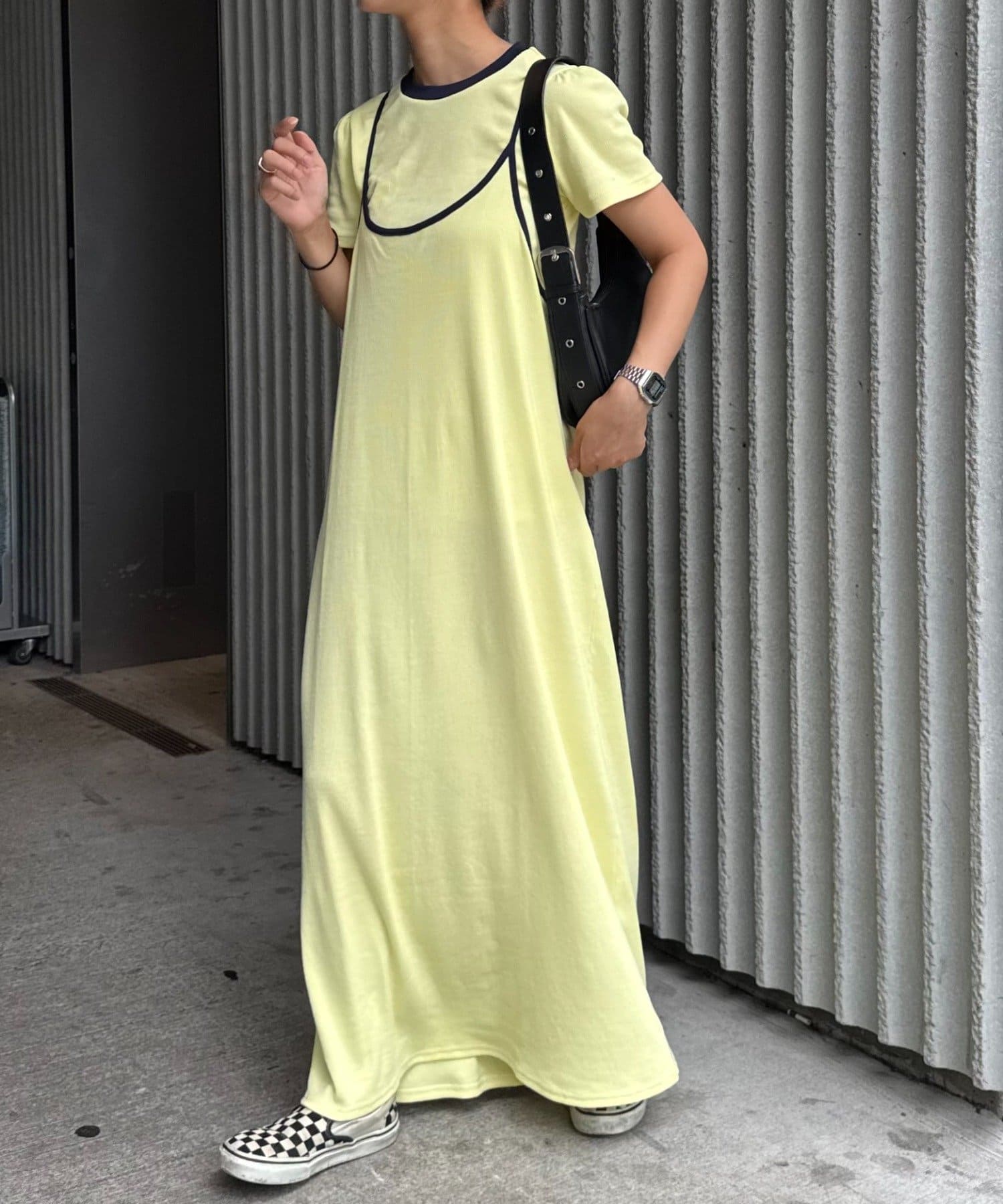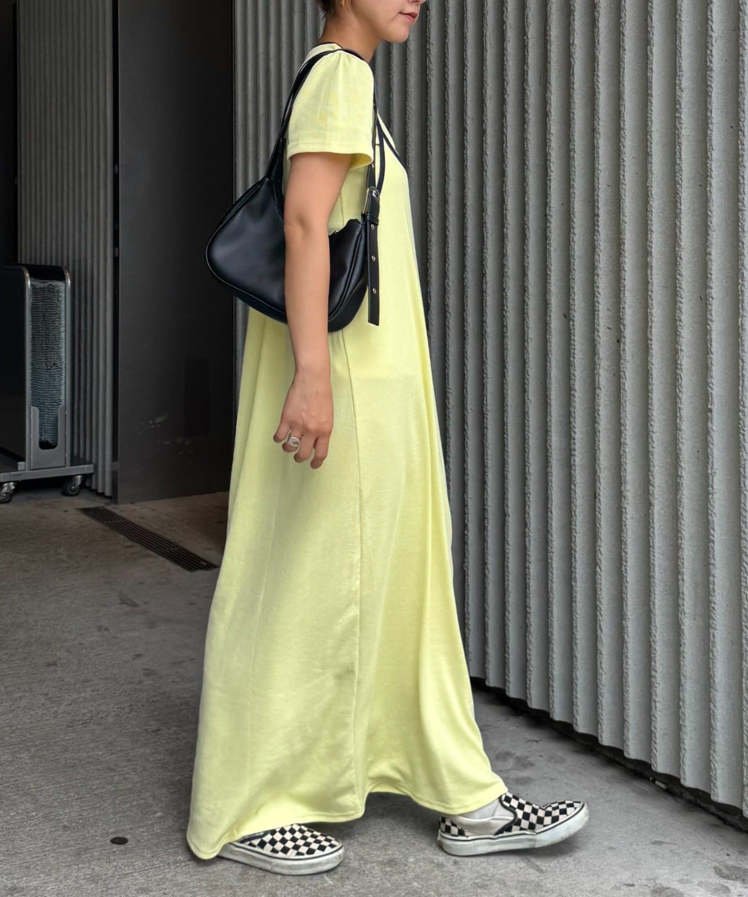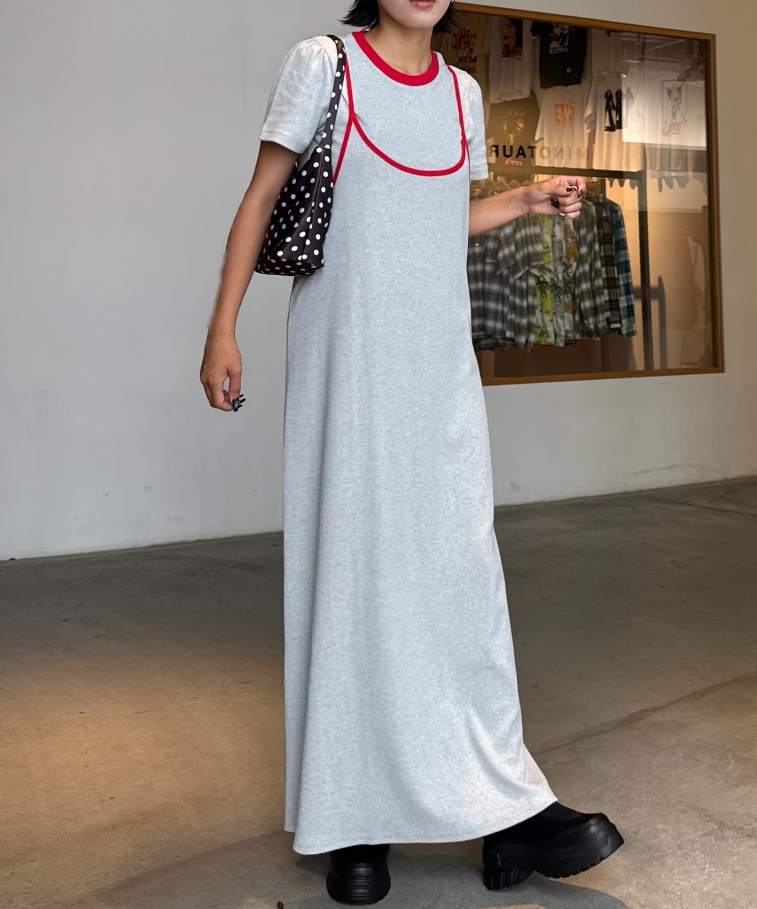 キャミワンピ×Tシャツのセットで着用するのはもちろん、