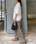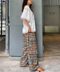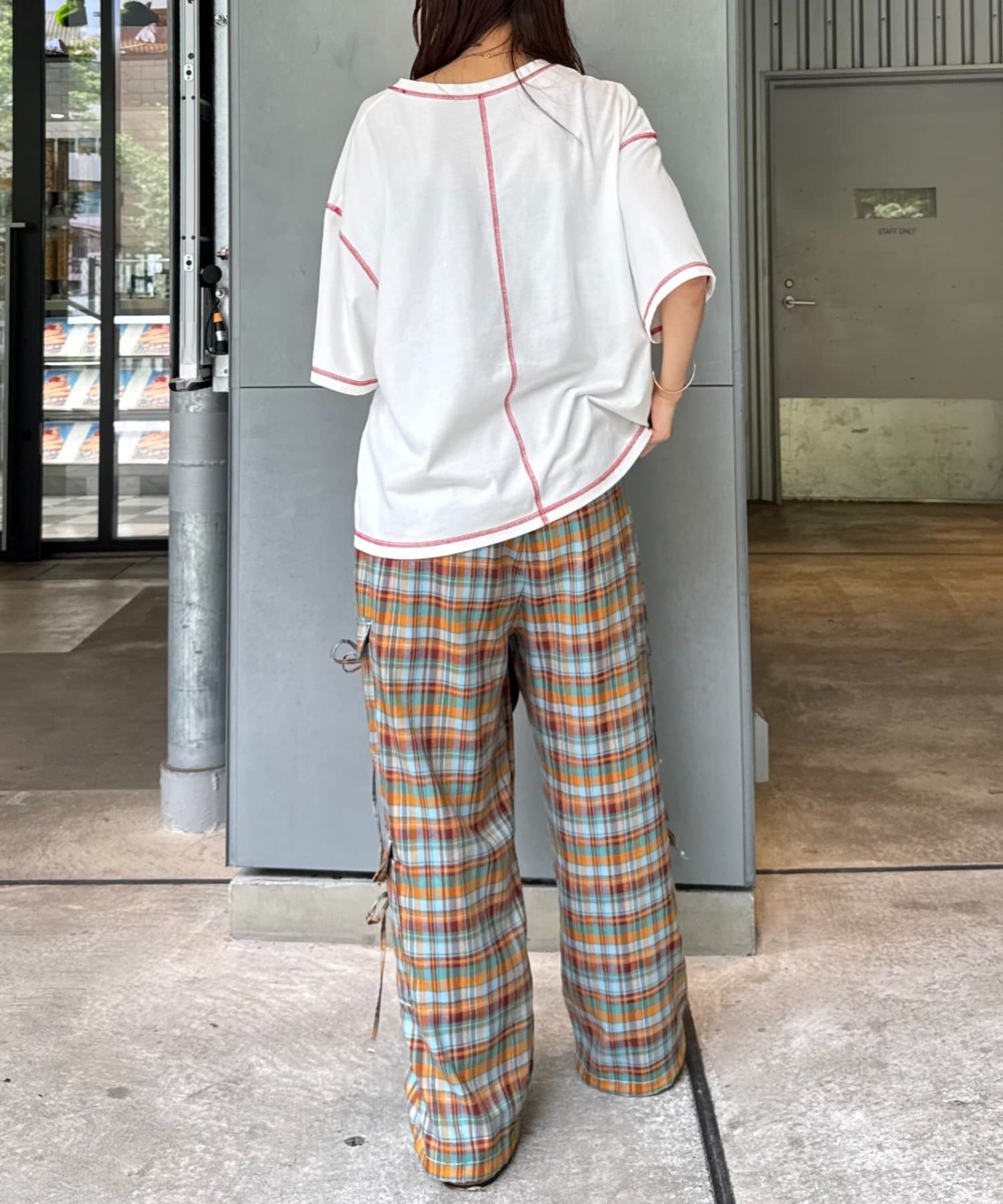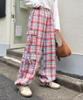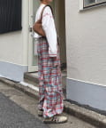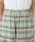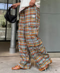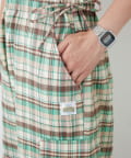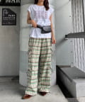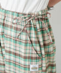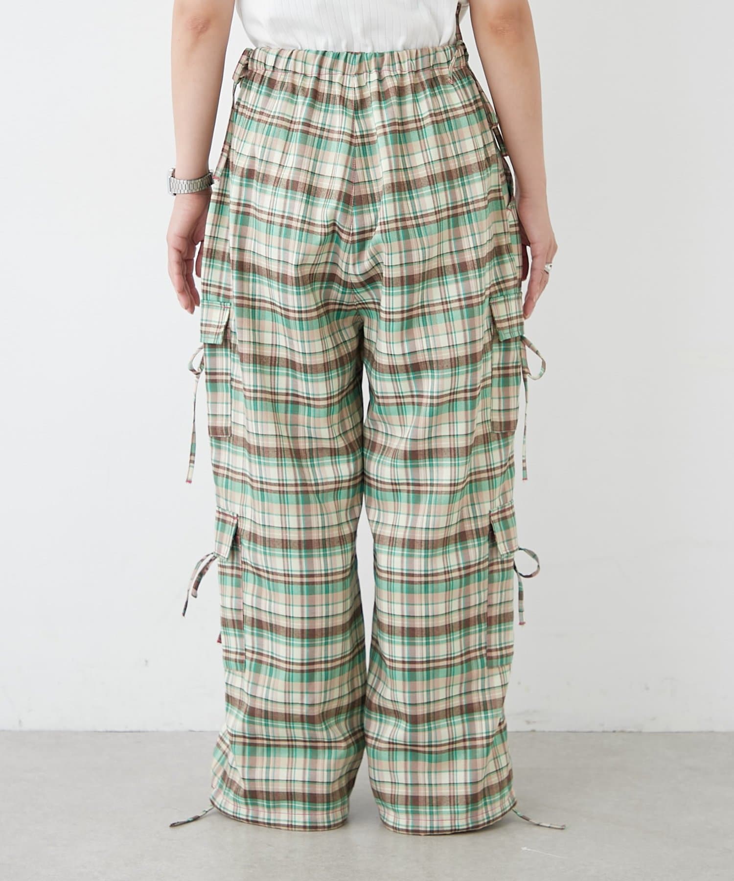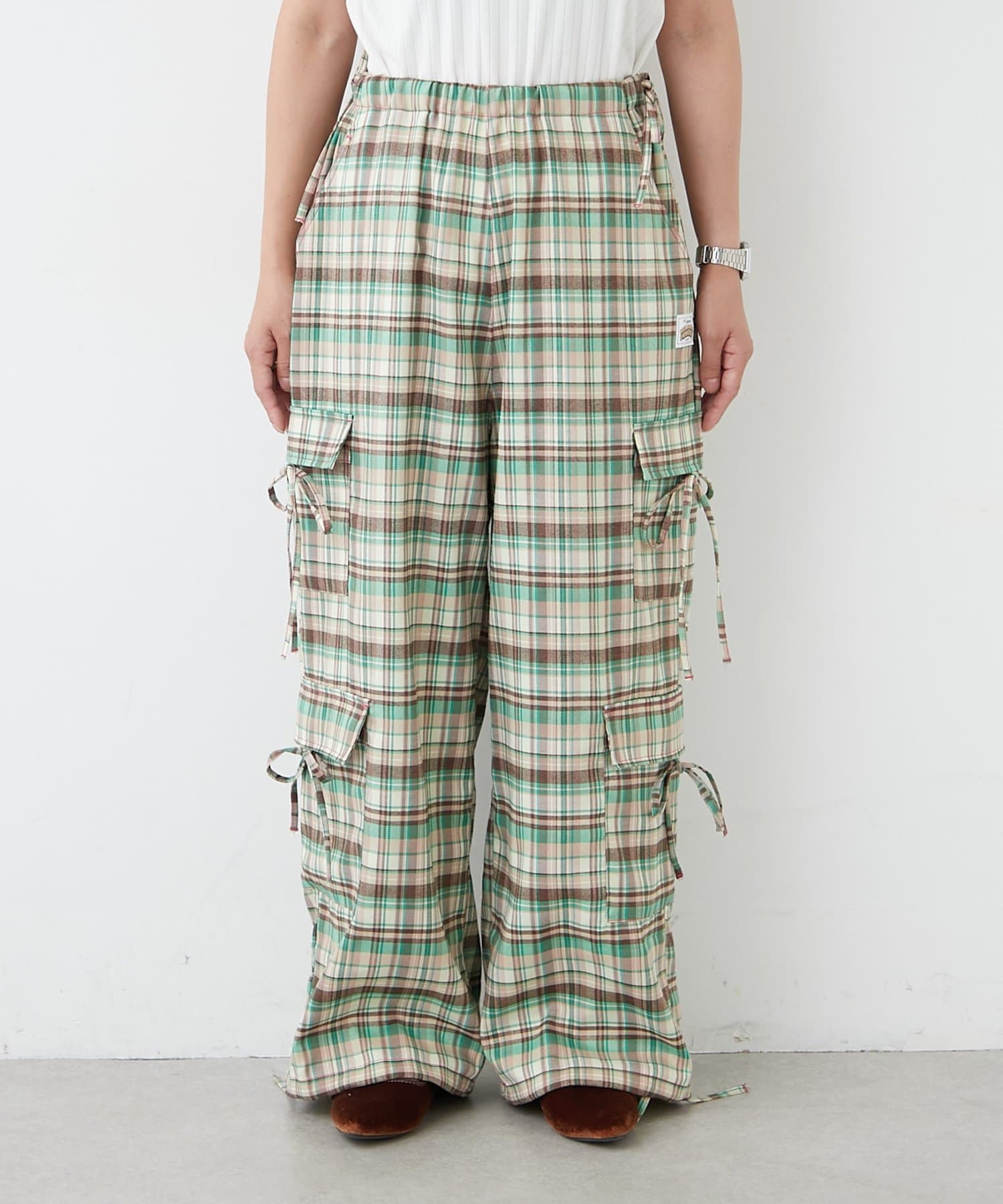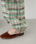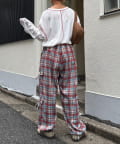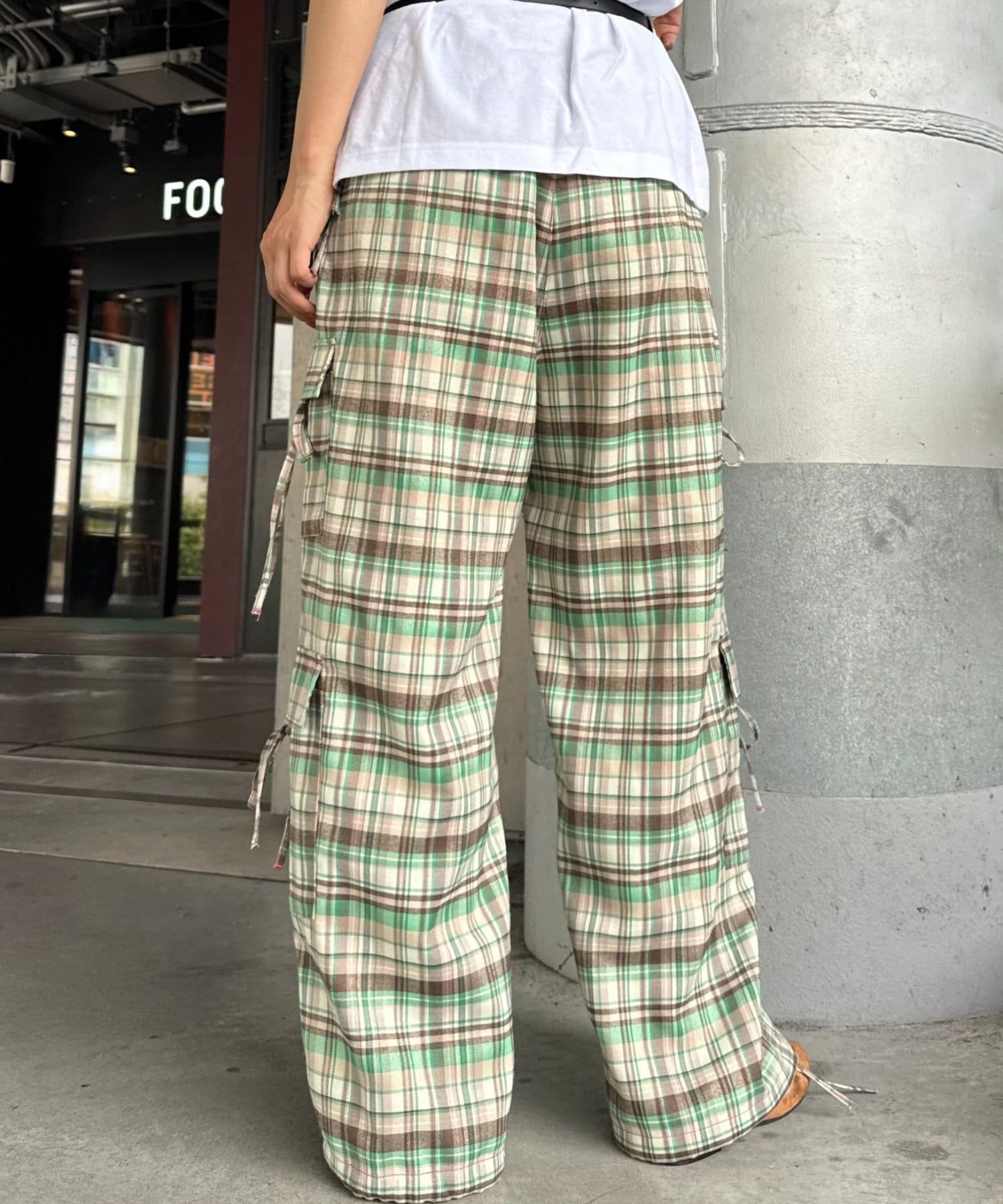 サイドにあしらわれたリボンが目を惹くチェックパンツ。