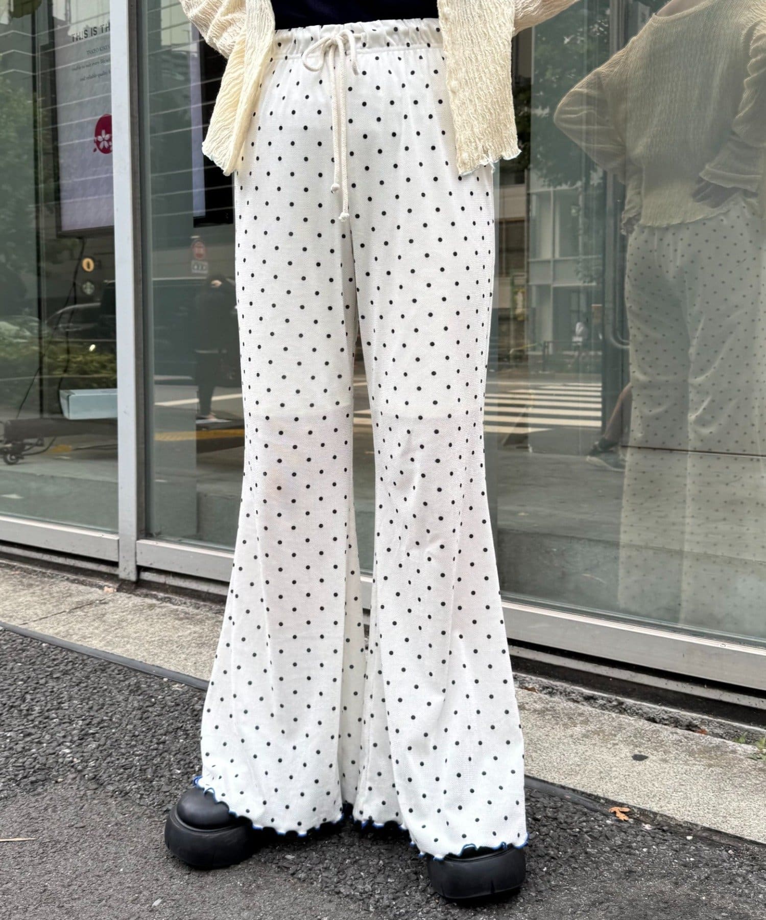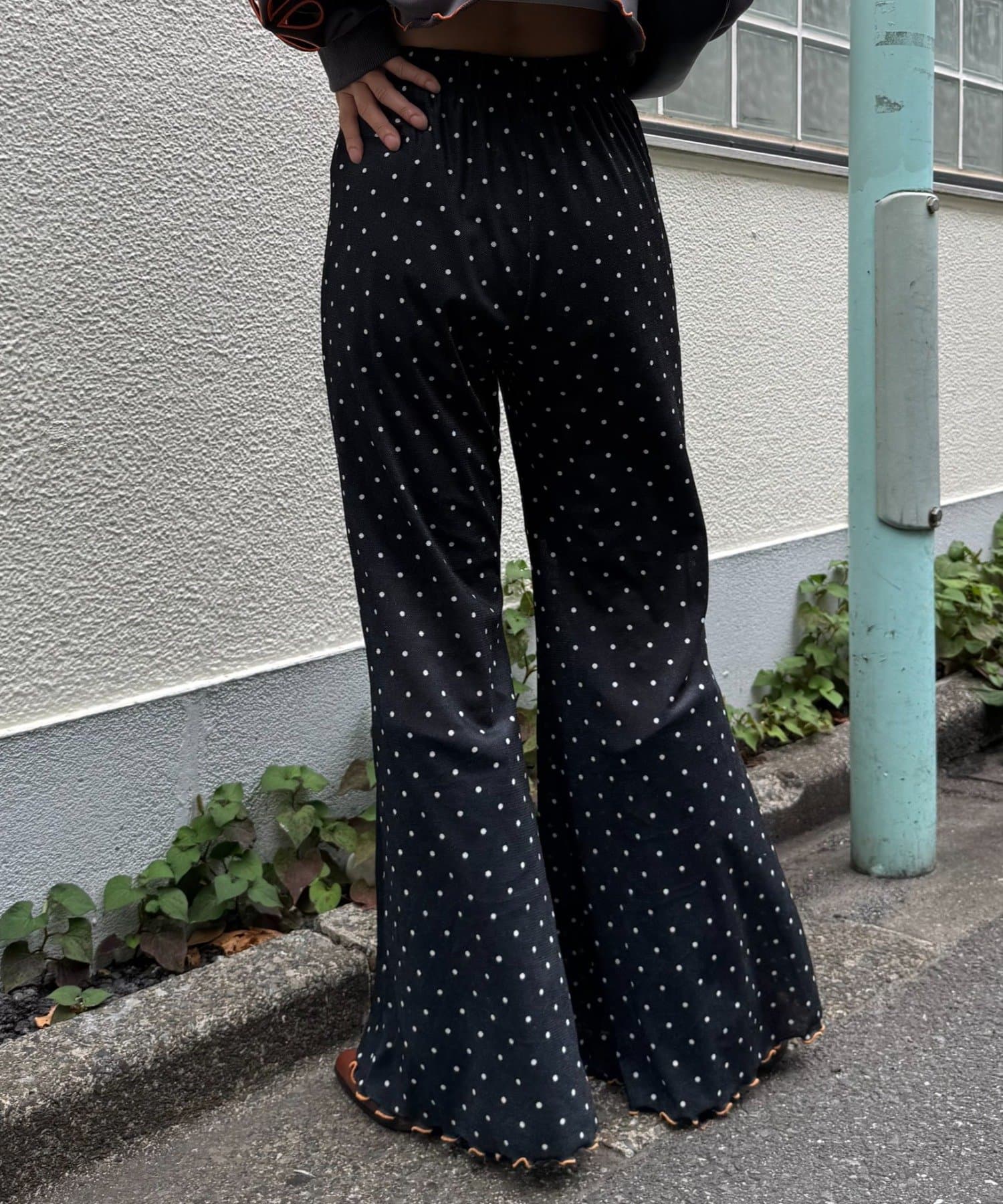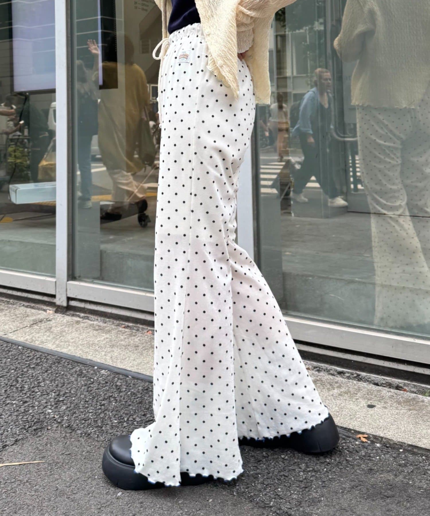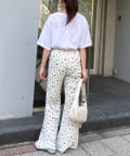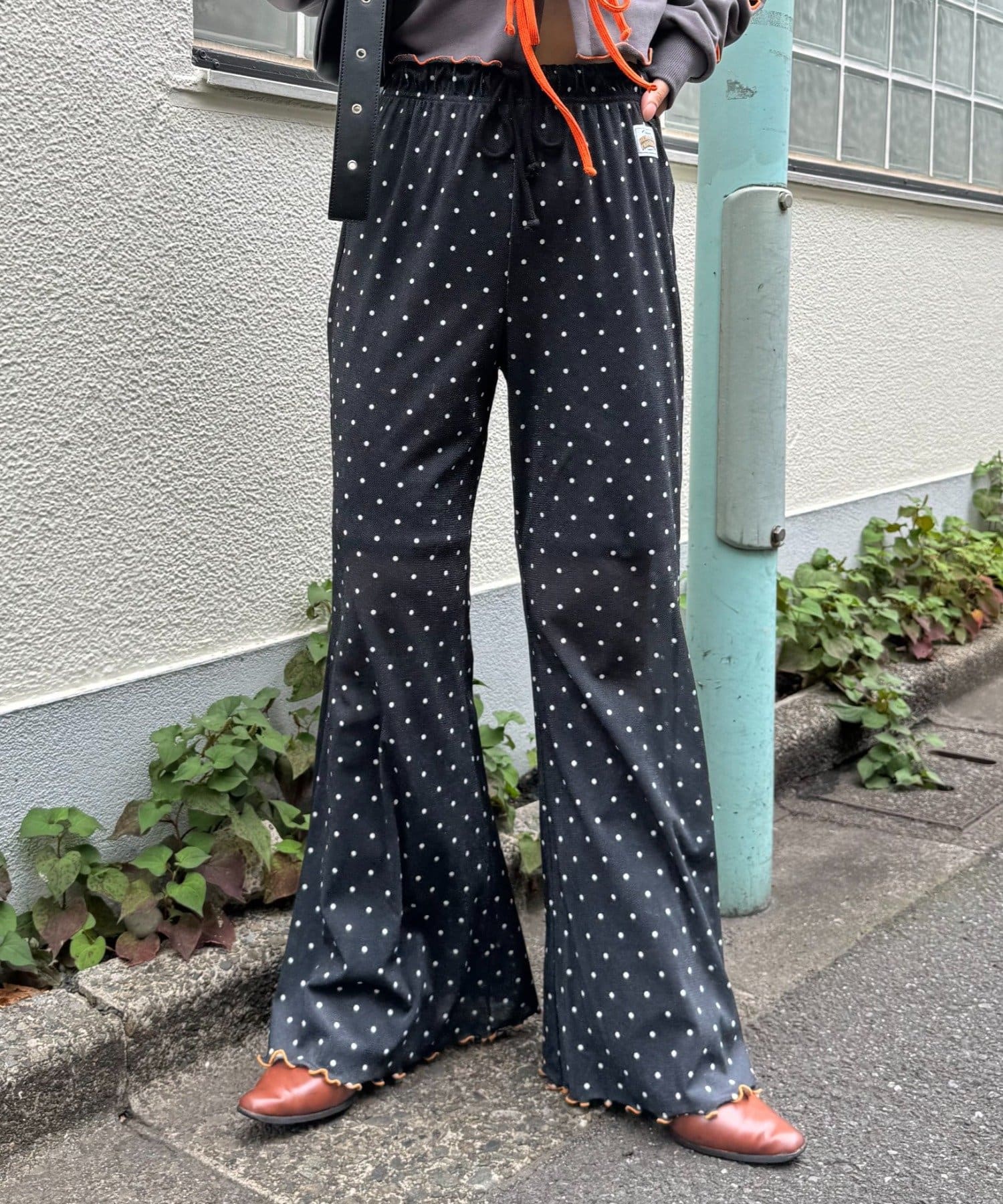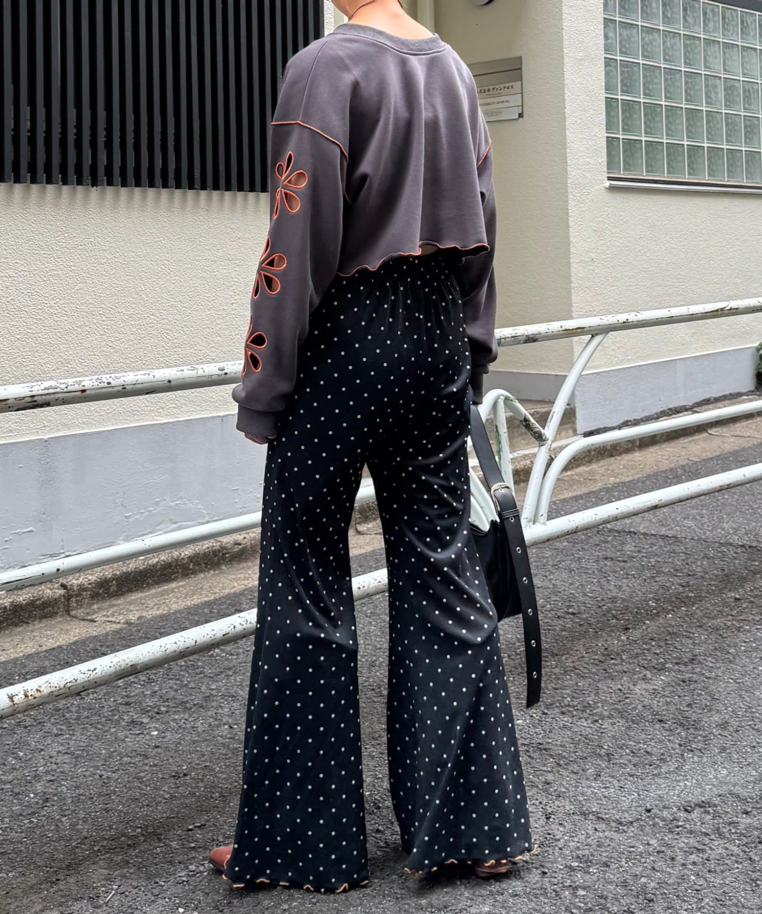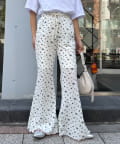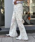 ドット&小花柄のアソート展開が魅力のフレアパンツ♩シンプルなカラーリングで甘すぎずどこかレトロ。