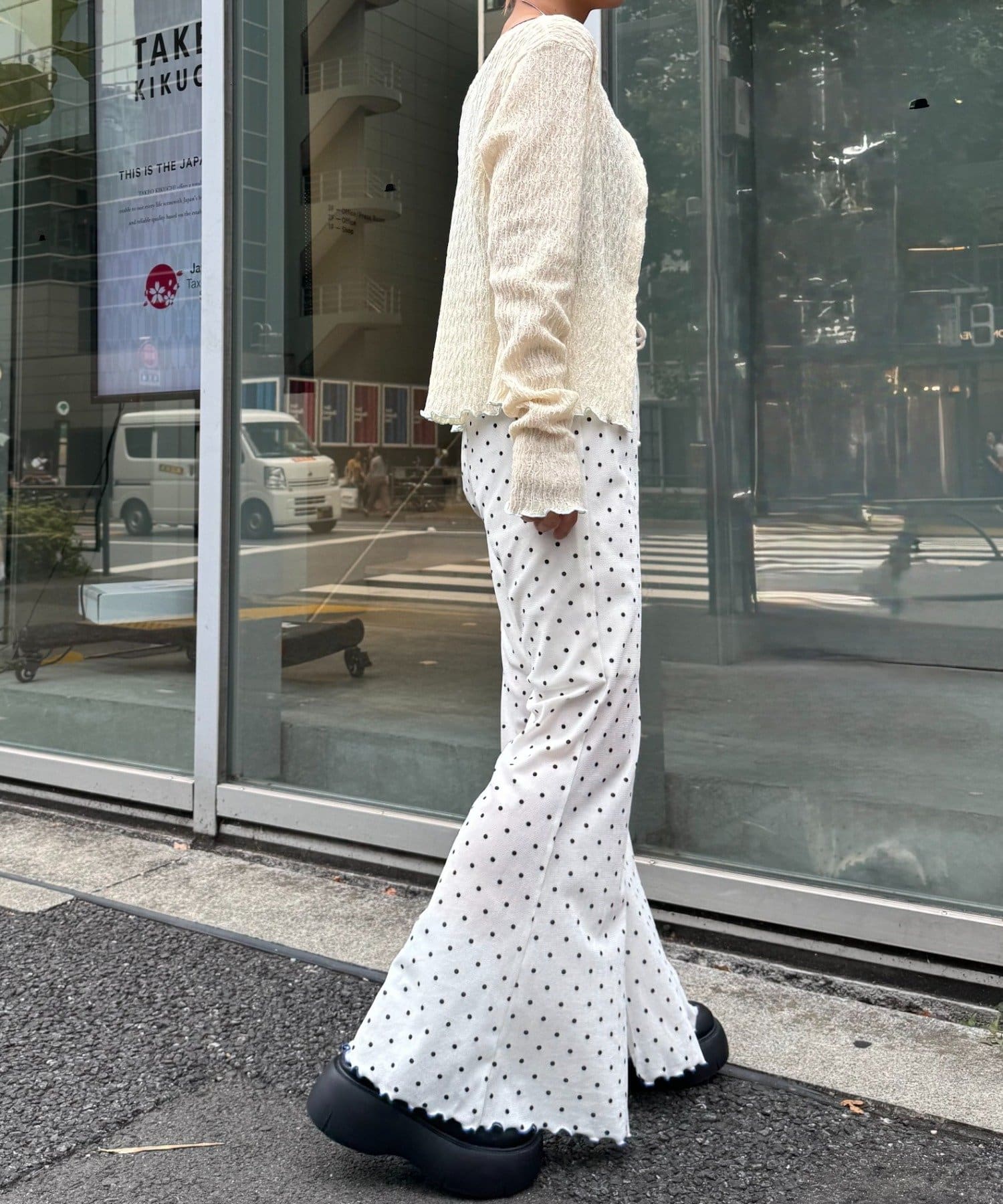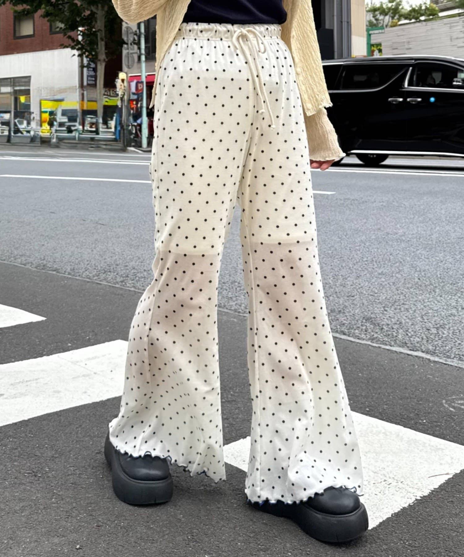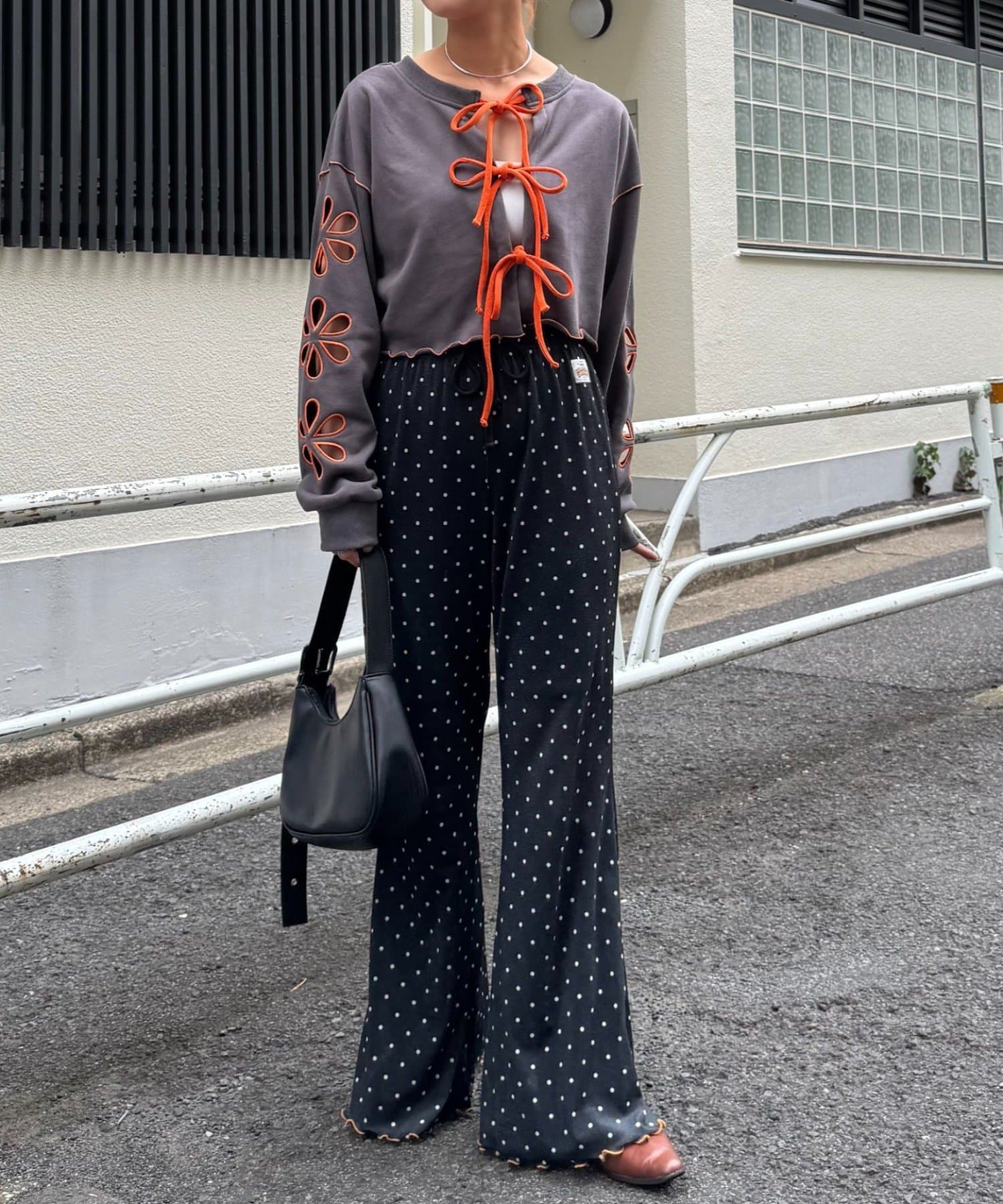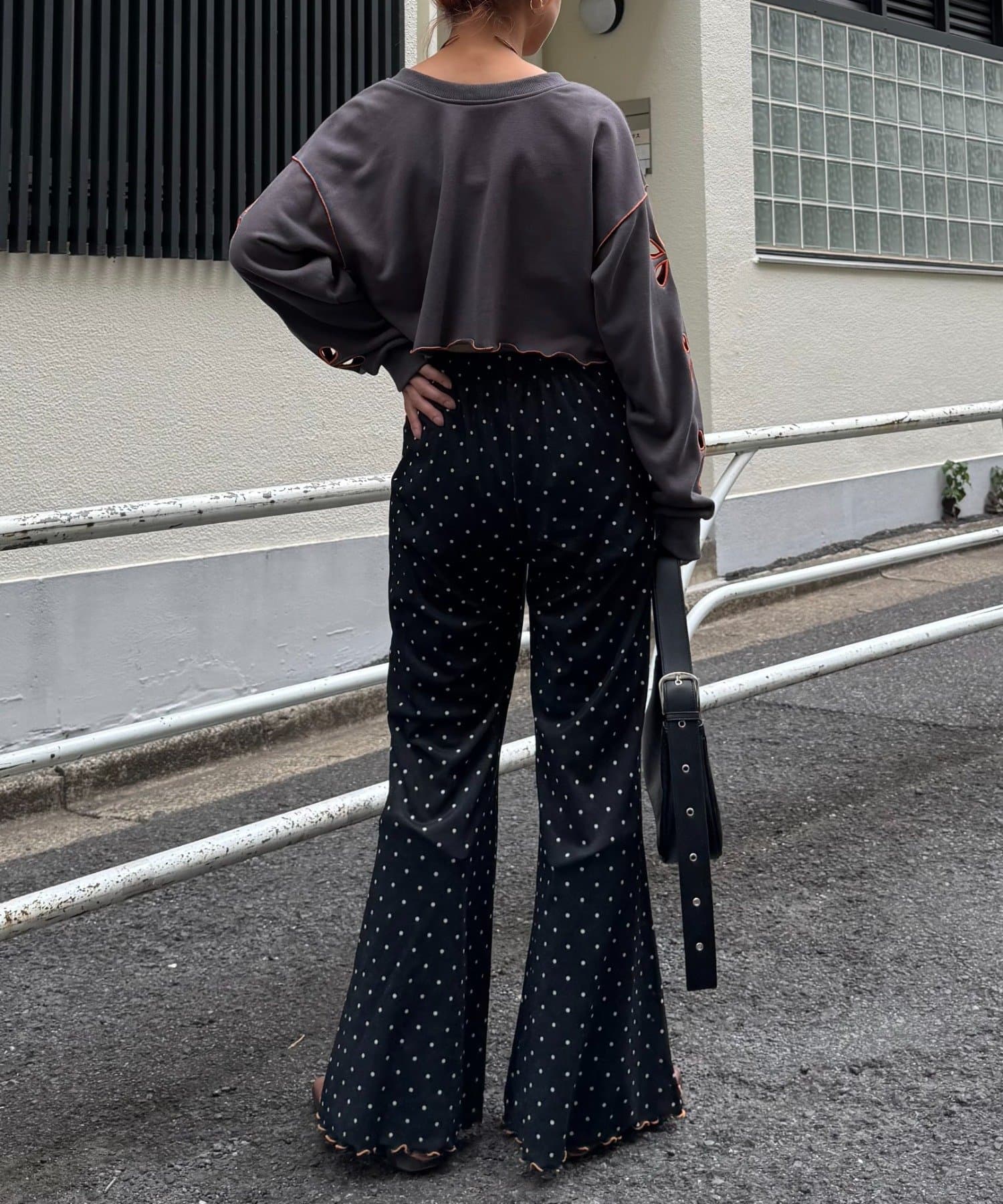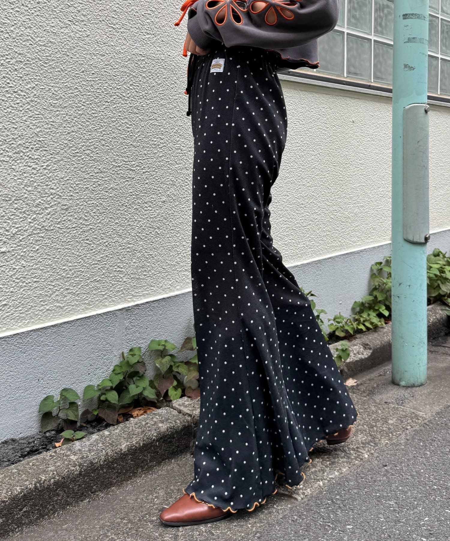 ドット&小花柄のアソート展開が魅力のフレアパンツ♩シンプルなカラーリングで甘すぎずどこかレトロ。