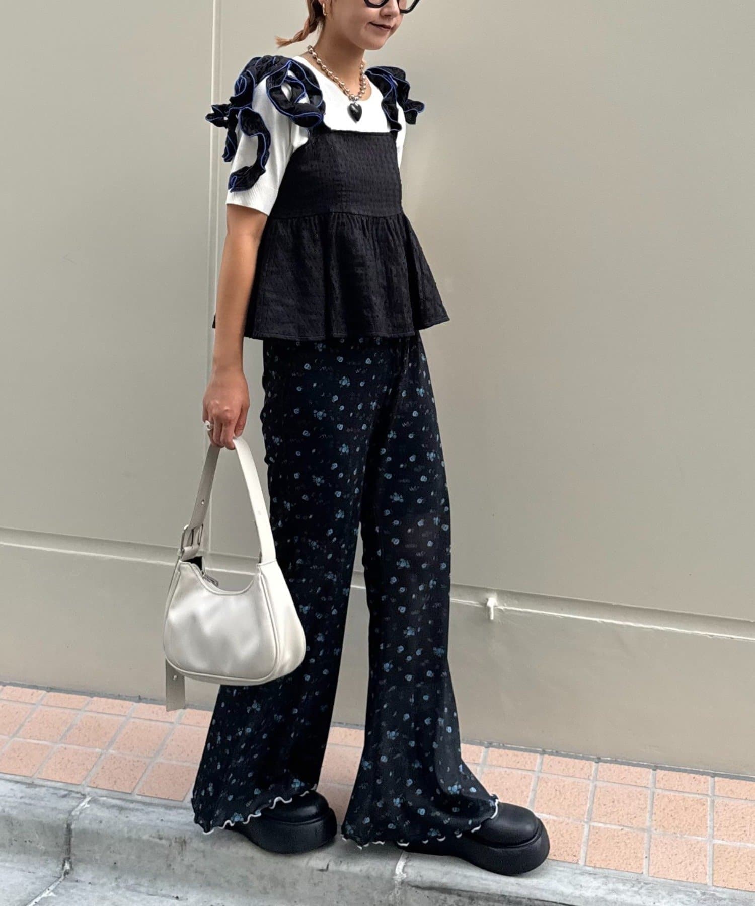 【HELLO.SANFRANCISCO/ハローサンフランシスコ】アソート柄フロッキープリントフレアパンツ