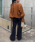 ハイウエストパンツと合わせて、リボンを前で留めればきちんと感もプラス。