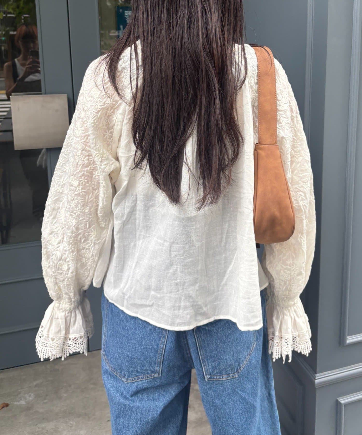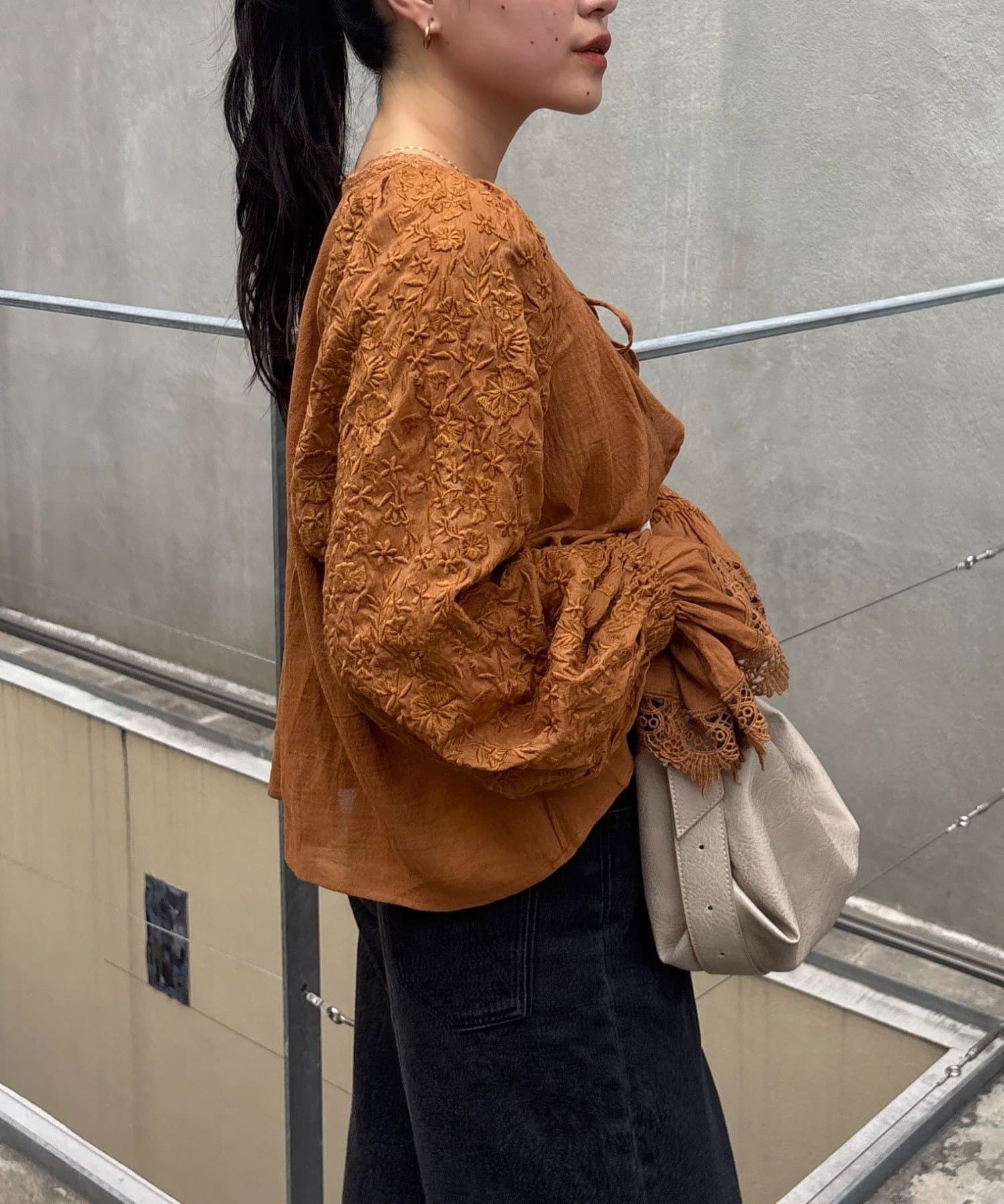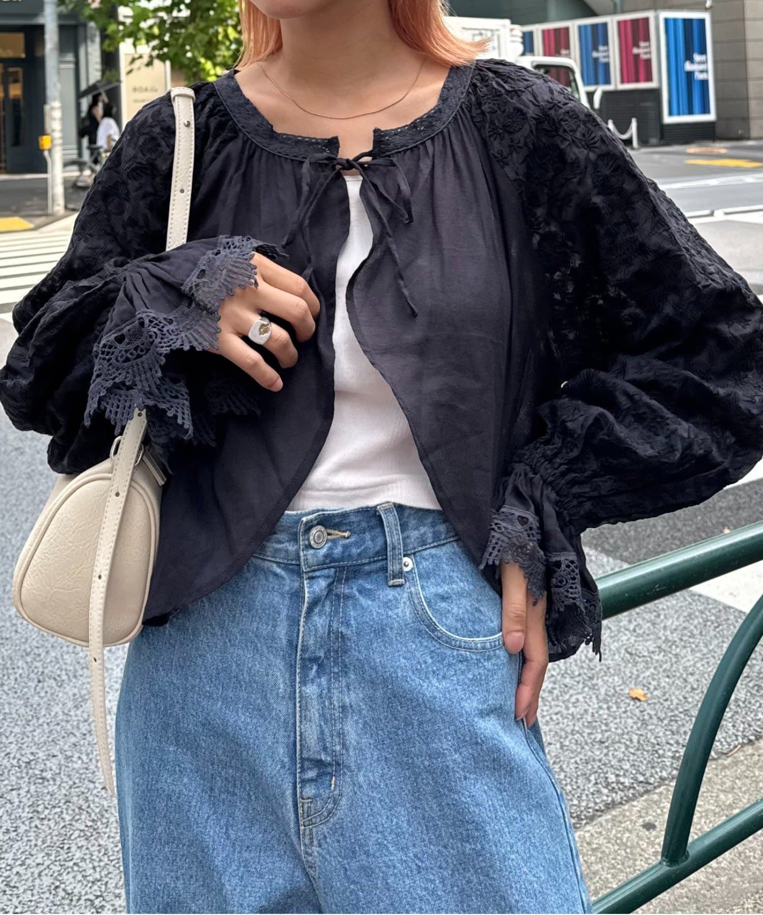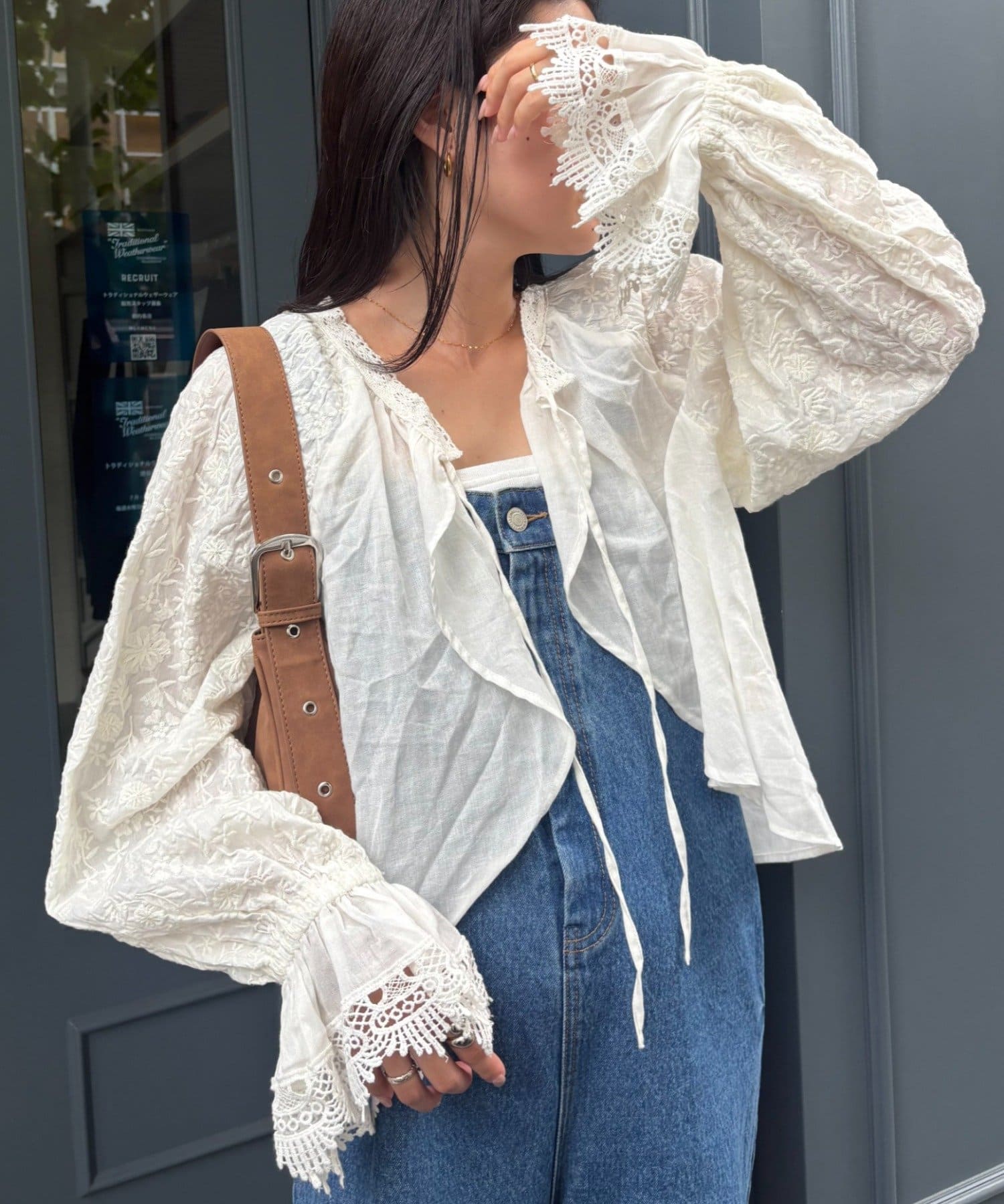 デニムとTシャツにさらっと羽織って、刺繍とレースを主役にしたガーリーなアクセントに♩