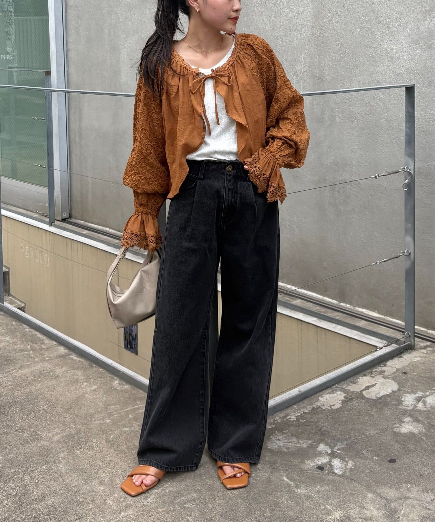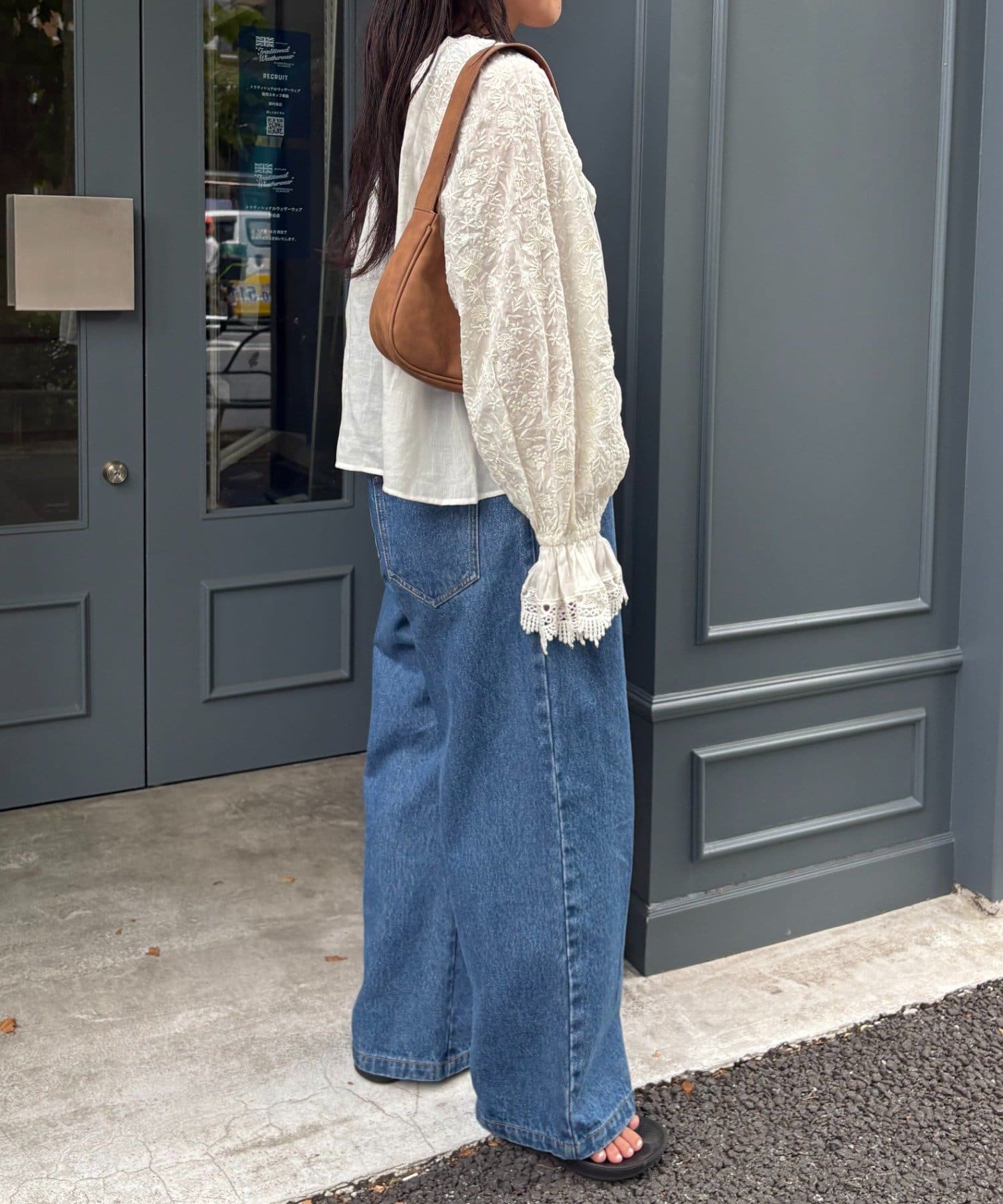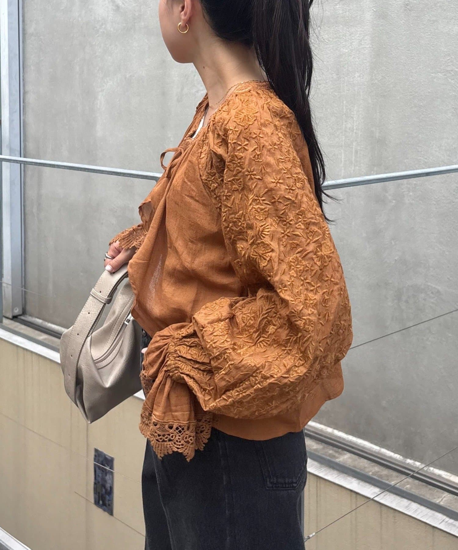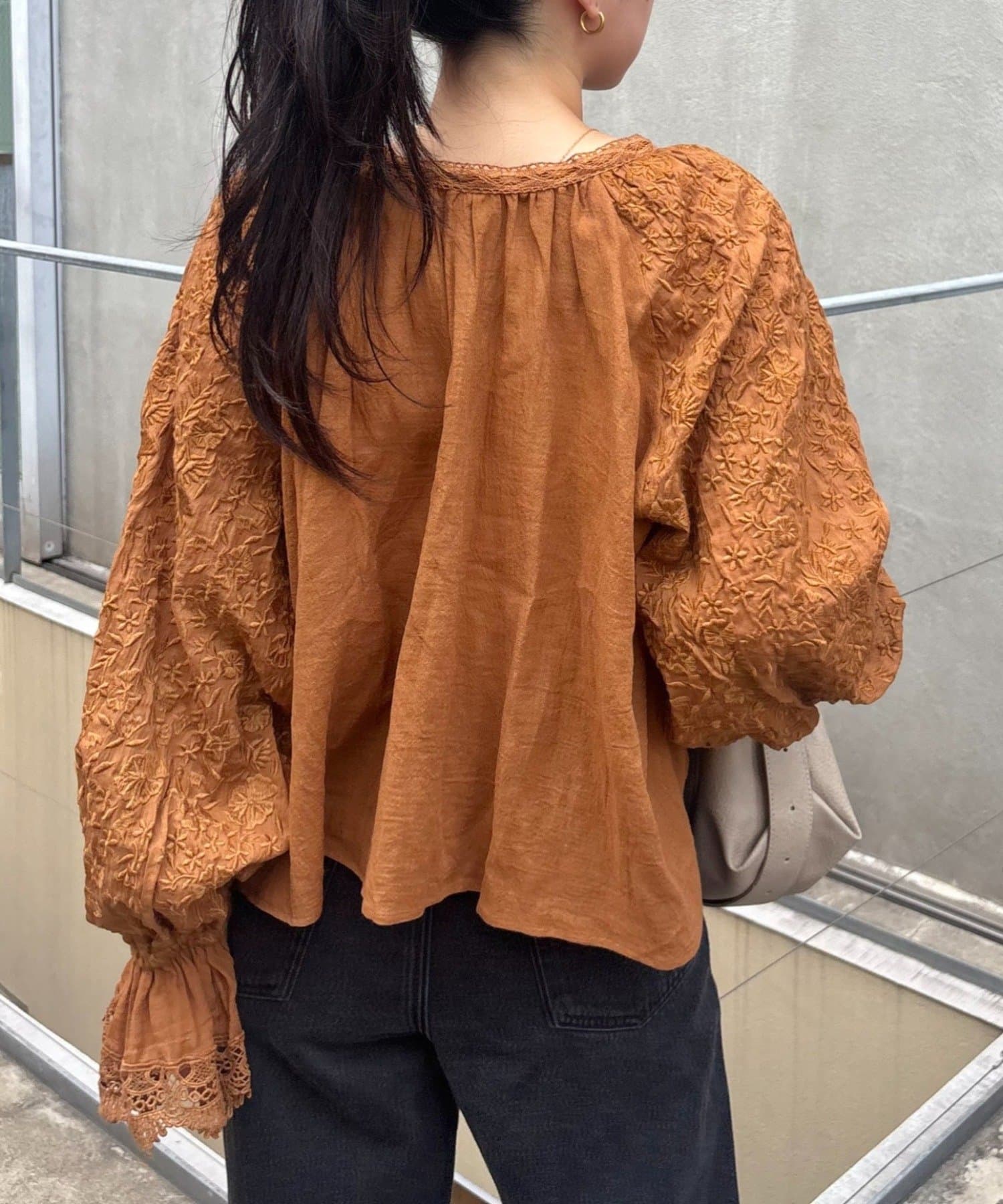 デニムとTシャツにさらっと羽織って、刺繍とレースを主役にしたガーリーなアクセントに♩