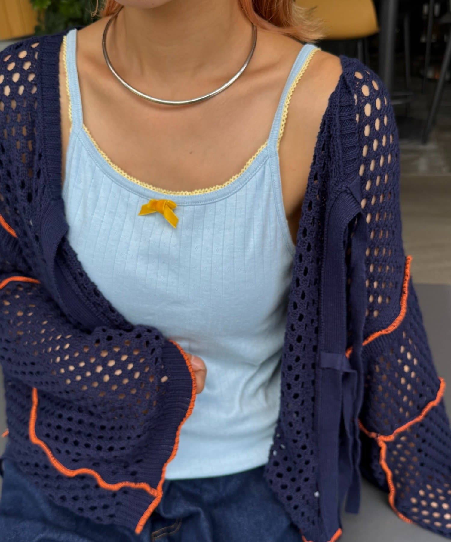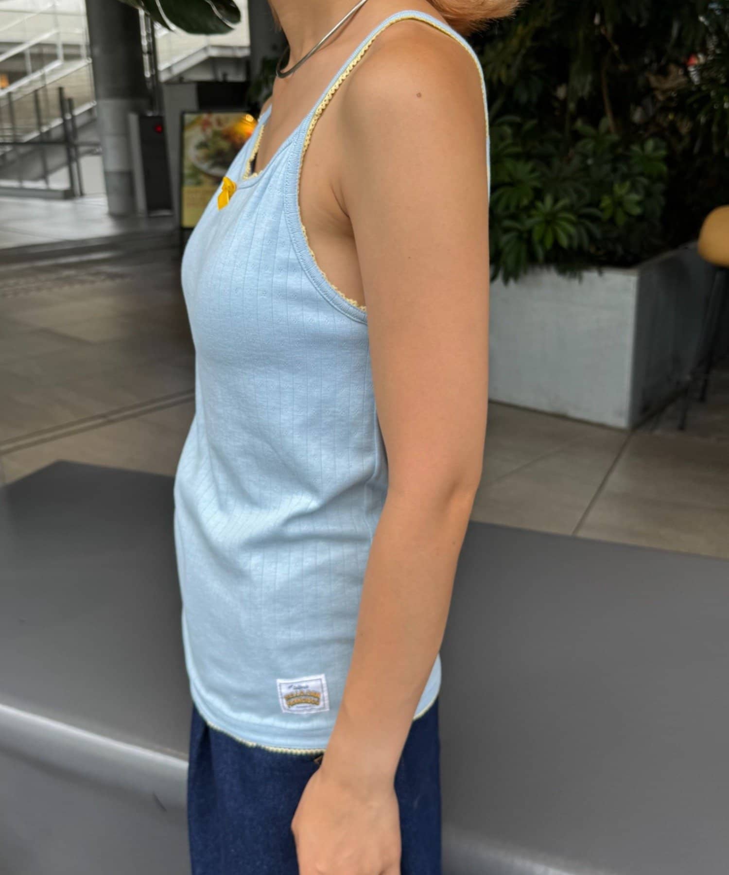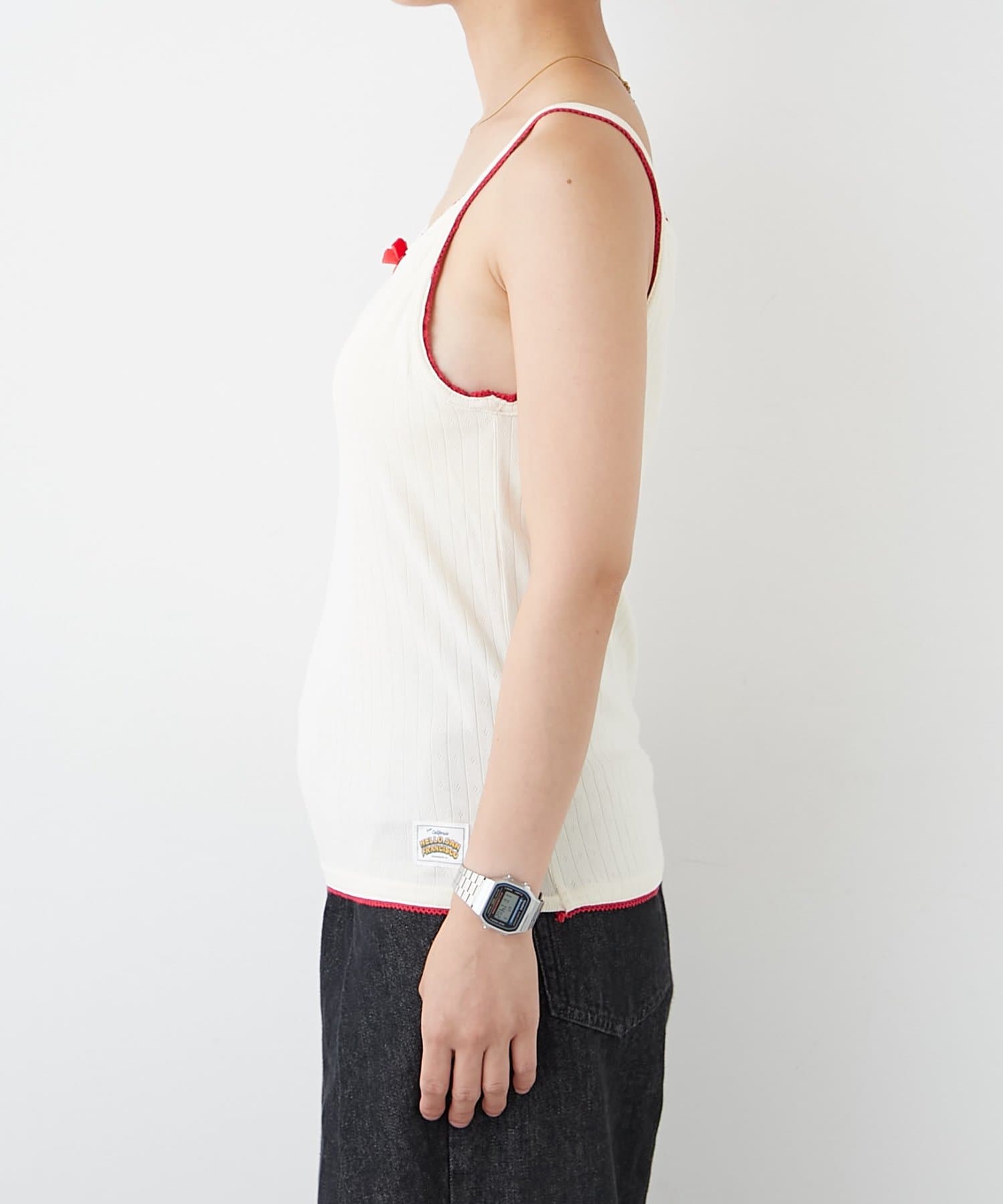ストラップは華奢でレイヤードの邪魔をせず、カップ付きなので1枚で着るスタイルもばっちりハマります。