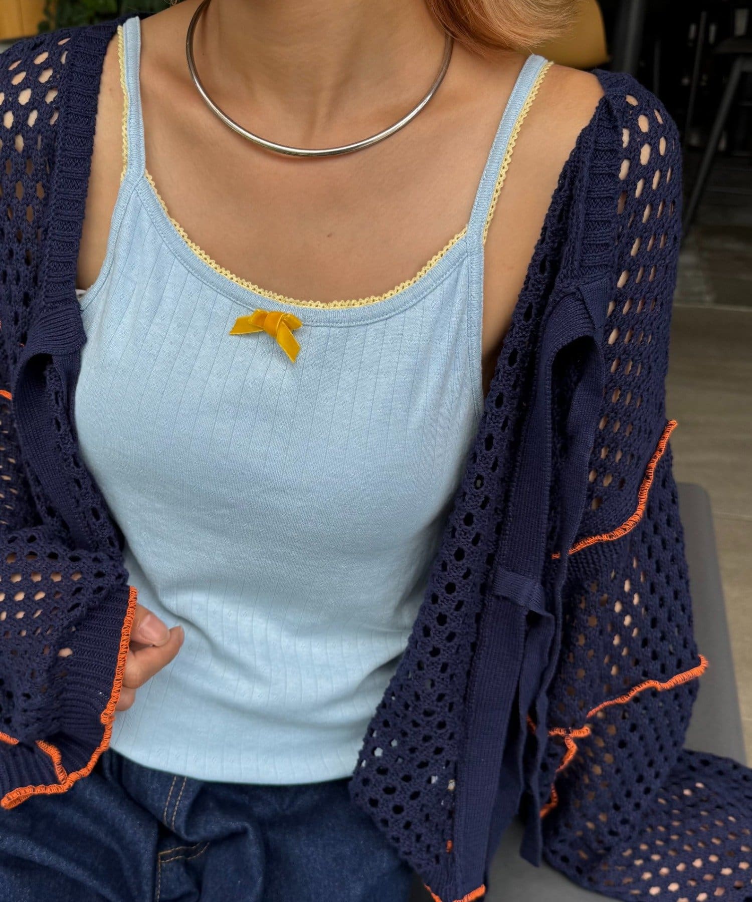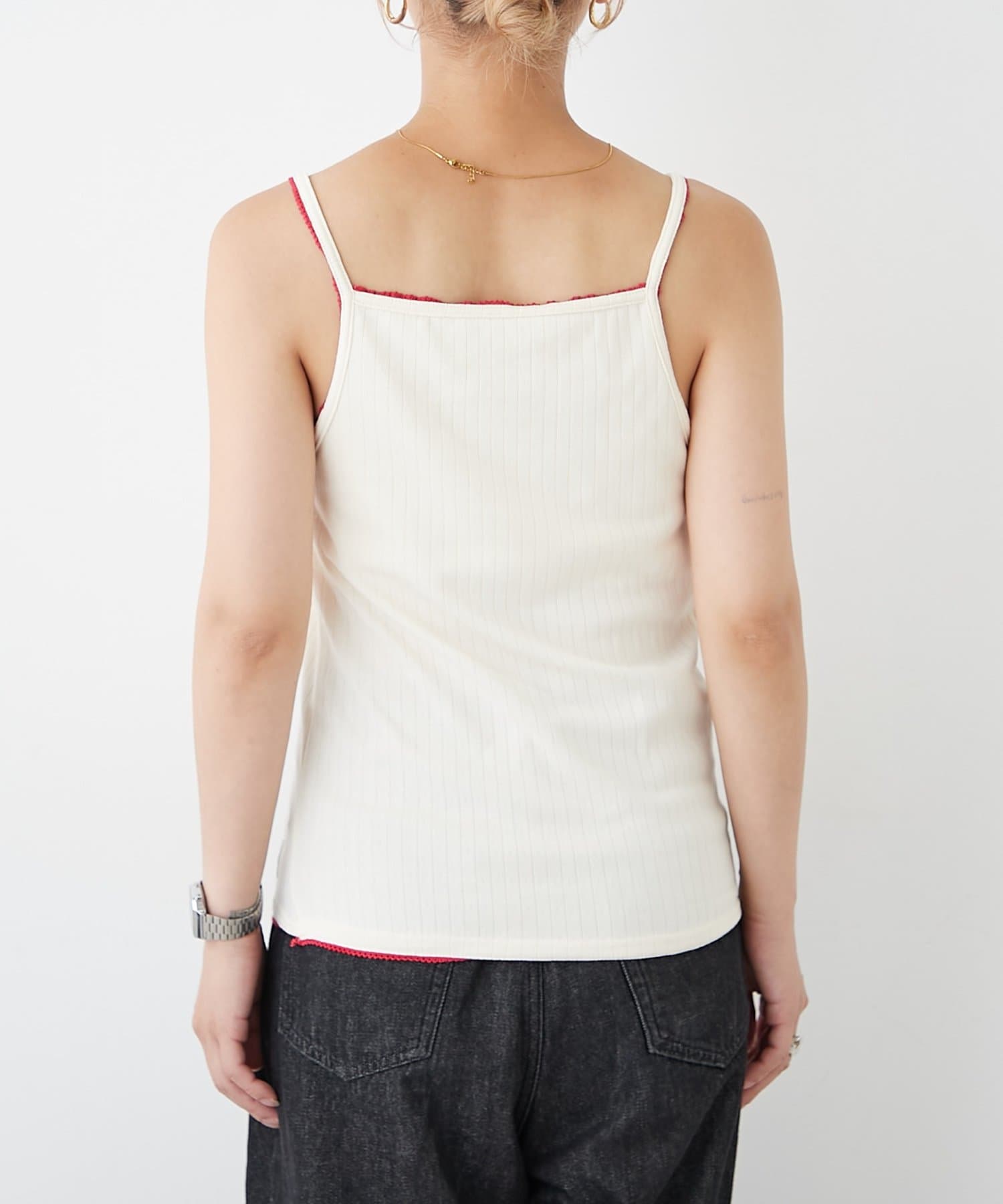 さらに、バイカラーレースをふちにあしらって、ガーリーなディテールをたっぷり詰め込んだキャミソールができました!