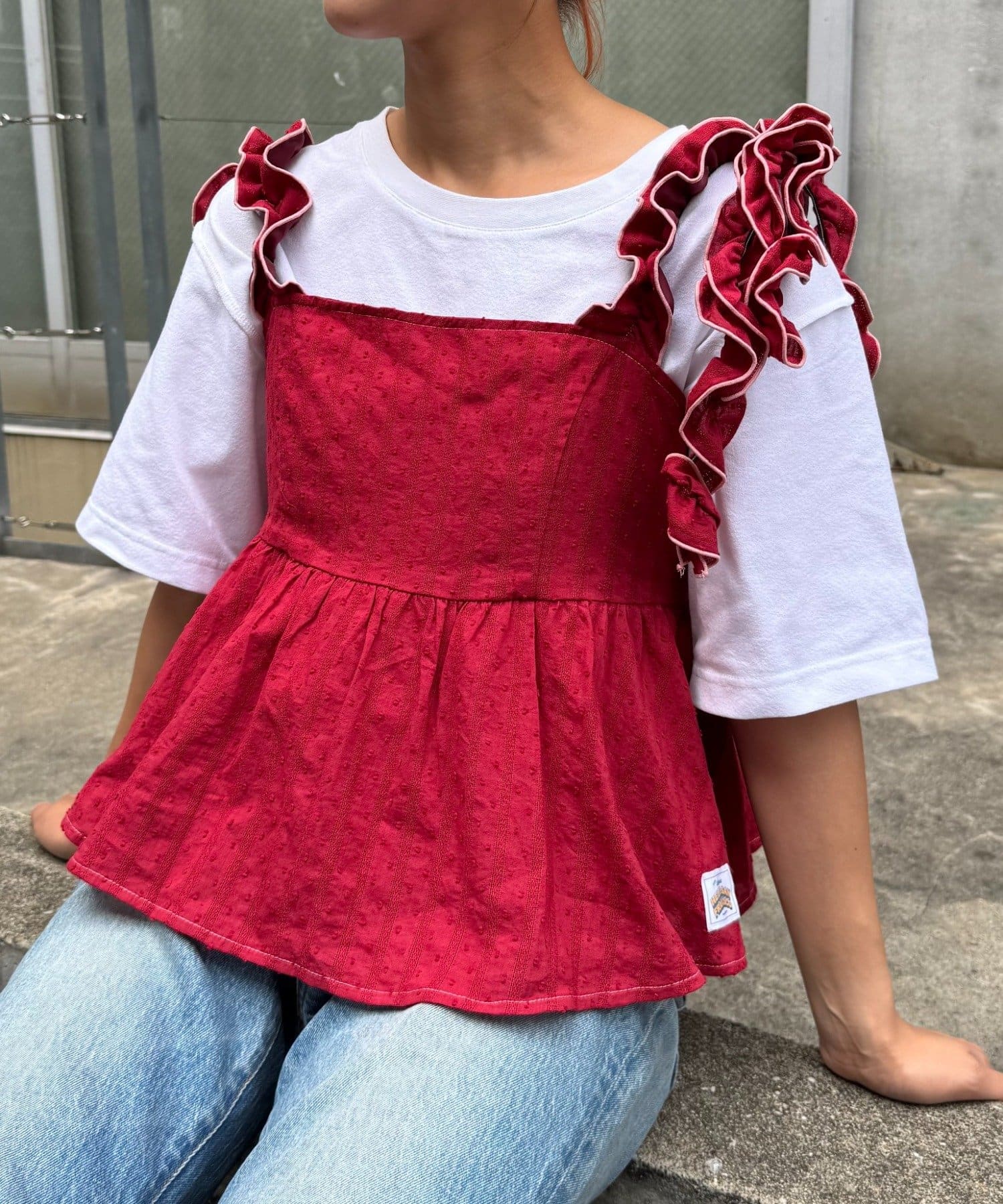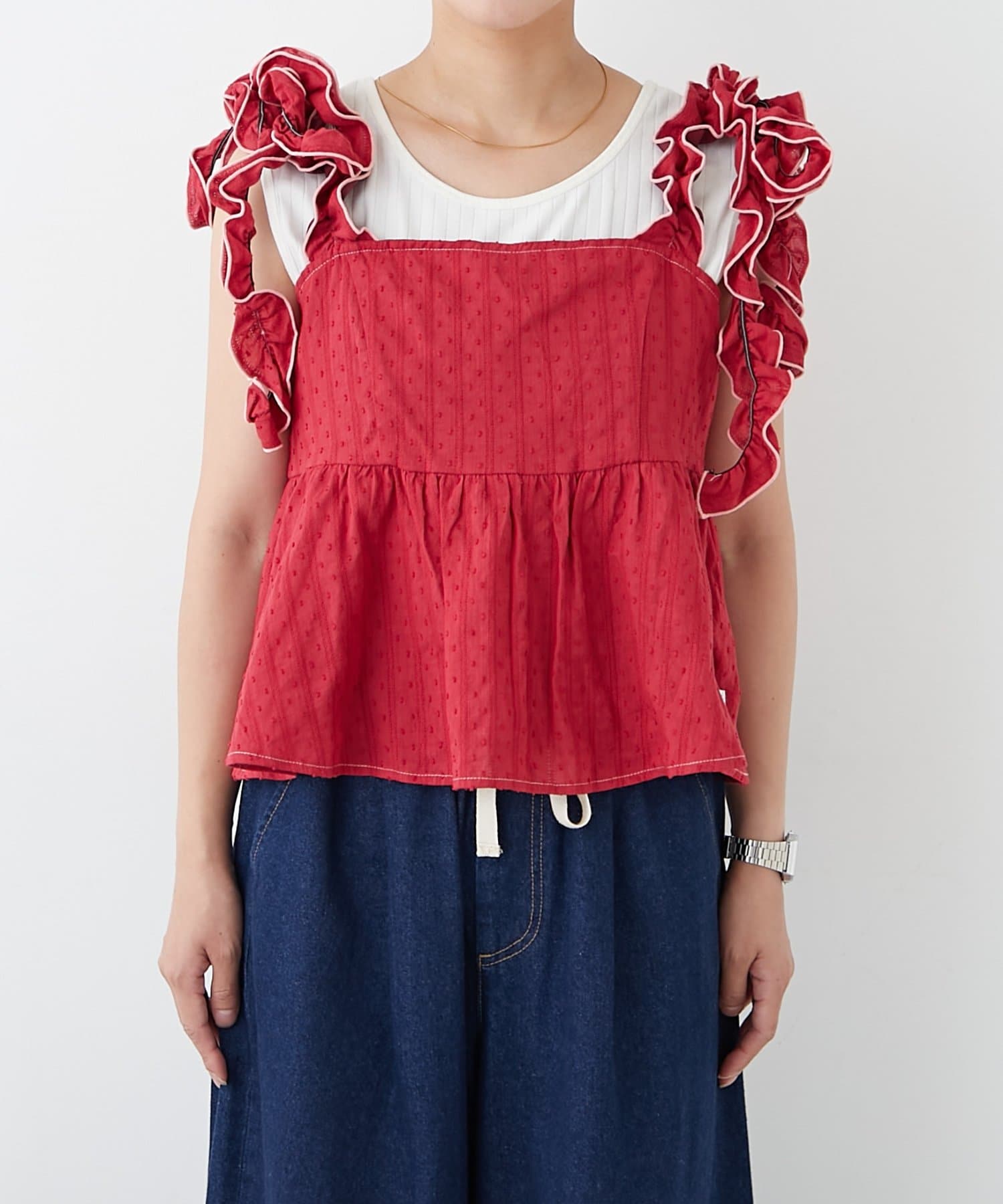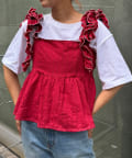ガーリーさにひと癖足した、立体的なドット生地のフリルキャミビスチェ!