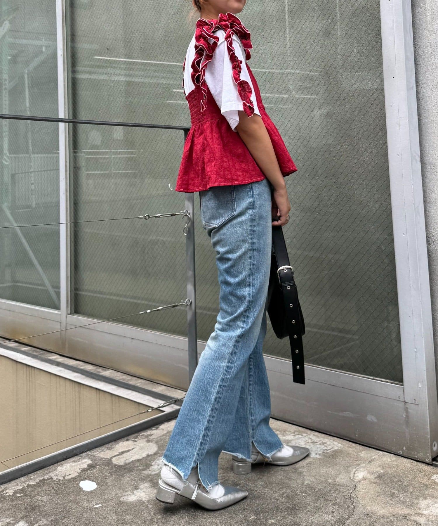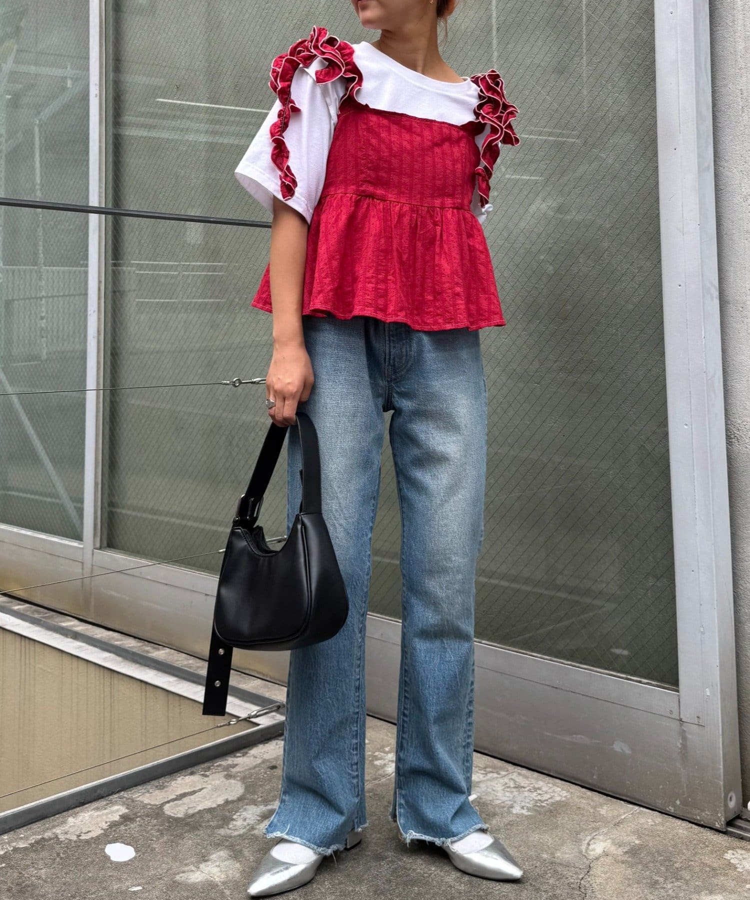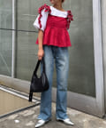 フラットパンプスやローファーで甘め、スニーカーでストリートMIXもおすすめです◎