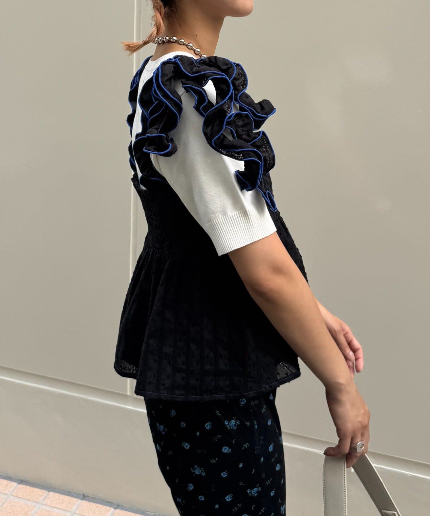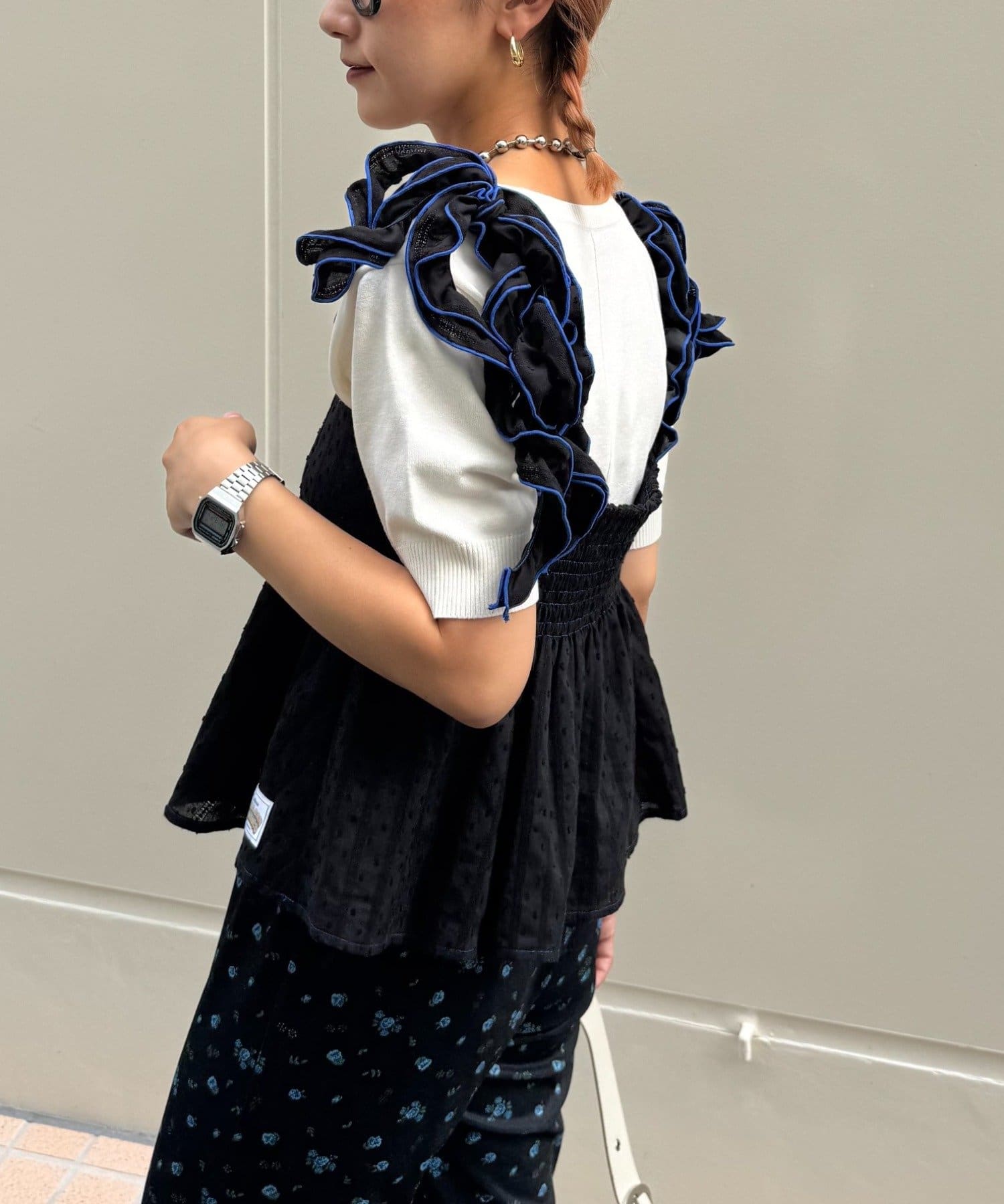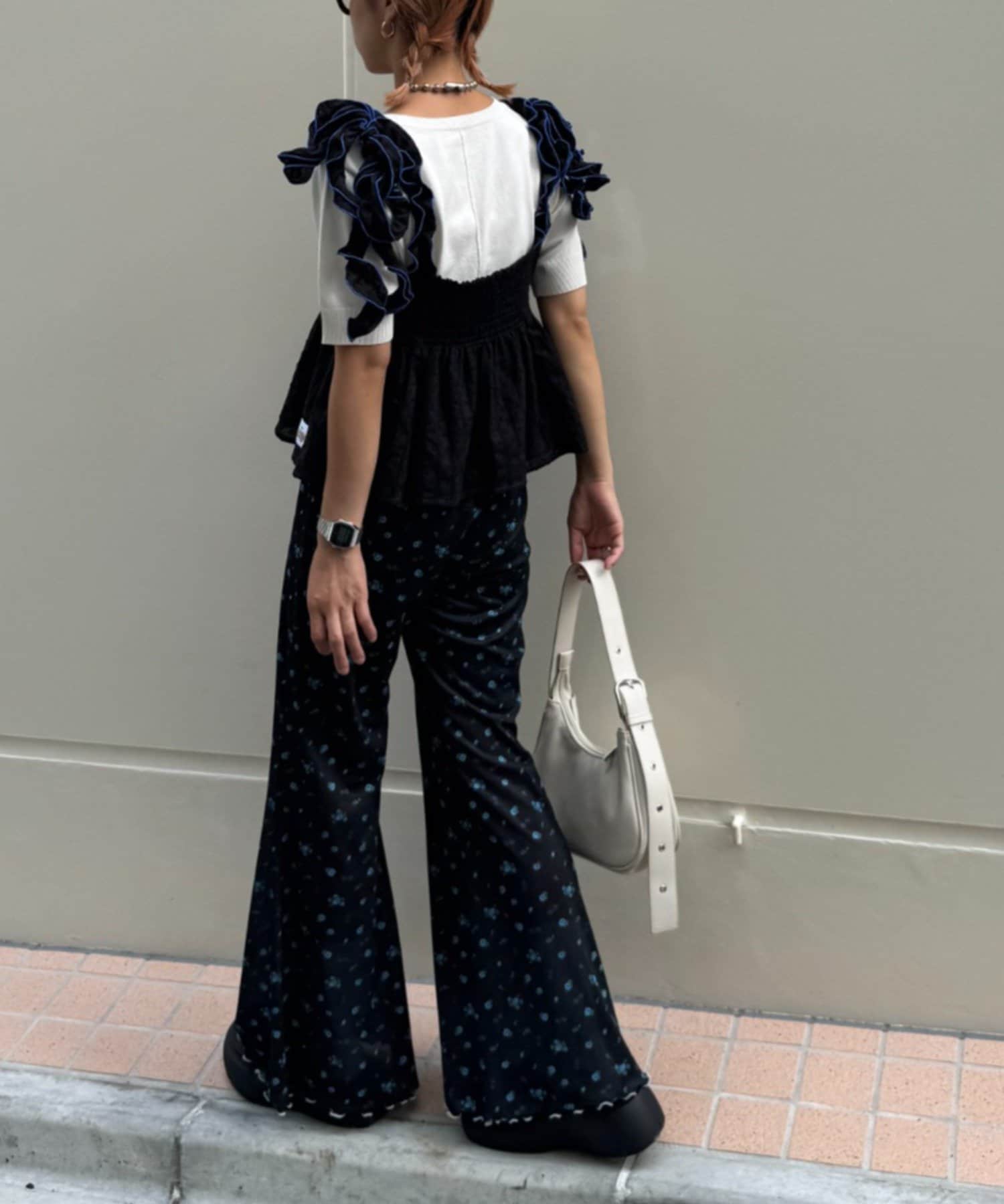 フリルになった肩紐はバイカラーのパイピングでよりデザインが際立つ仕様に♩