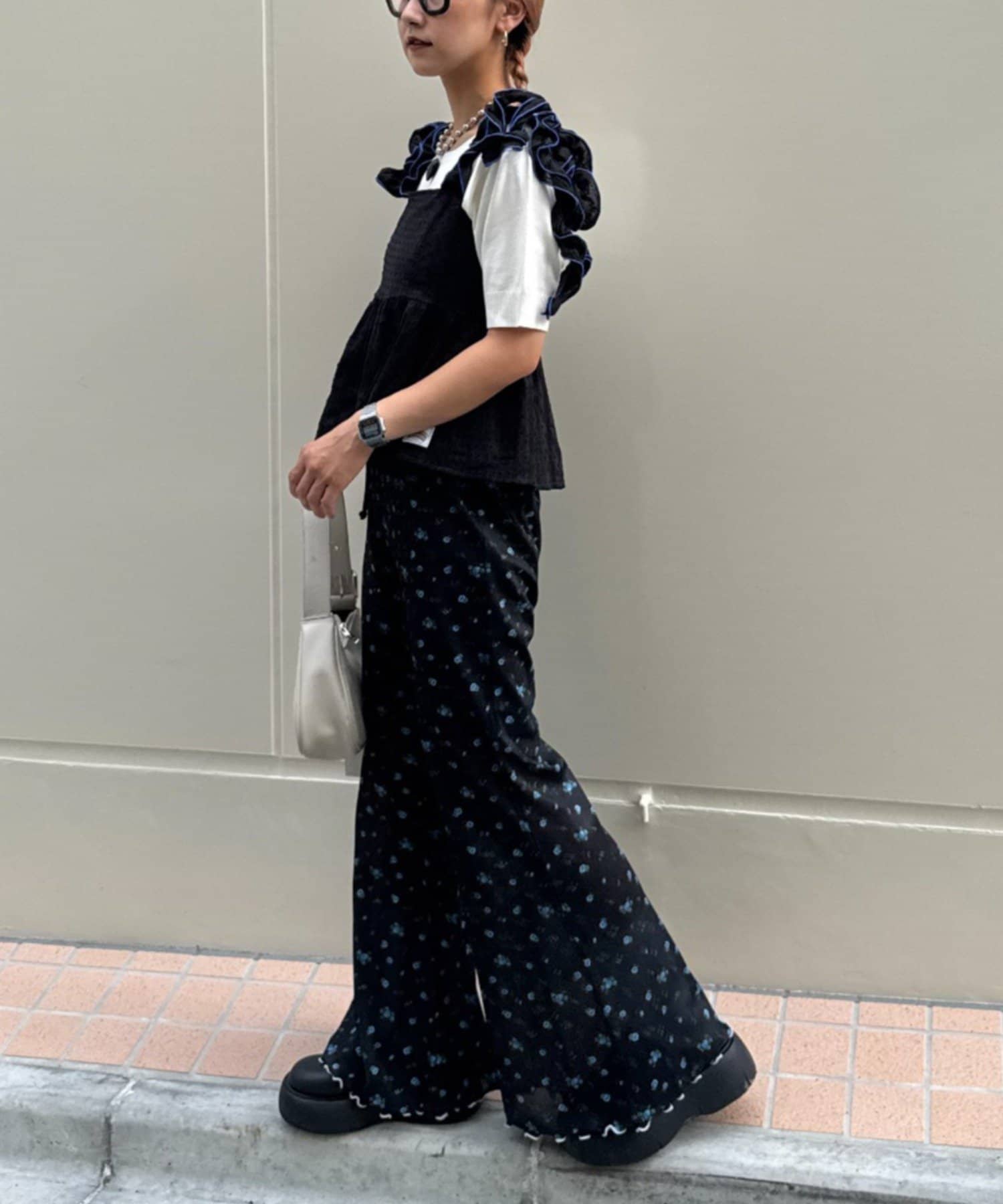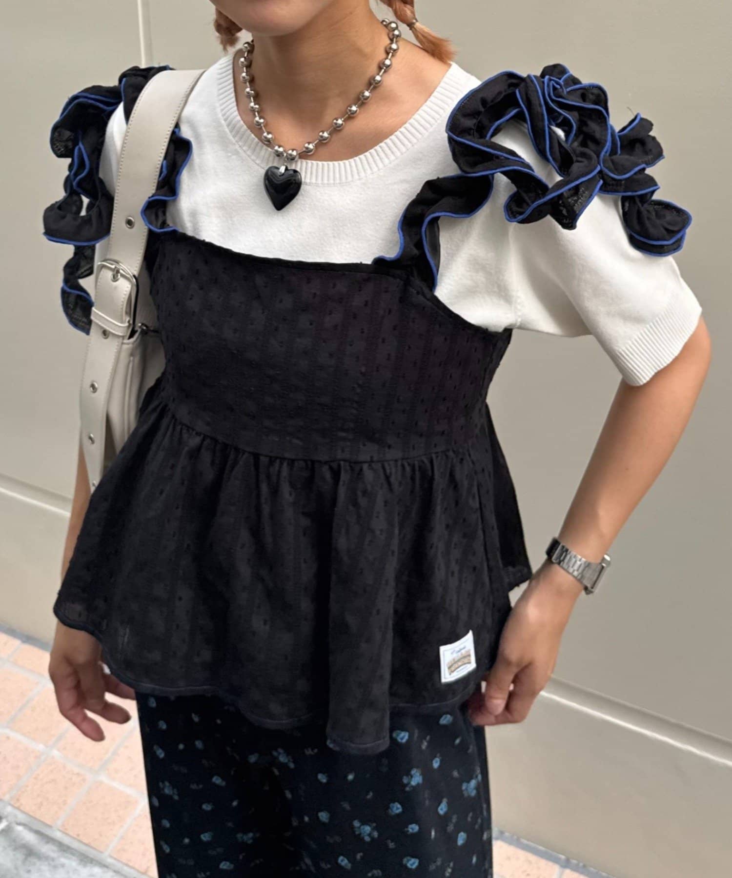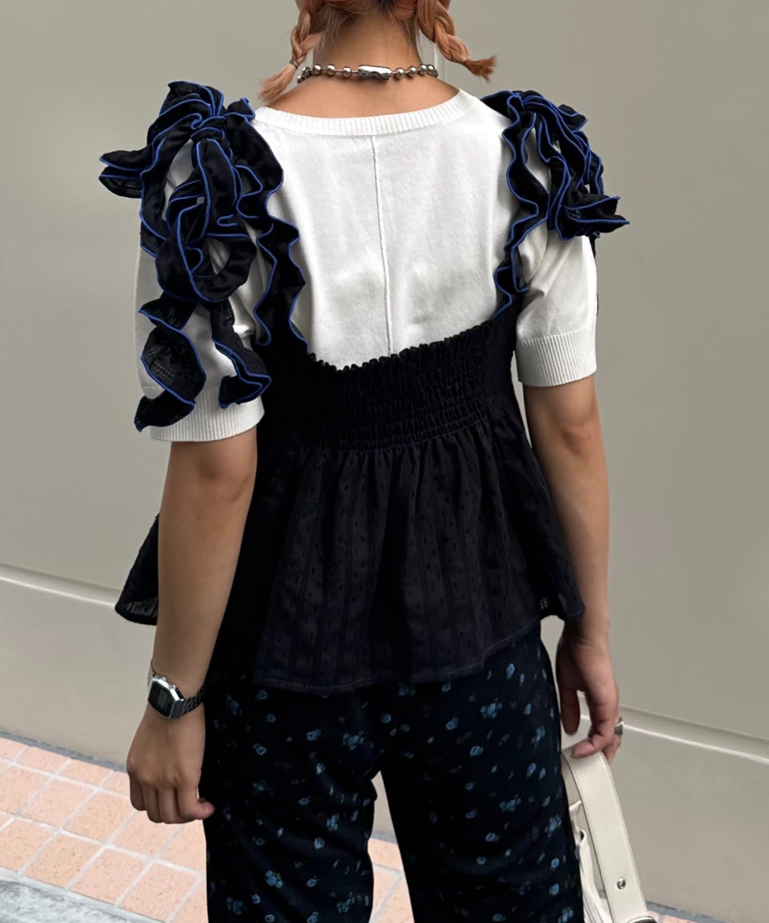 フリルになった肩紐はバイカラーのパイピングでよりデザインが際立つ仕様に♩