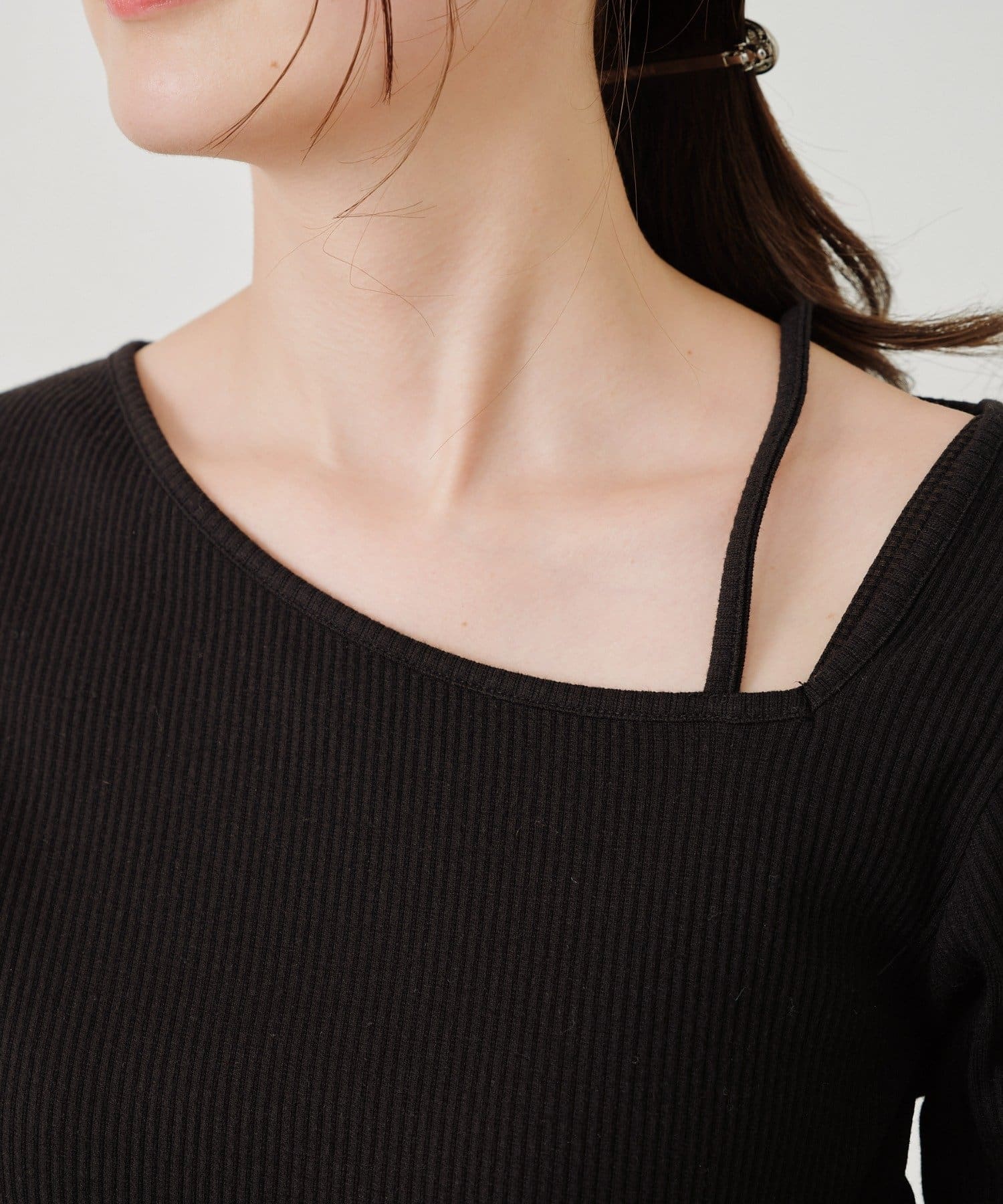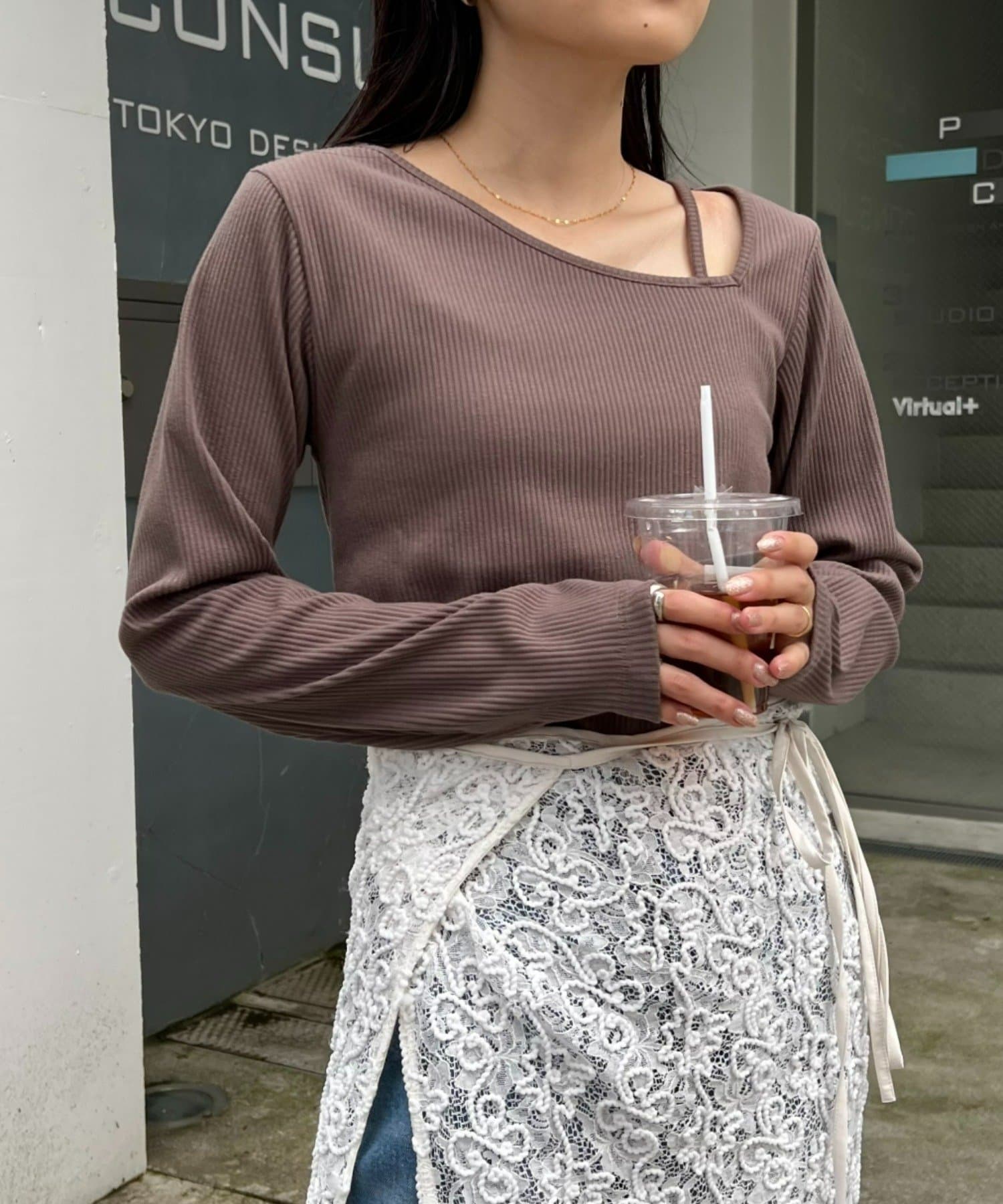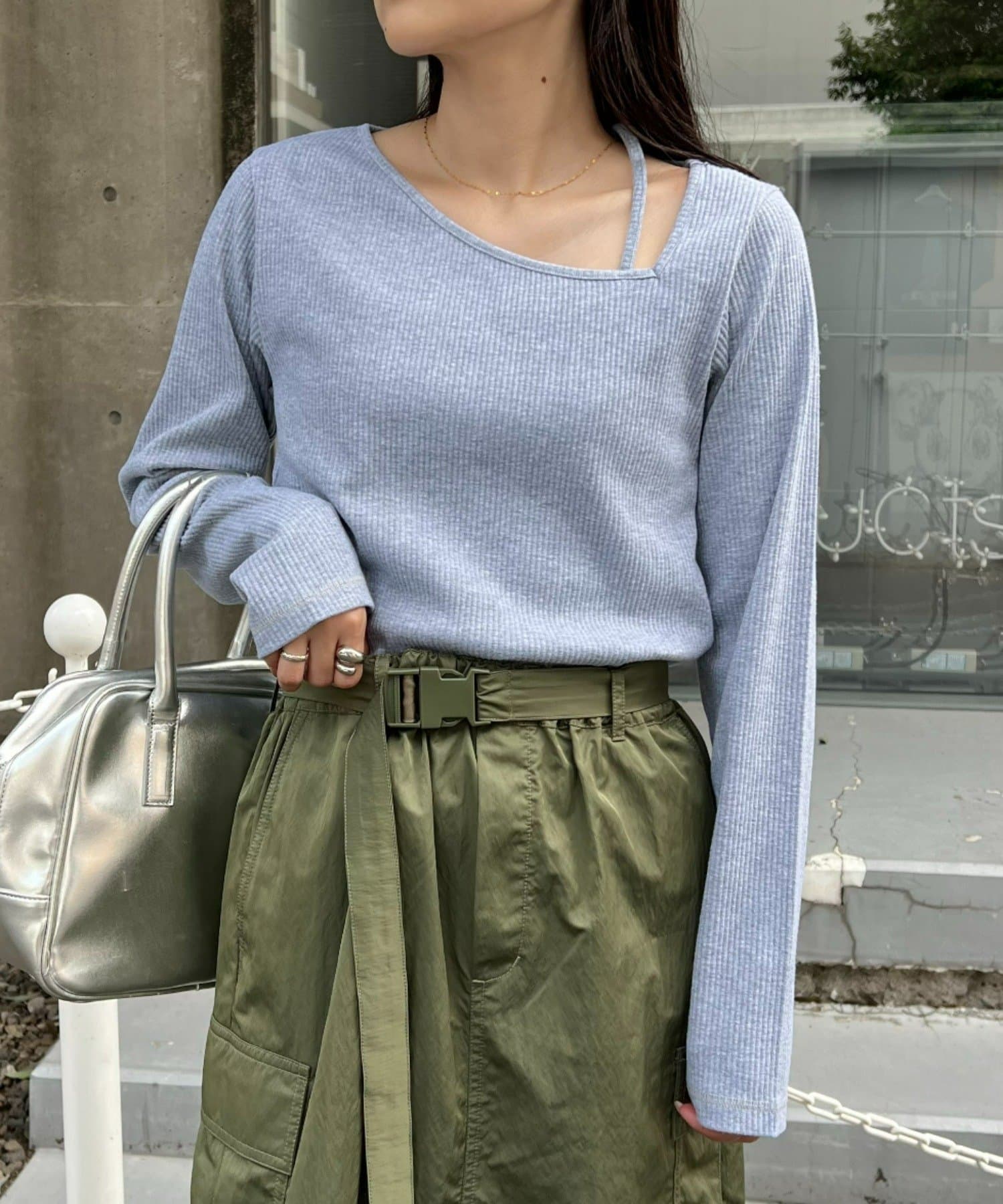 ネックラインがアシンメトリーなのでデコルテやお顔まわりが