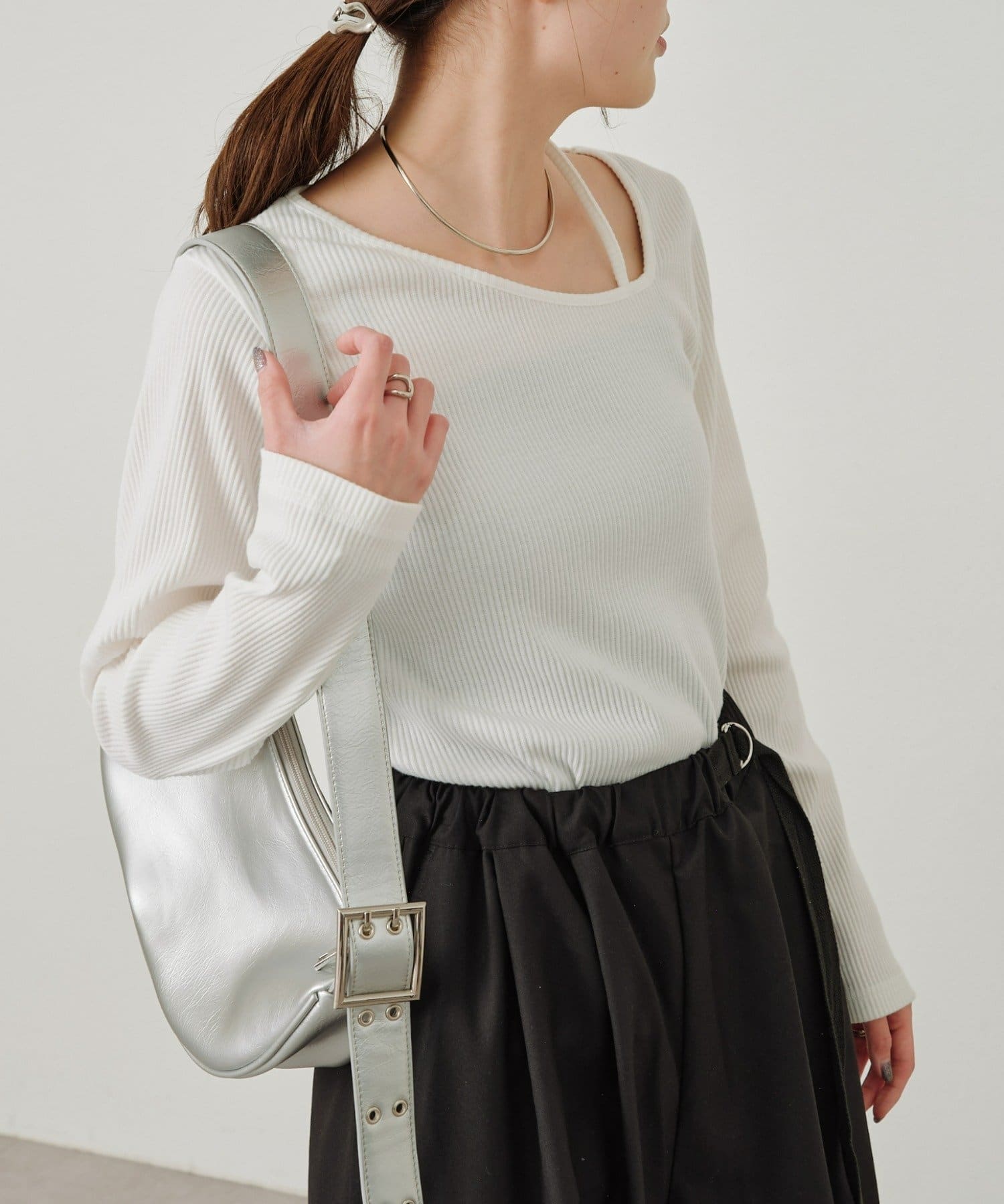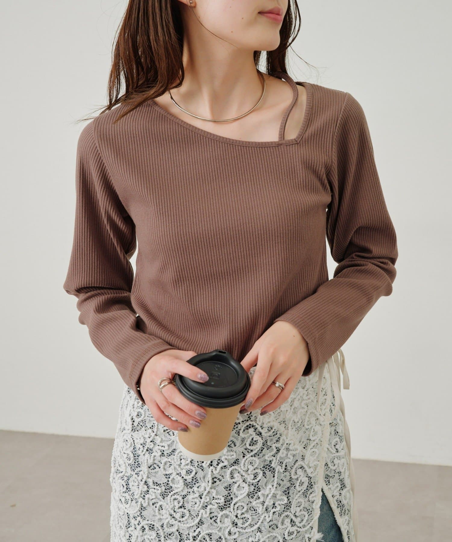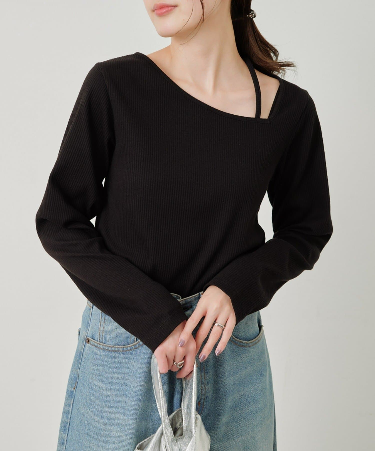 ネックラインがアシンメトリーなのでデコルテやお顔まわりが