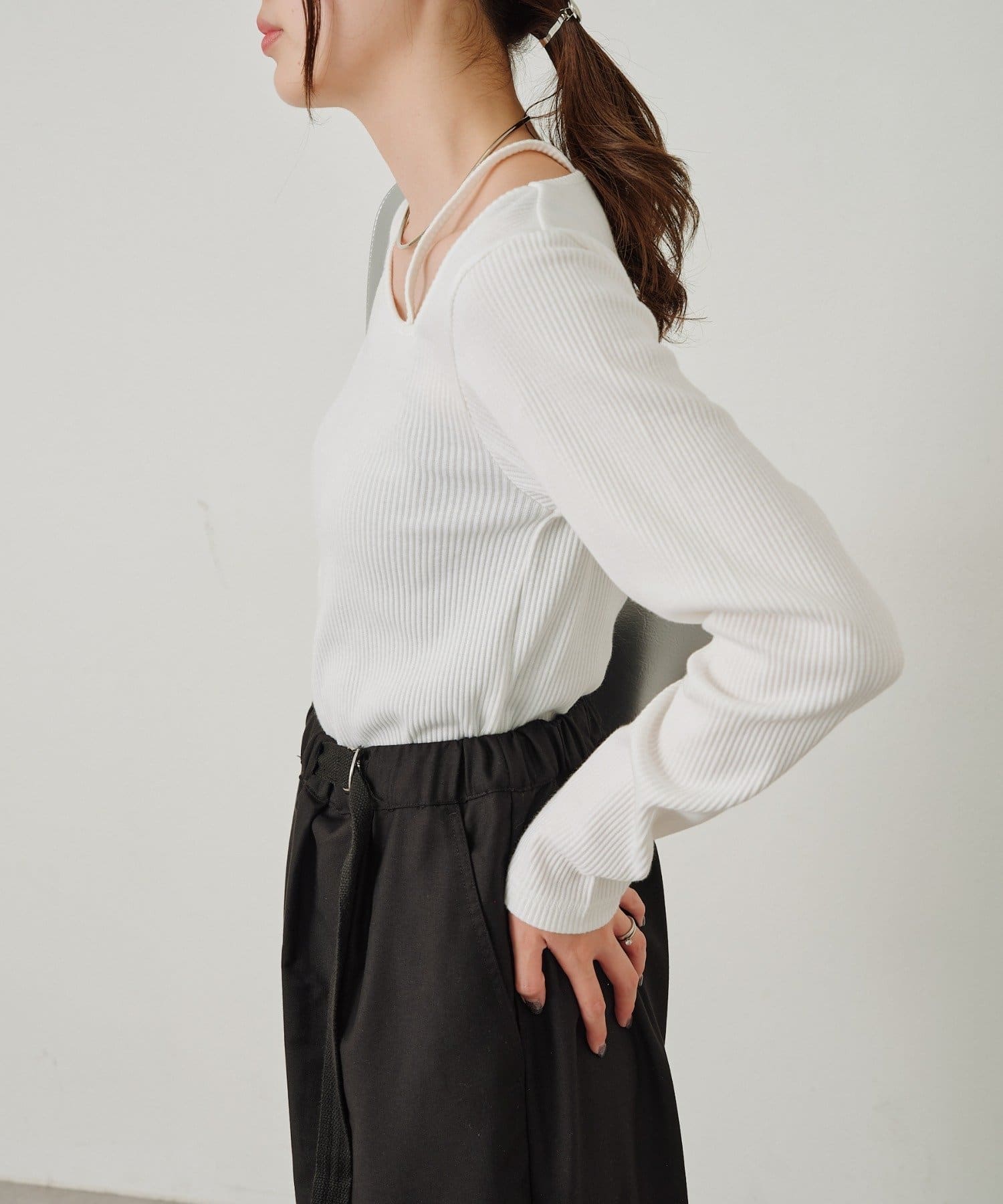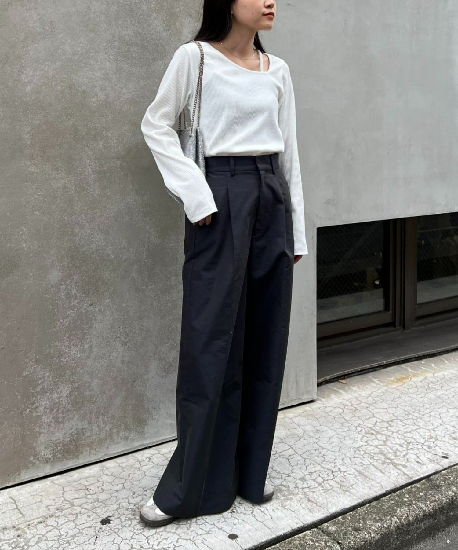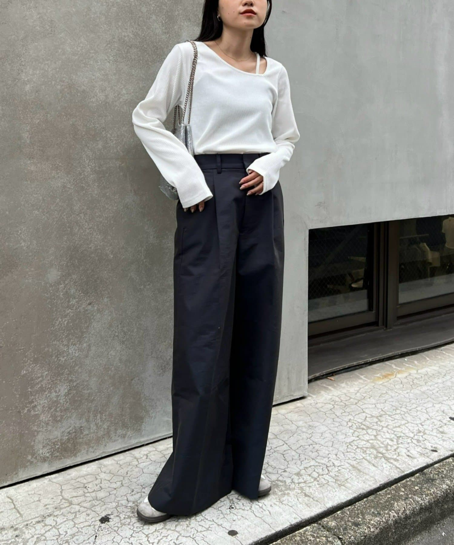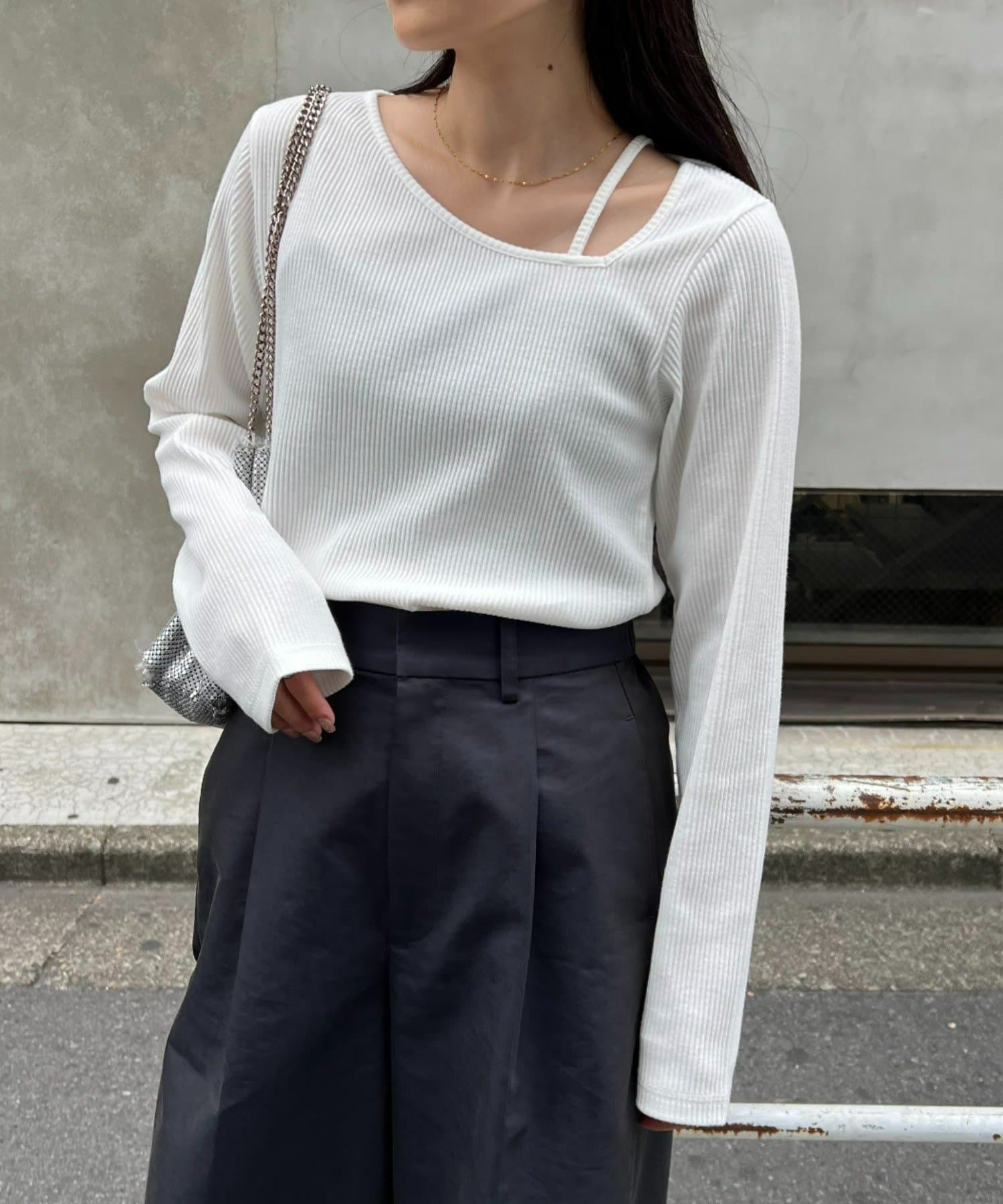 サロペットなどのインナー使いとしても着ていただけるシルエットなので