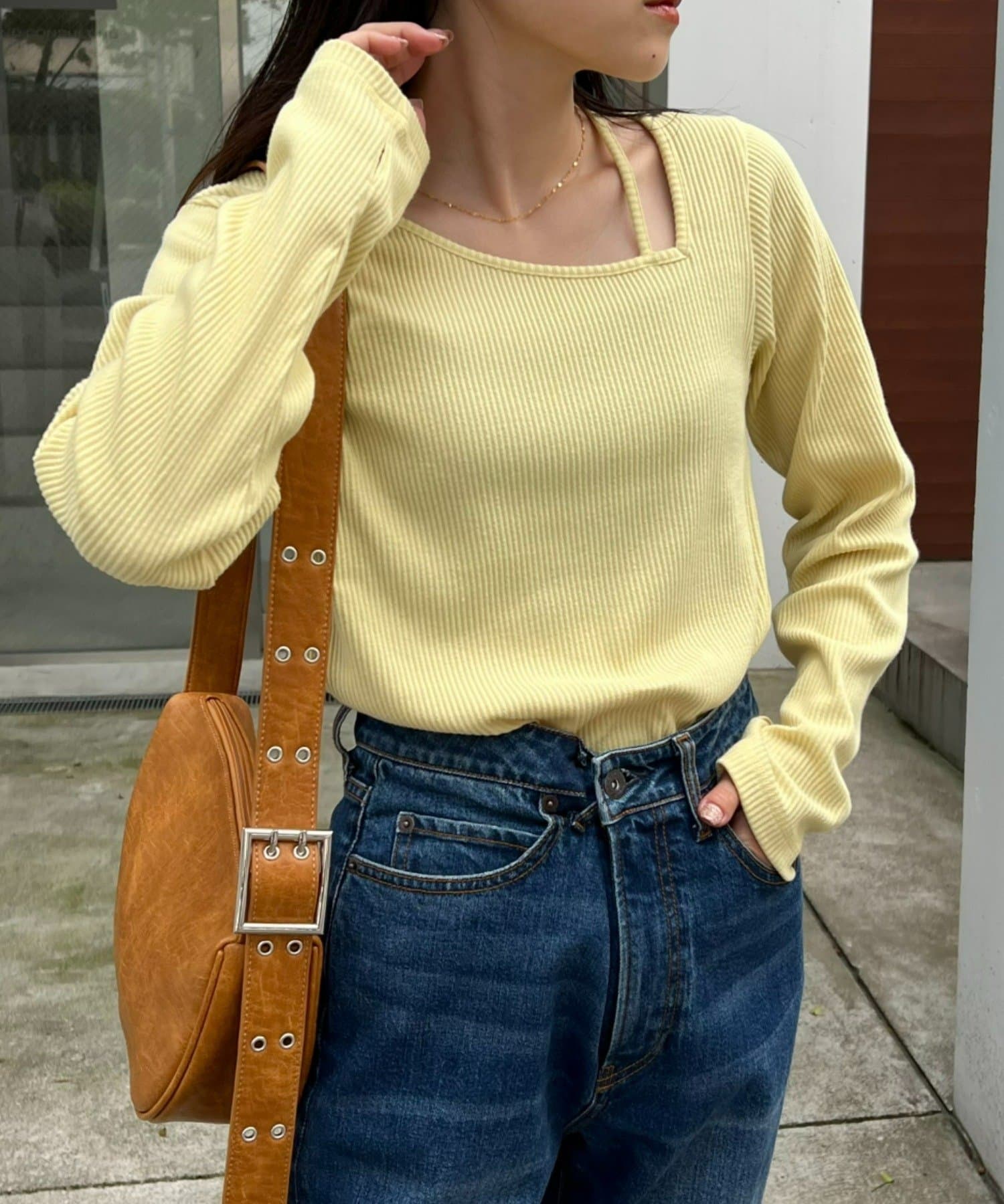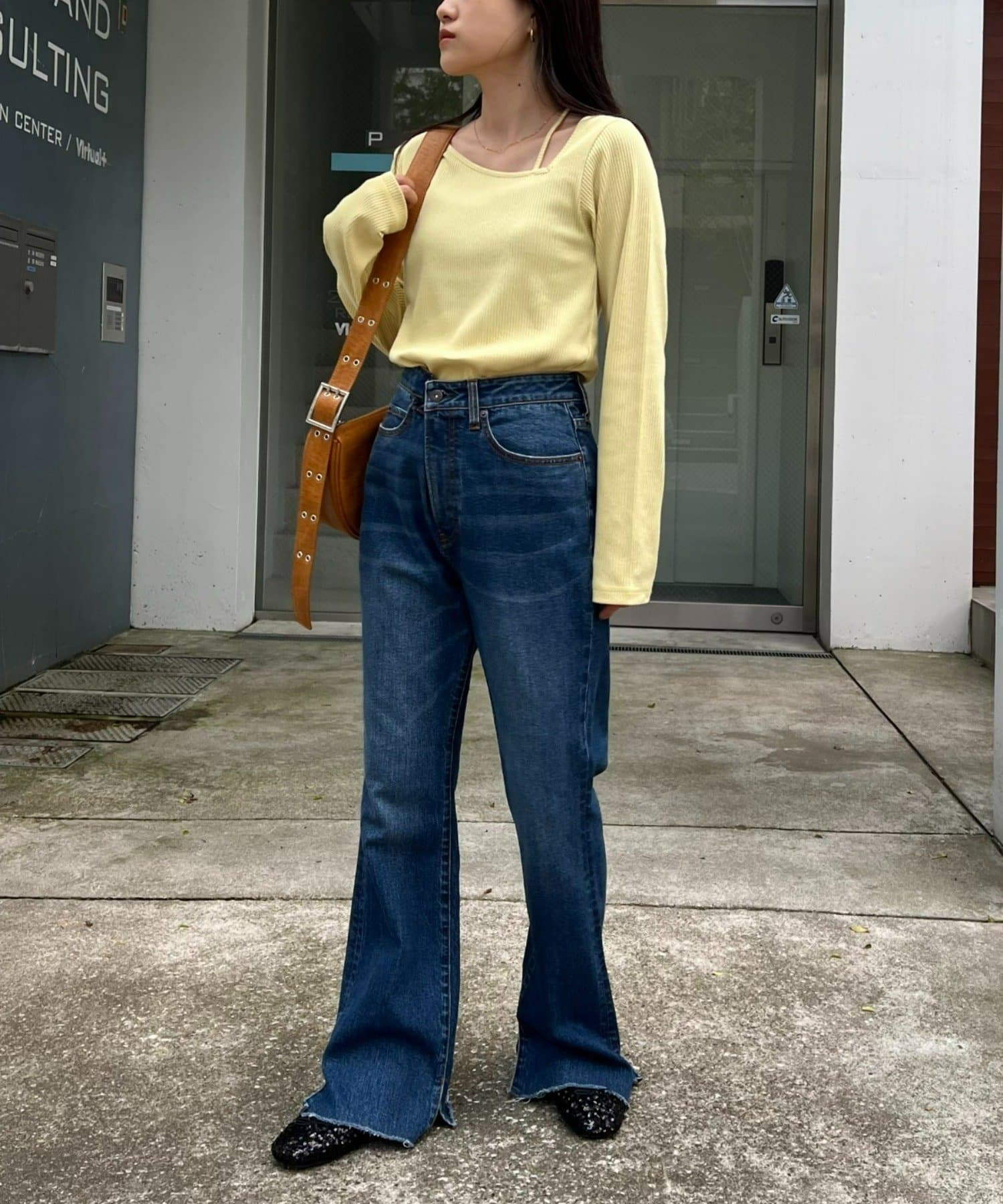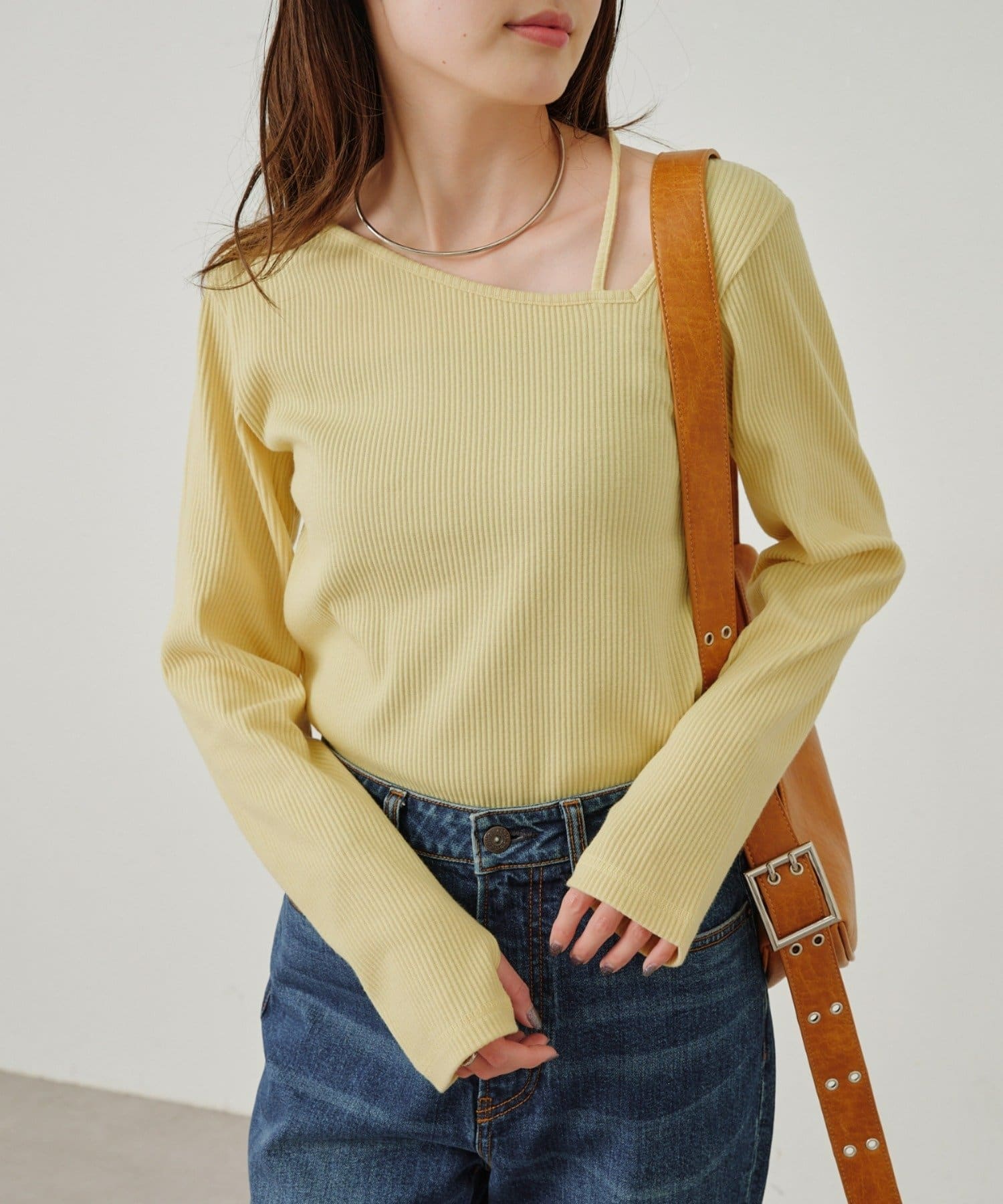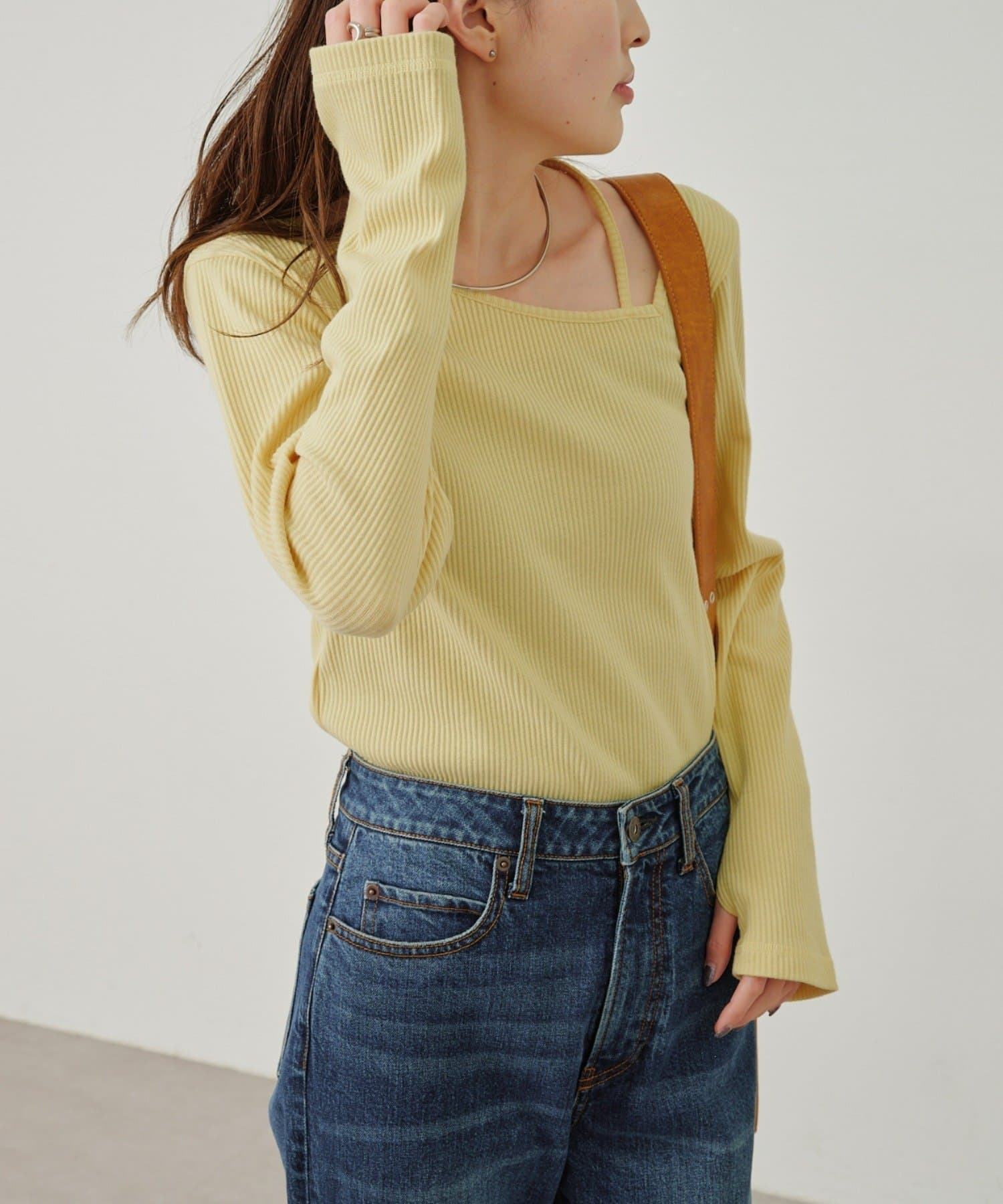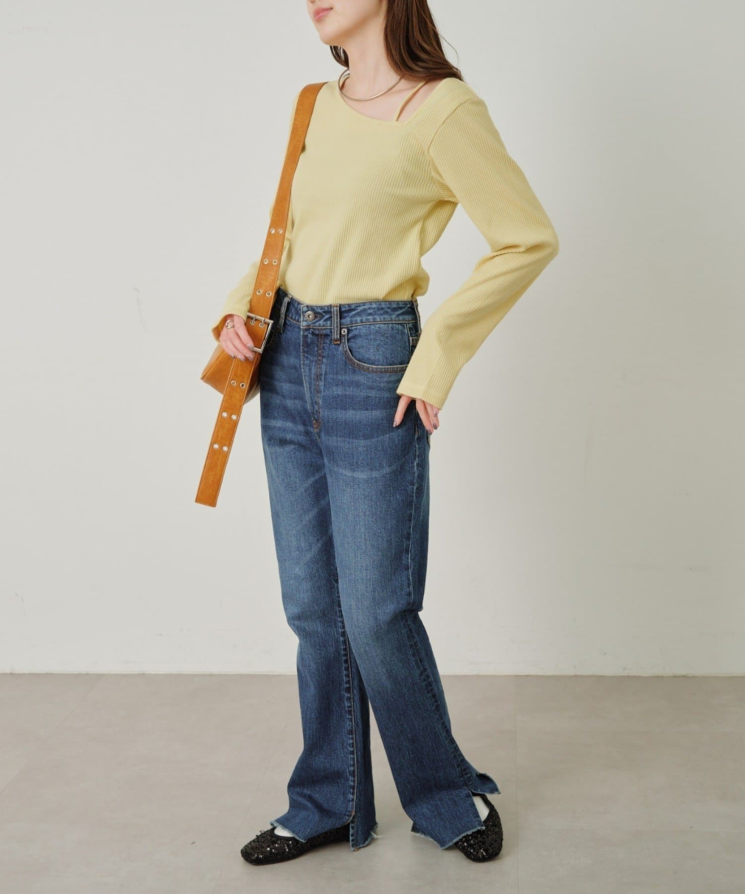 サロペットなどのインナー使いとしても着ていただけるシルエットなので