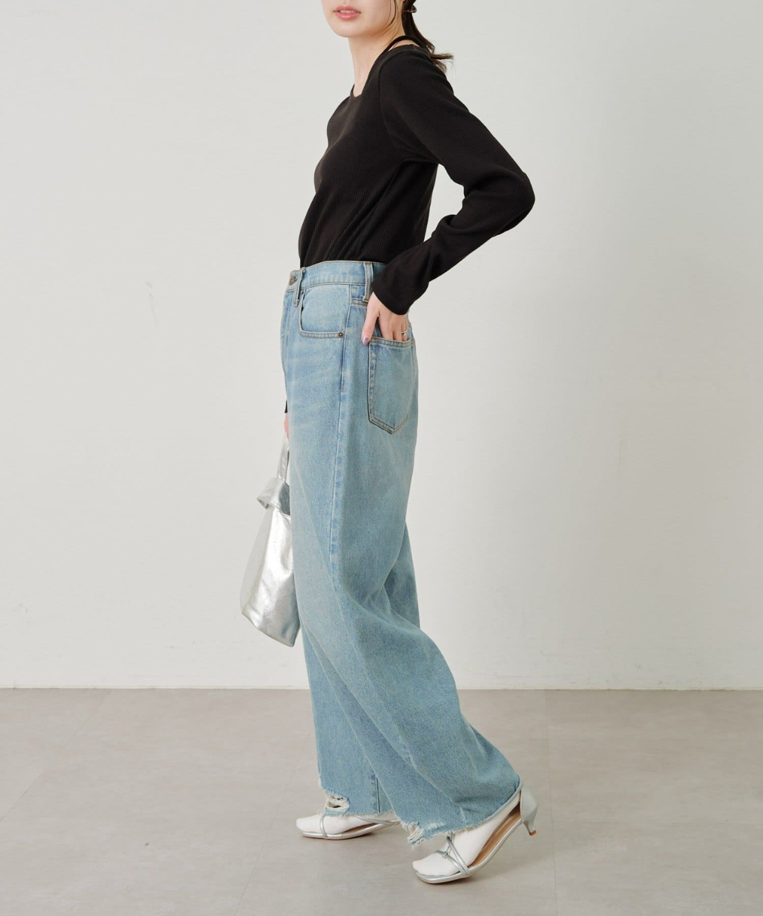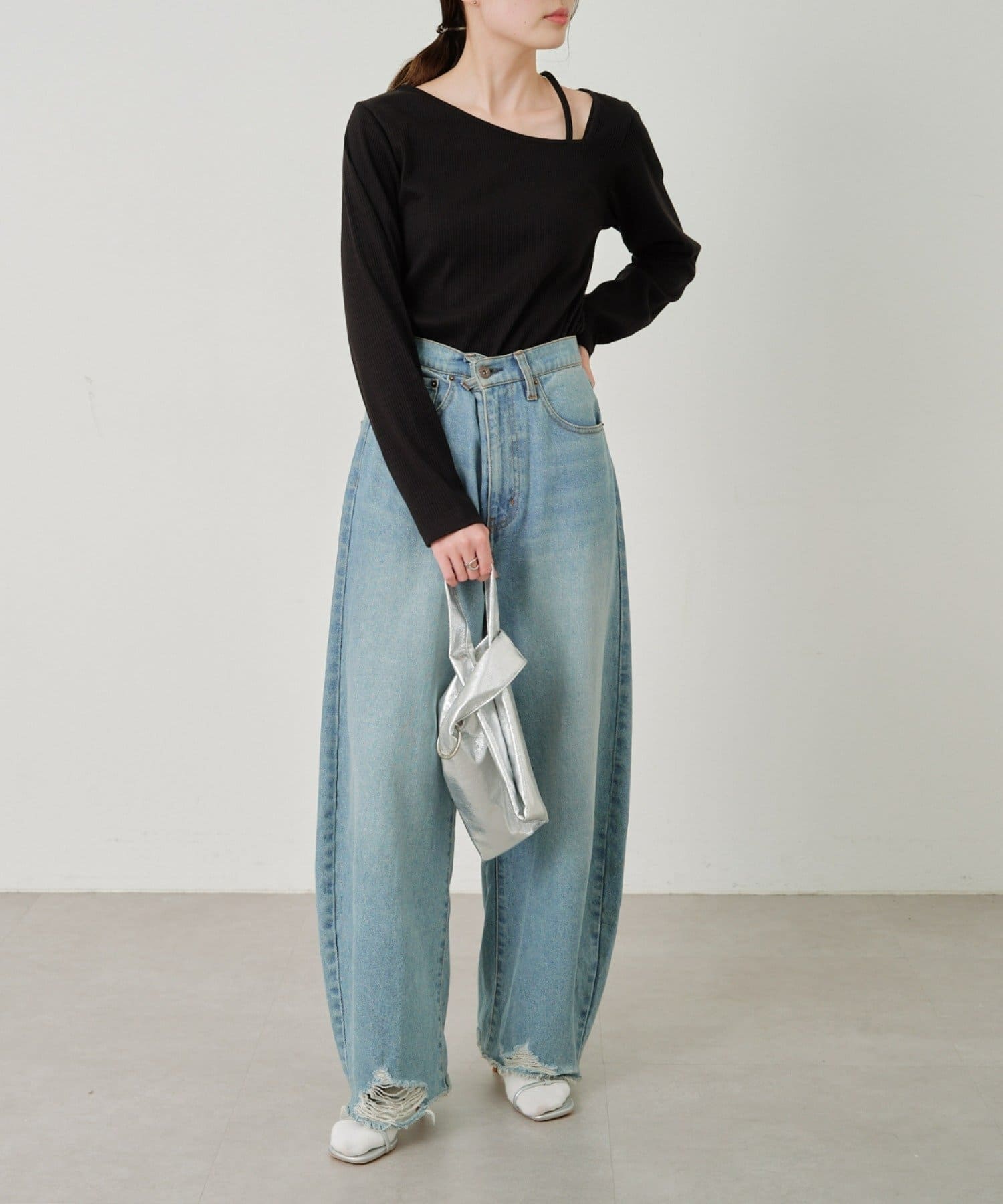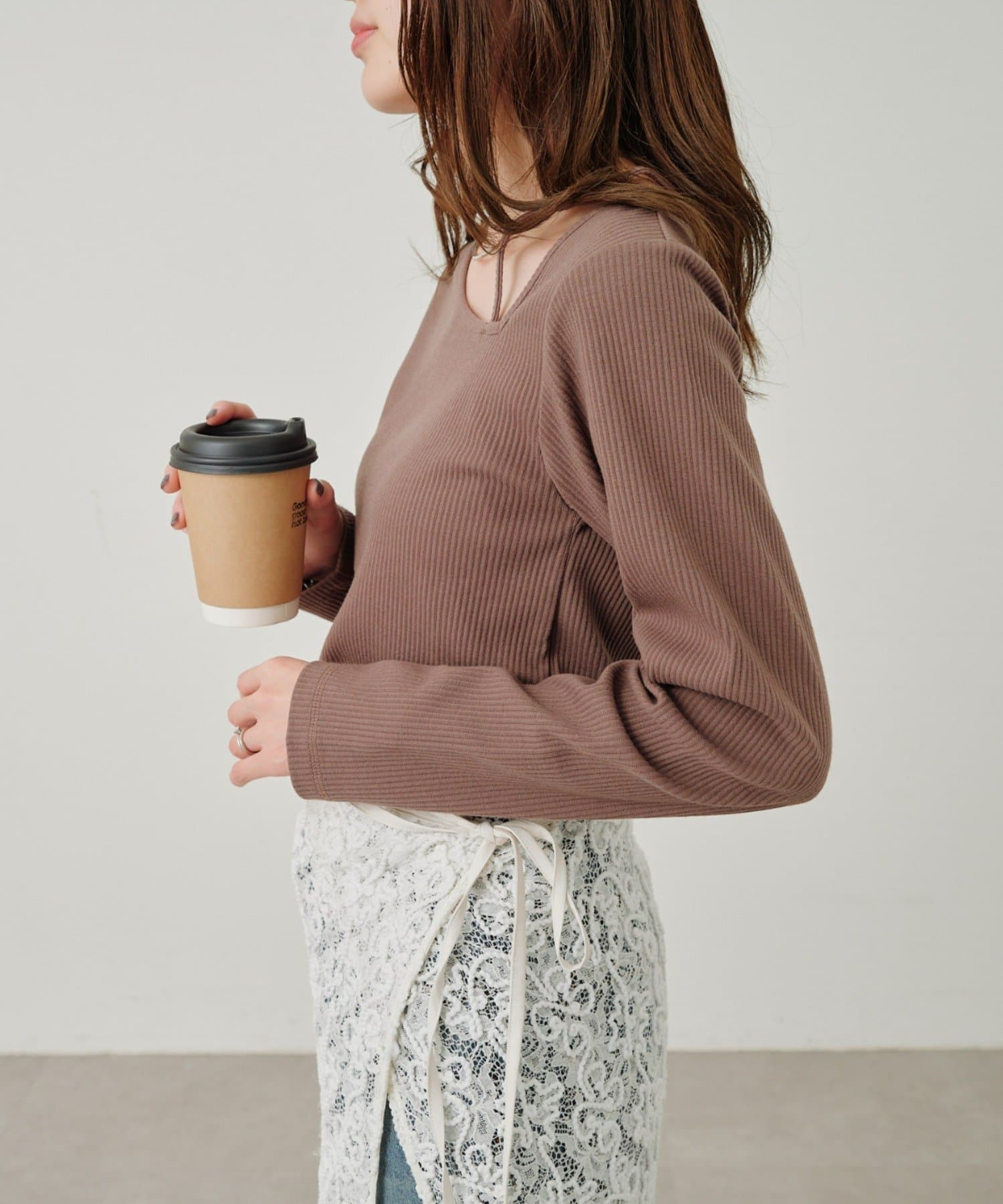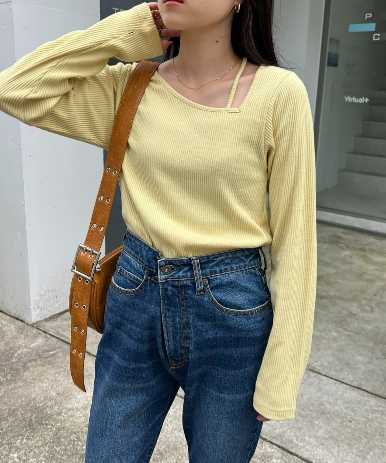 サロペットなどのインナー使いとしても着ていただけるシルエットなので
