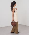 トップスを問わず幅広いアイテムとのレイヤードが可能。