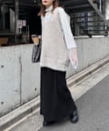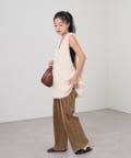 存在感のあるベストなので、シンプルなトップスでもコーデが様になります。