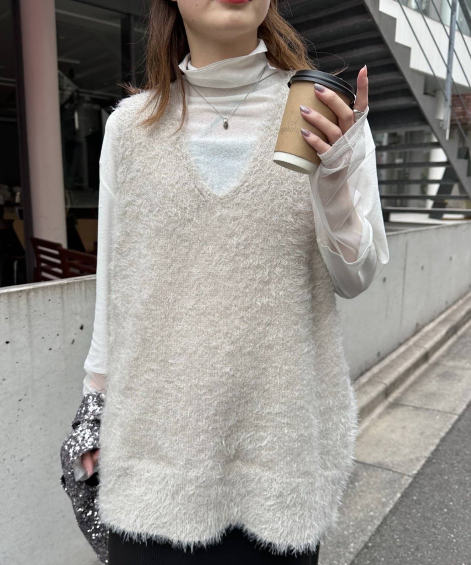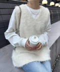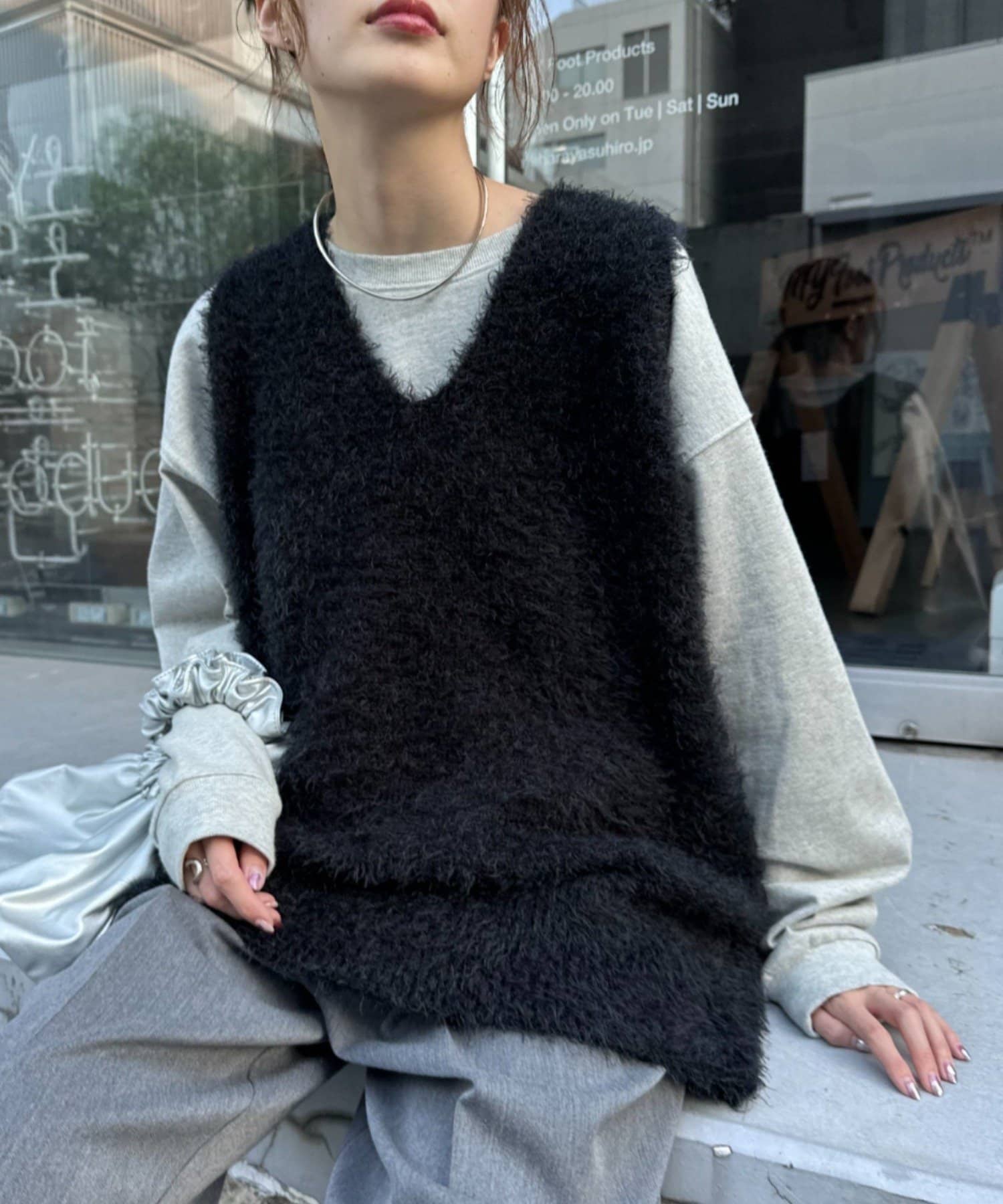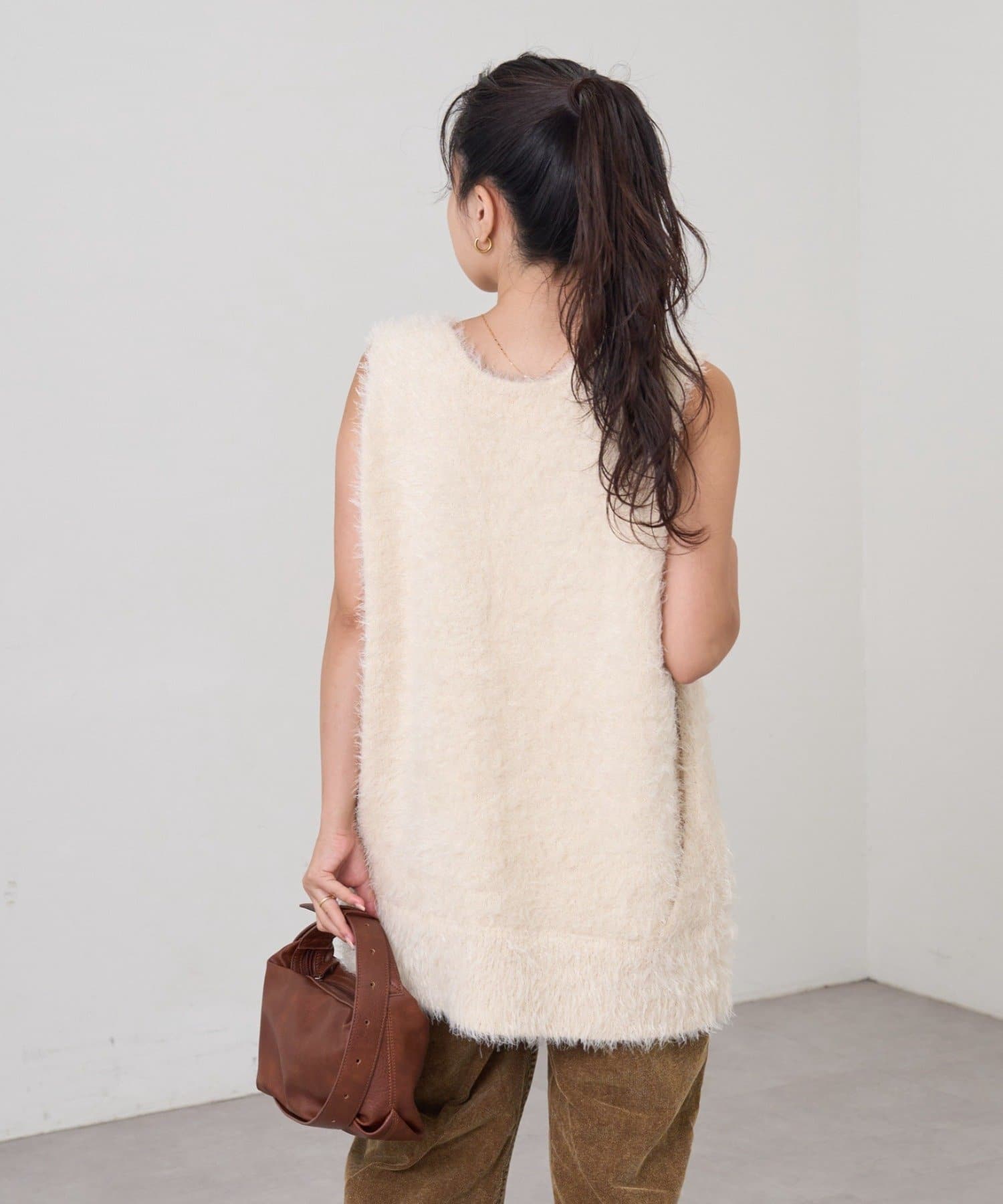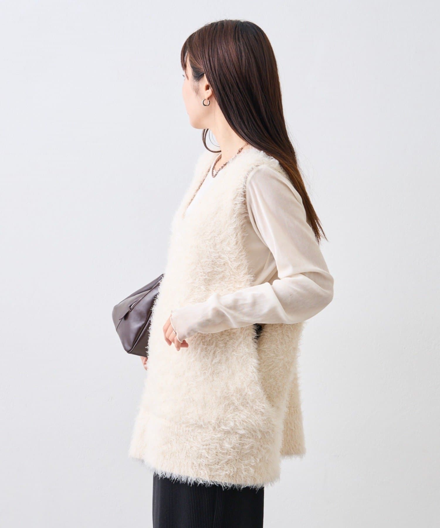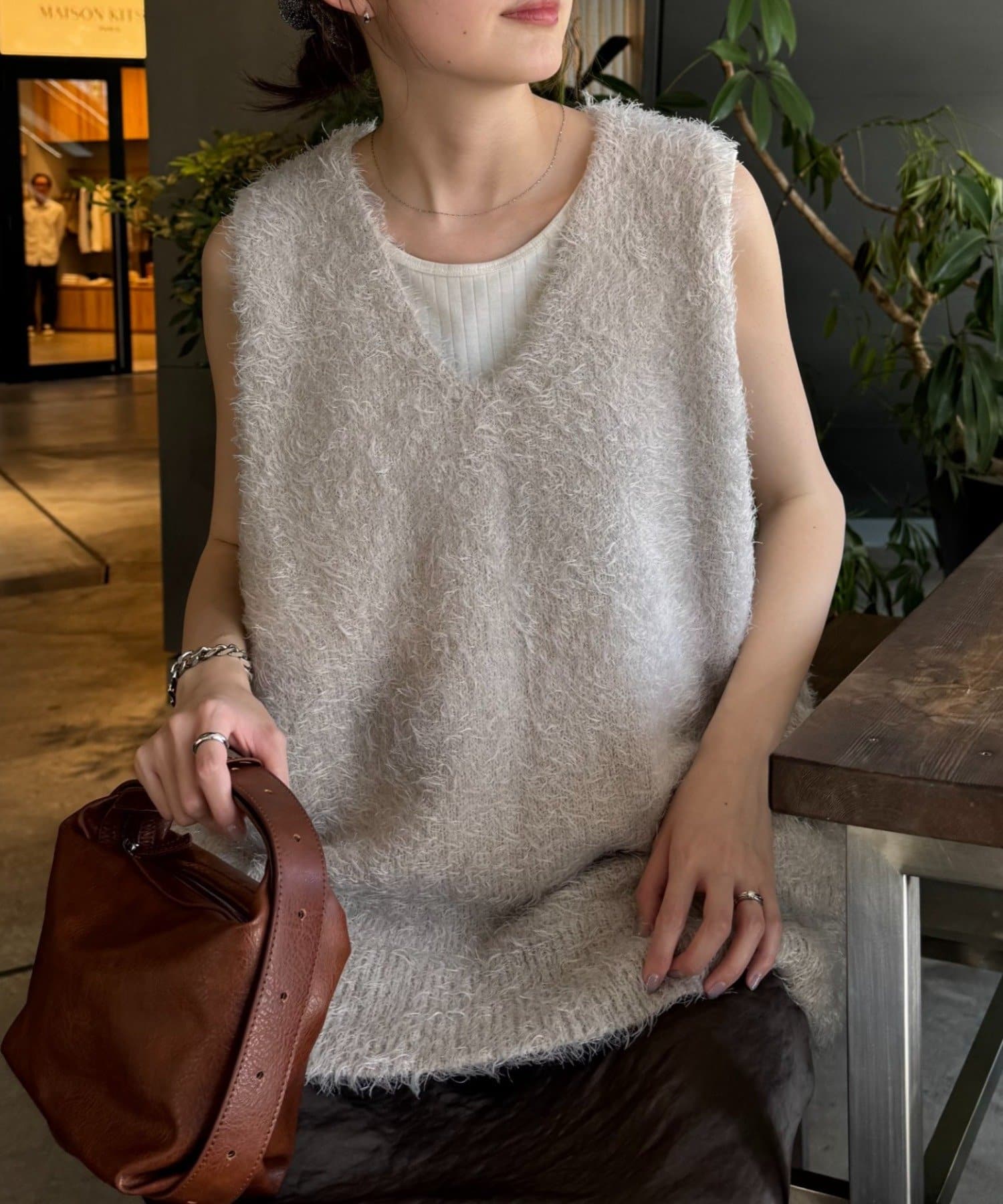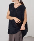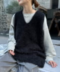 ふわふわのフェザーヤーンニットを使用したベスト。
