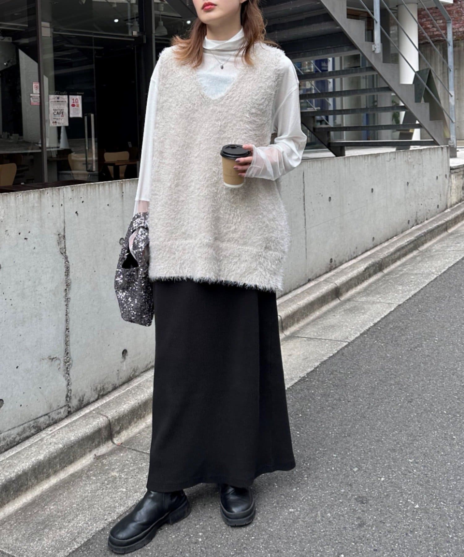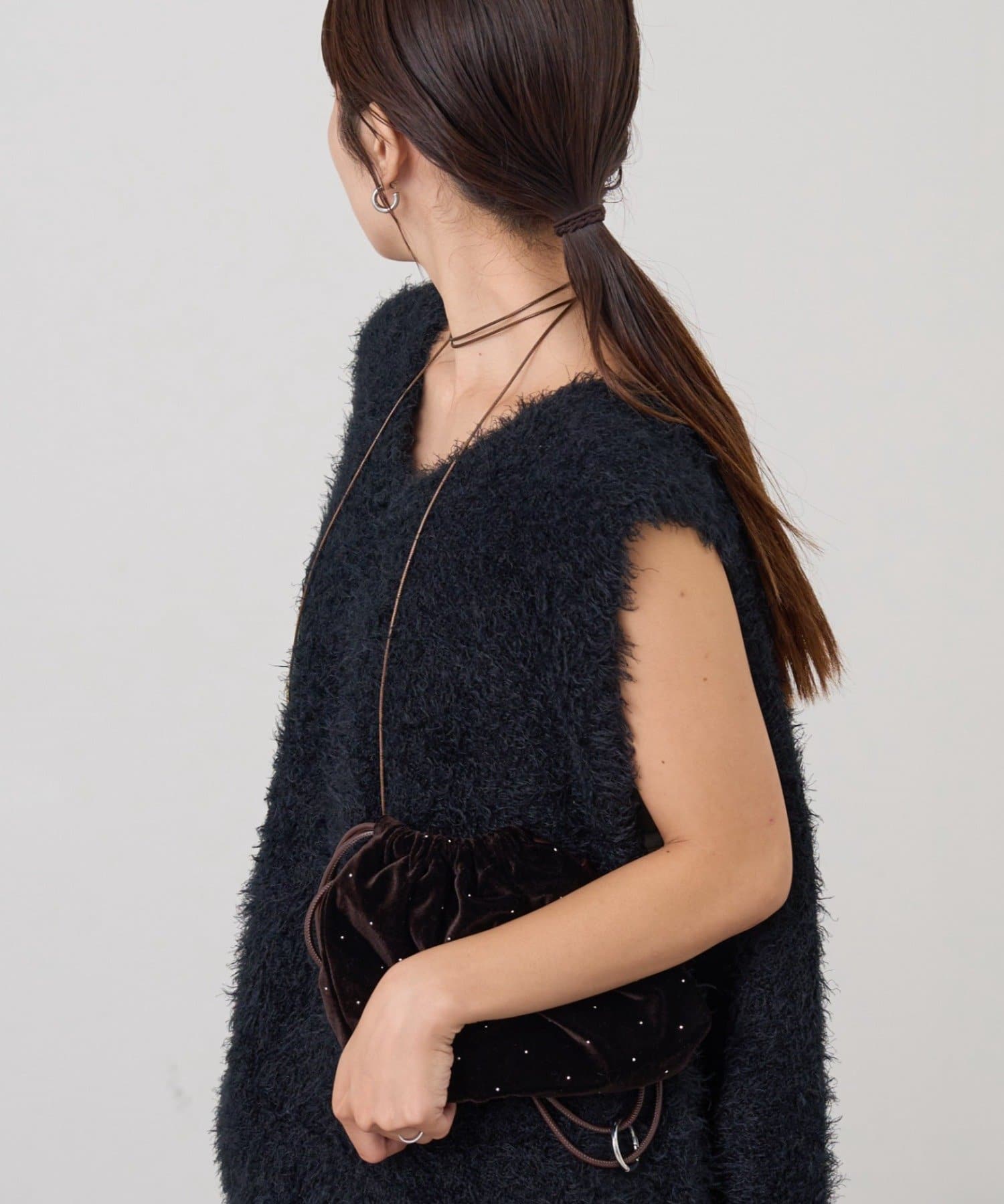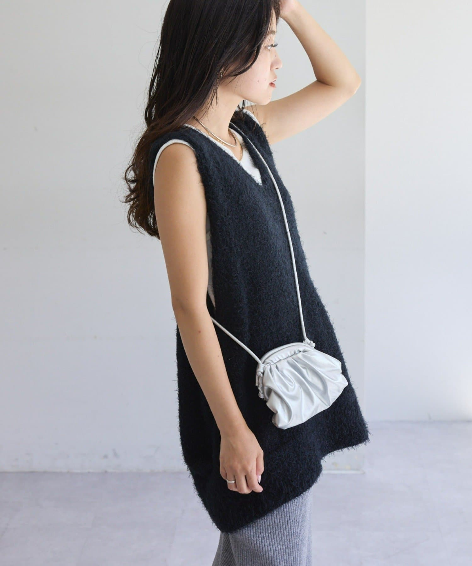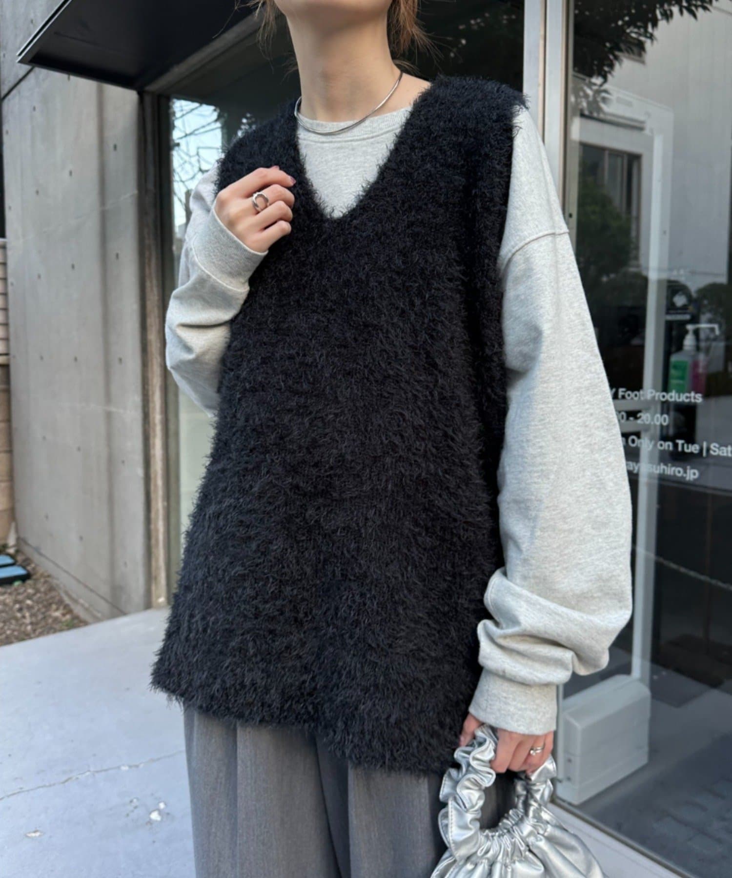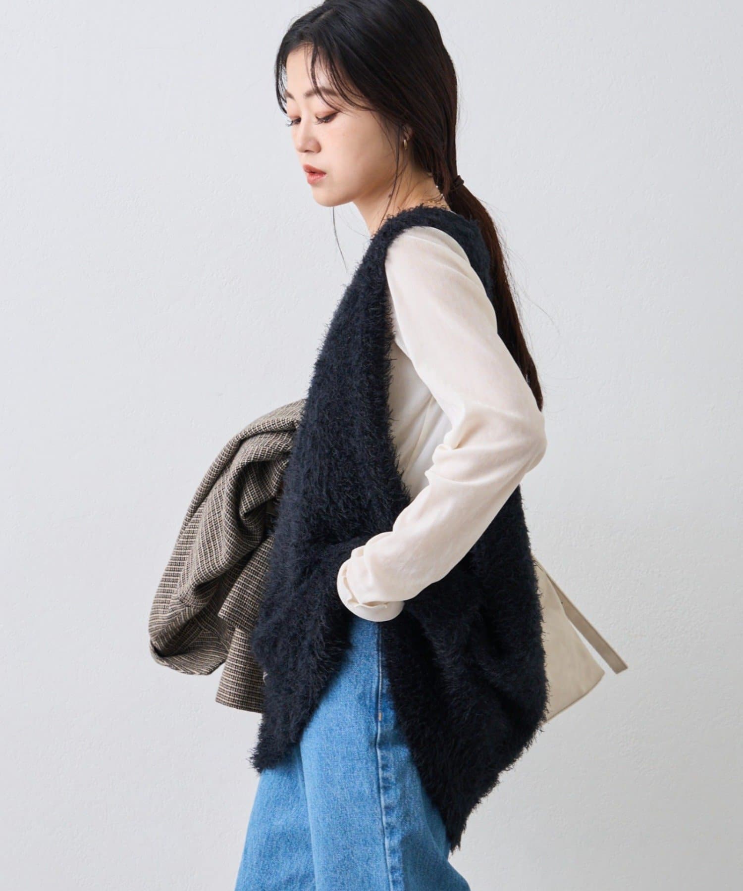 ふわふわのフェザーヤーンニットを使用したベスト。
