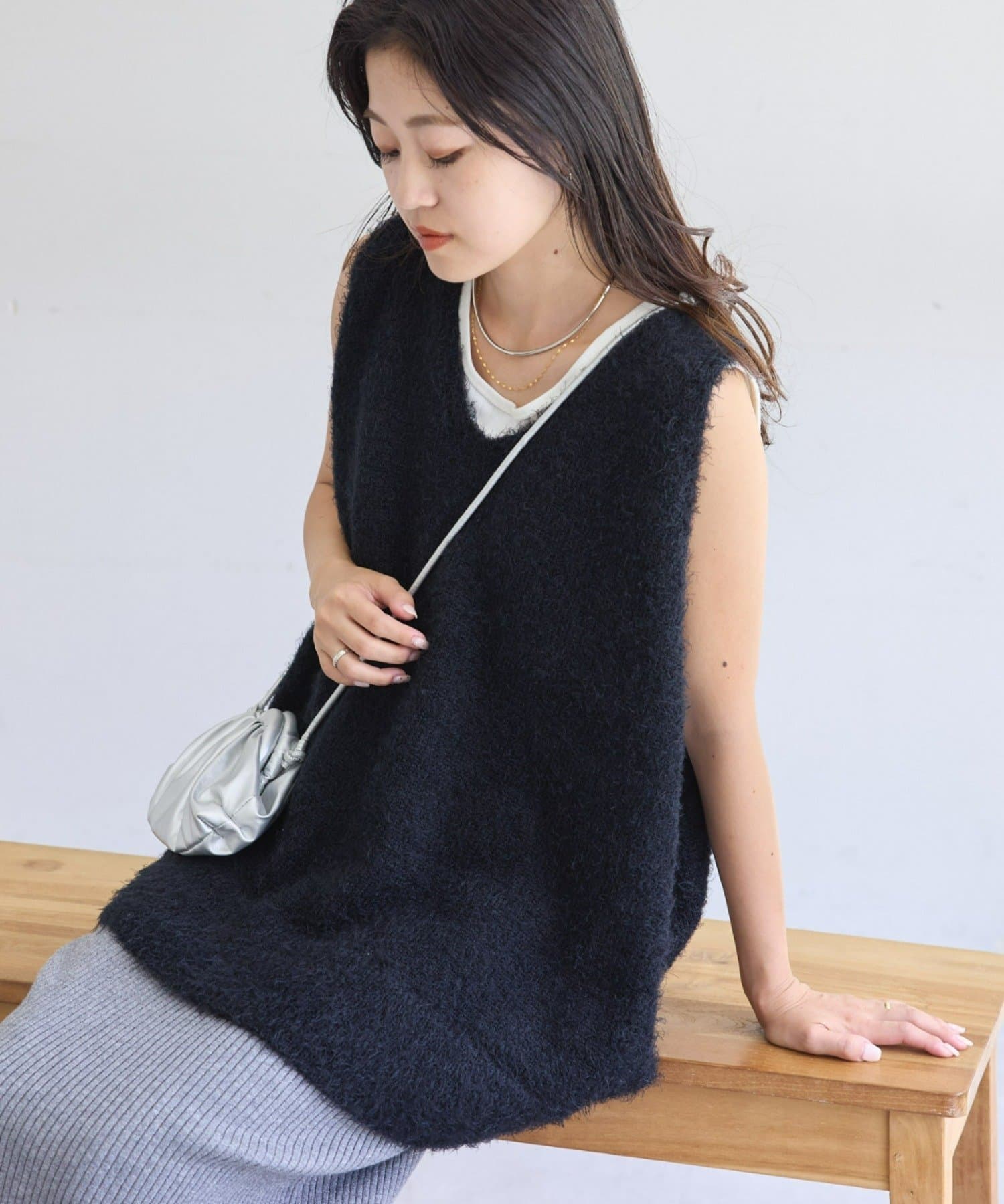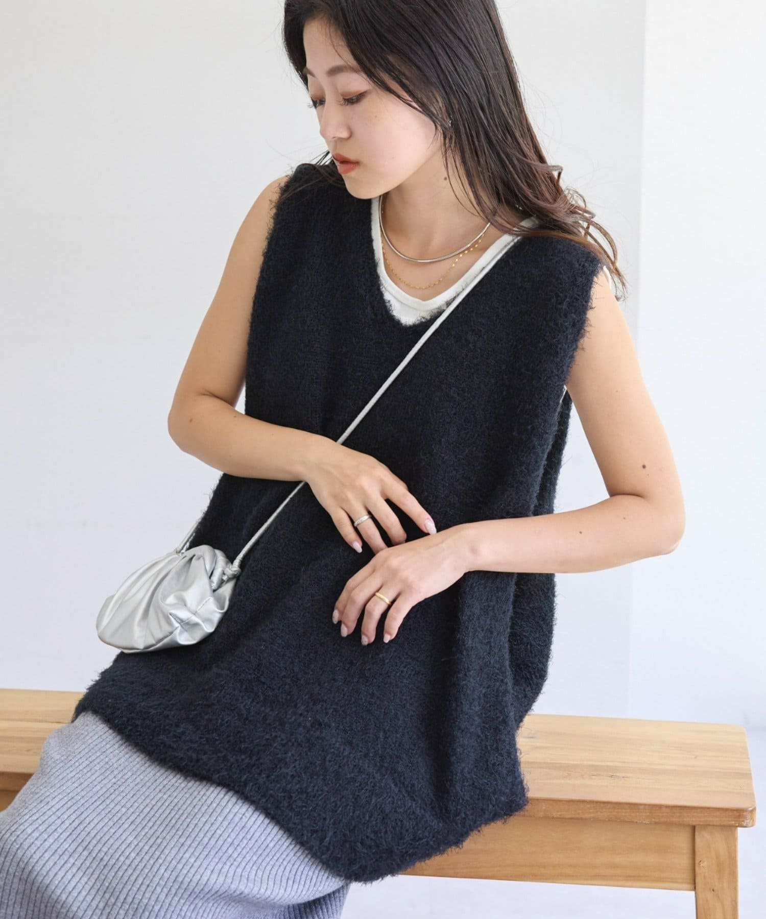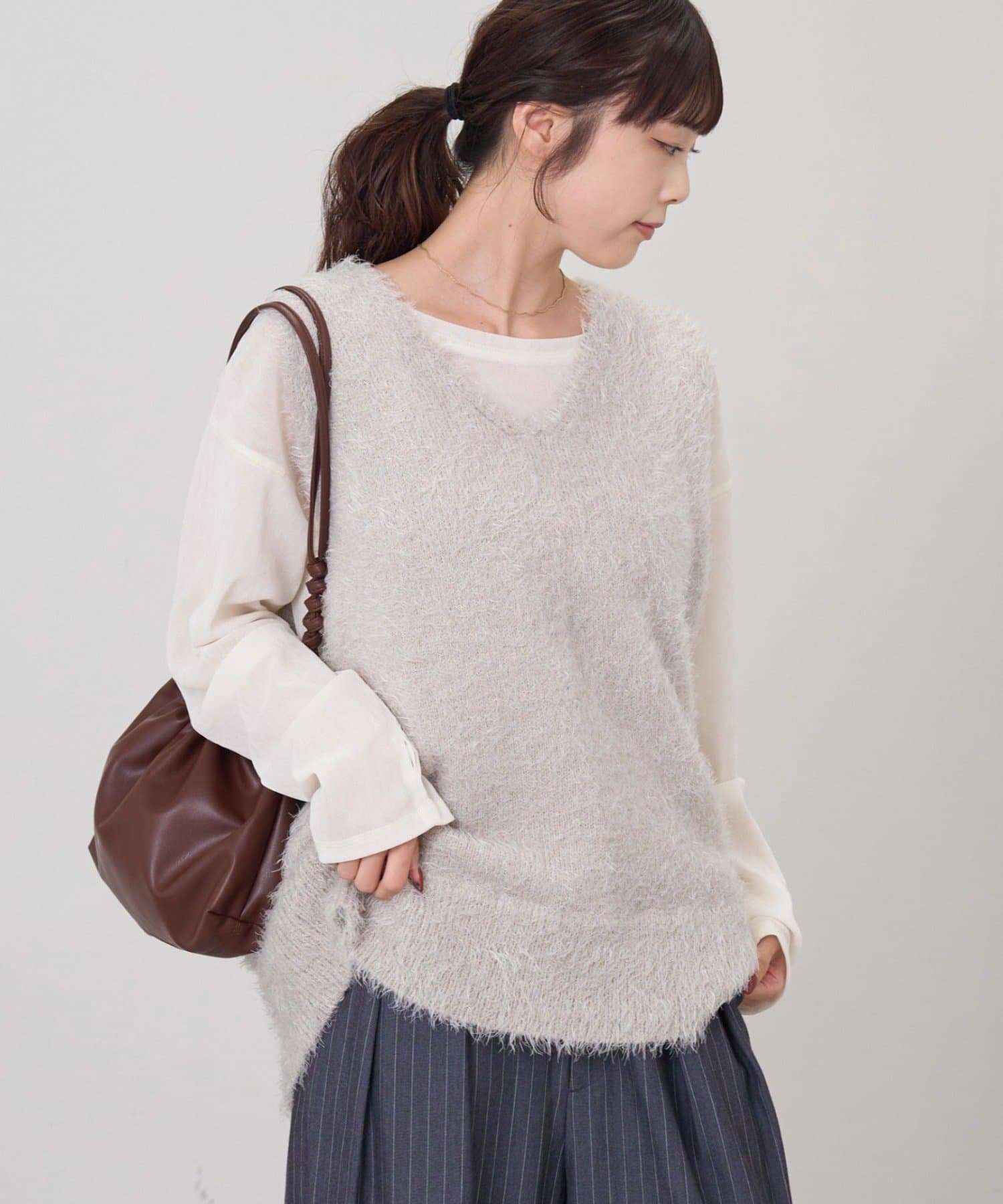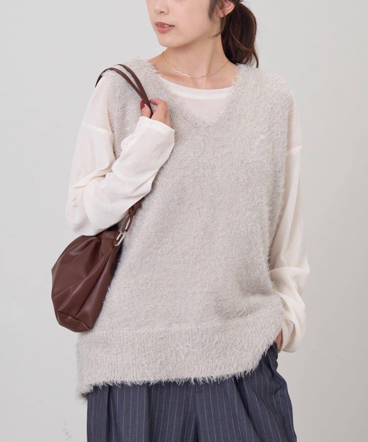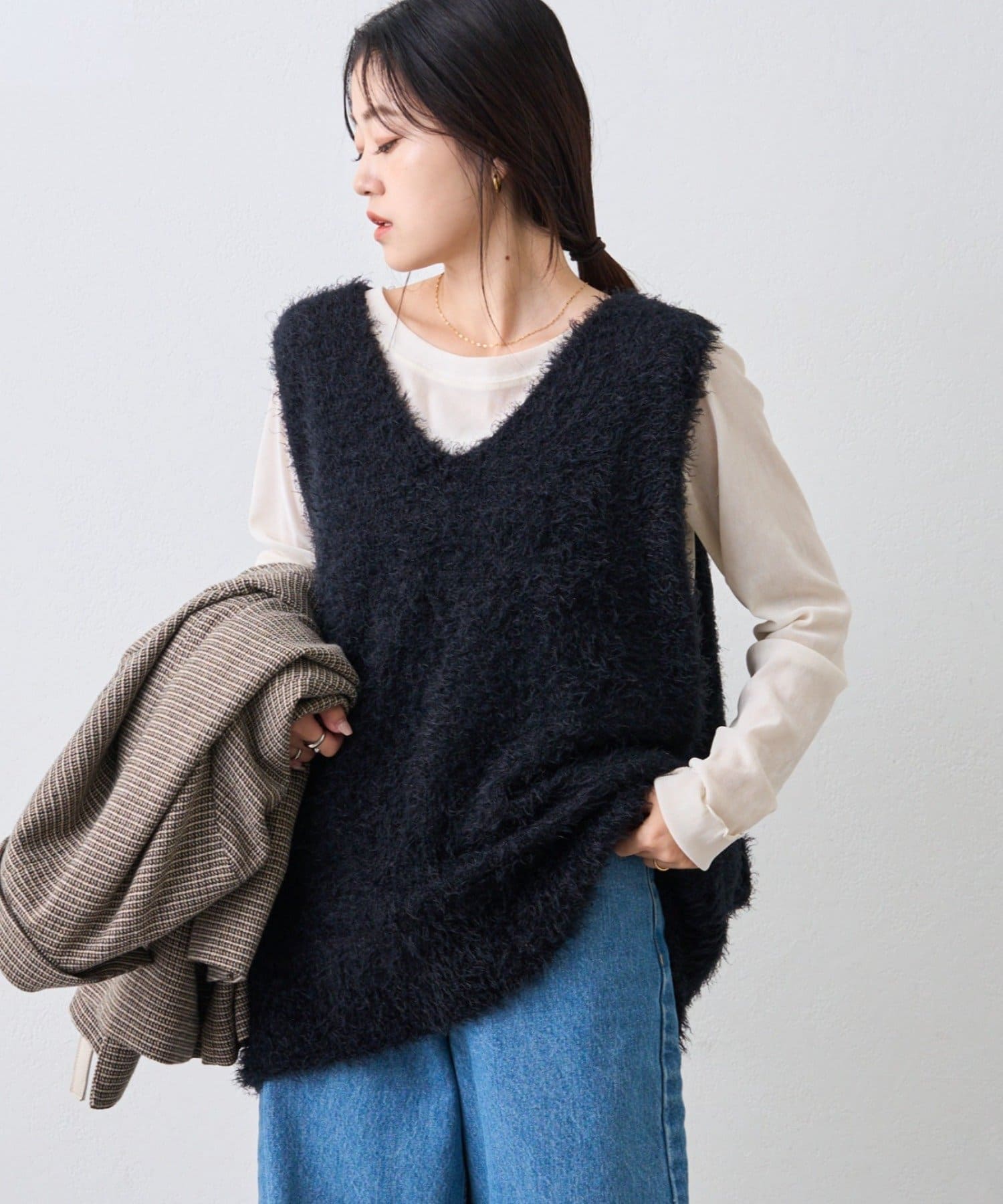 【体型カバーと抜け感◎】ミックスフェザーヤーンオーバーニットベスト(WEB限定)