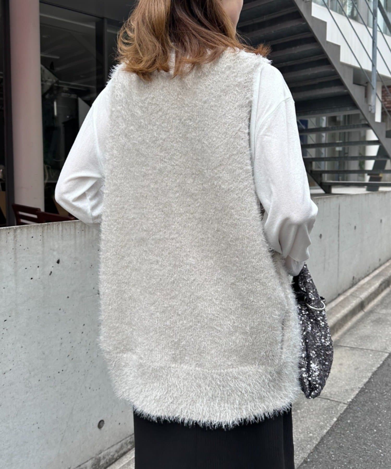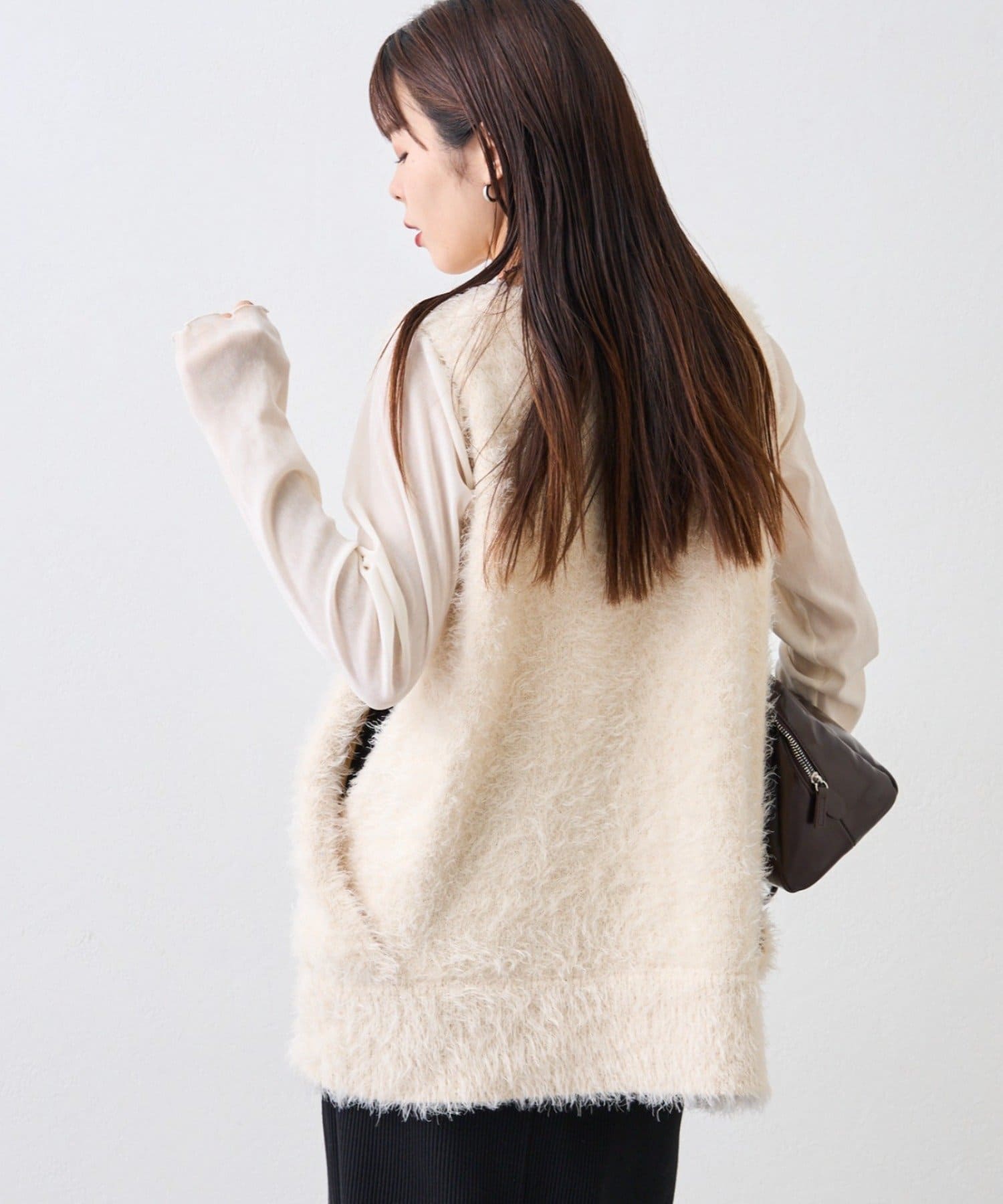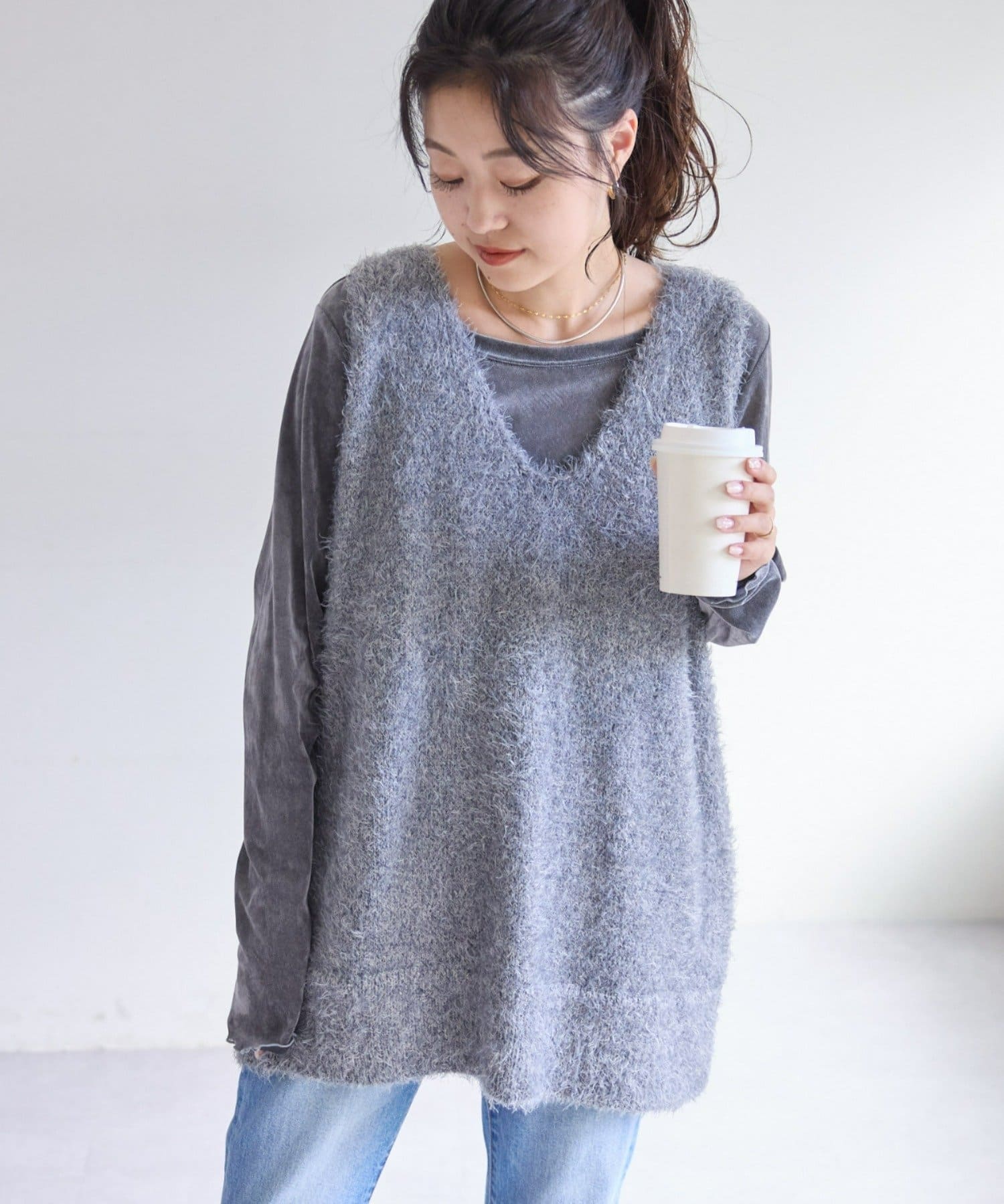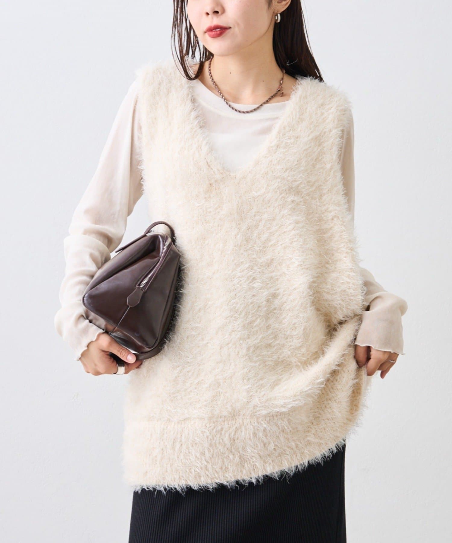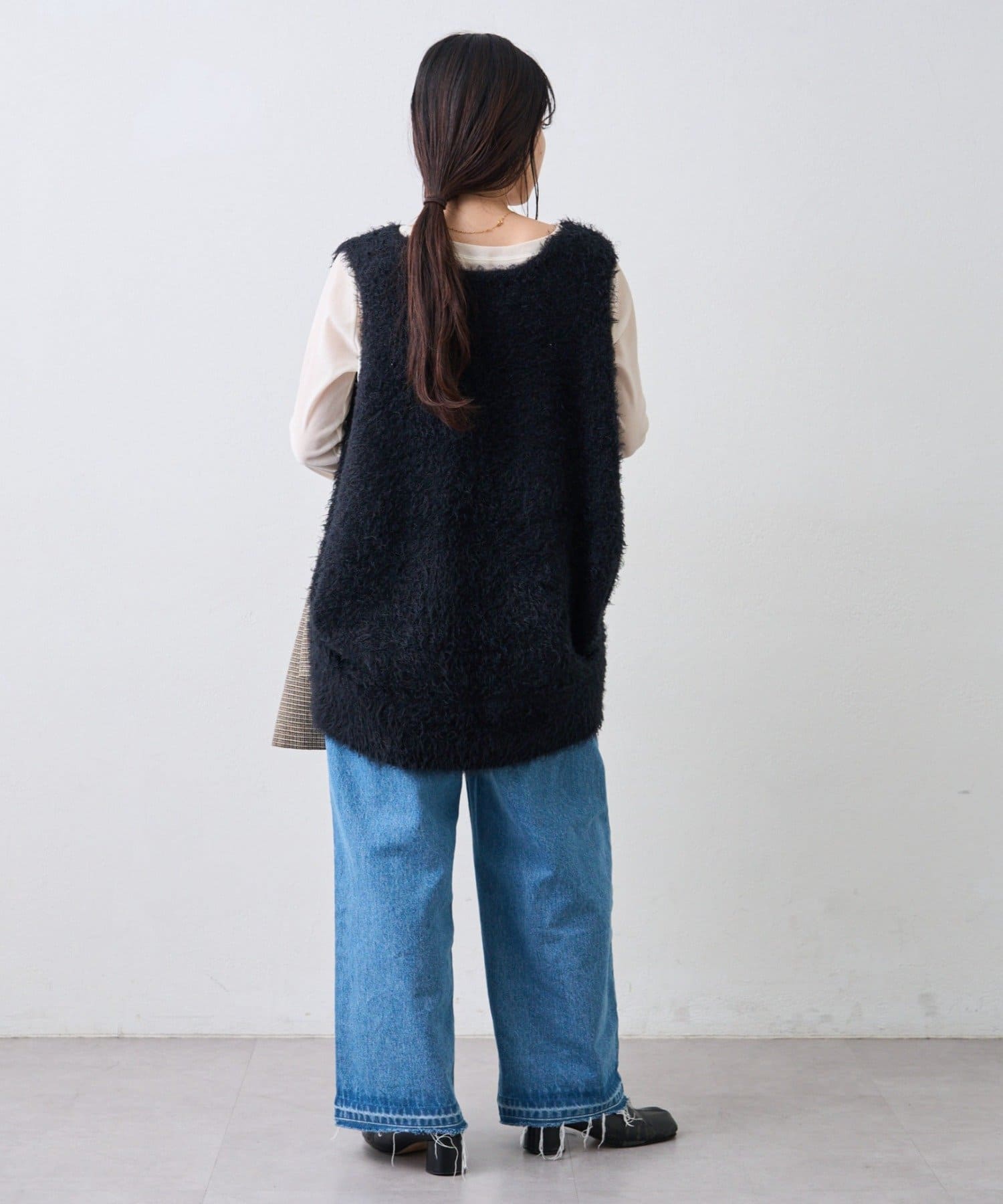 【体型カバーと抜け感◎】ミックスフェザーヤーンオーバーニットベスト(WEB限定)