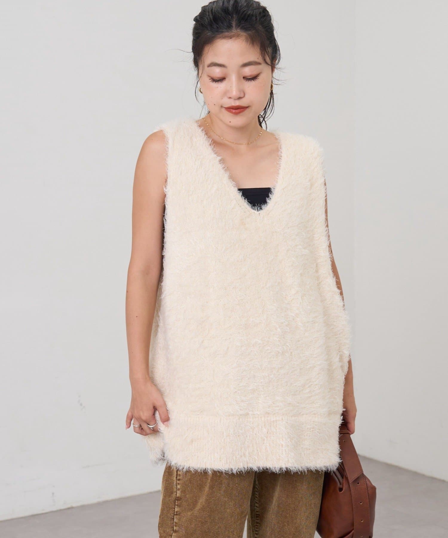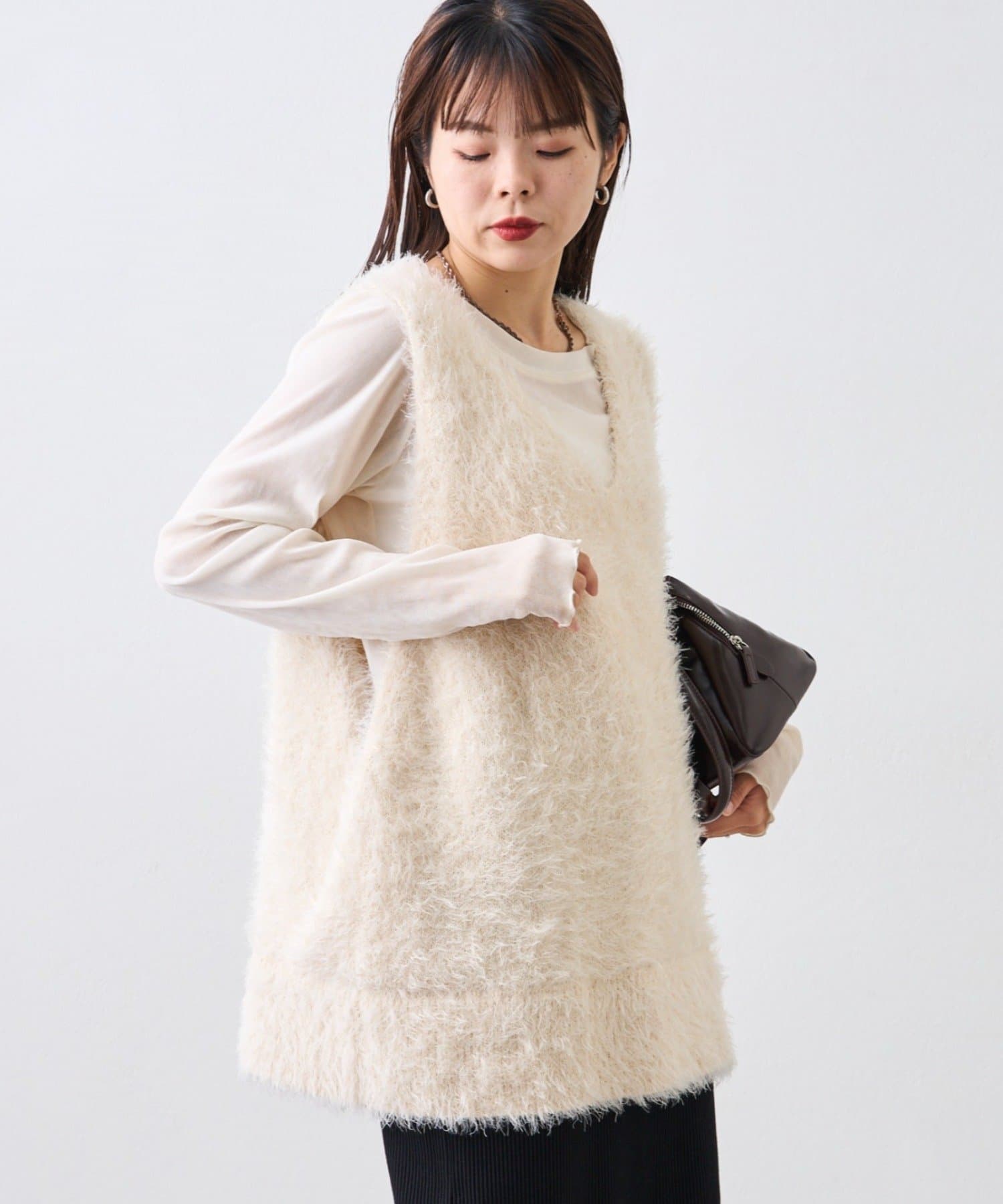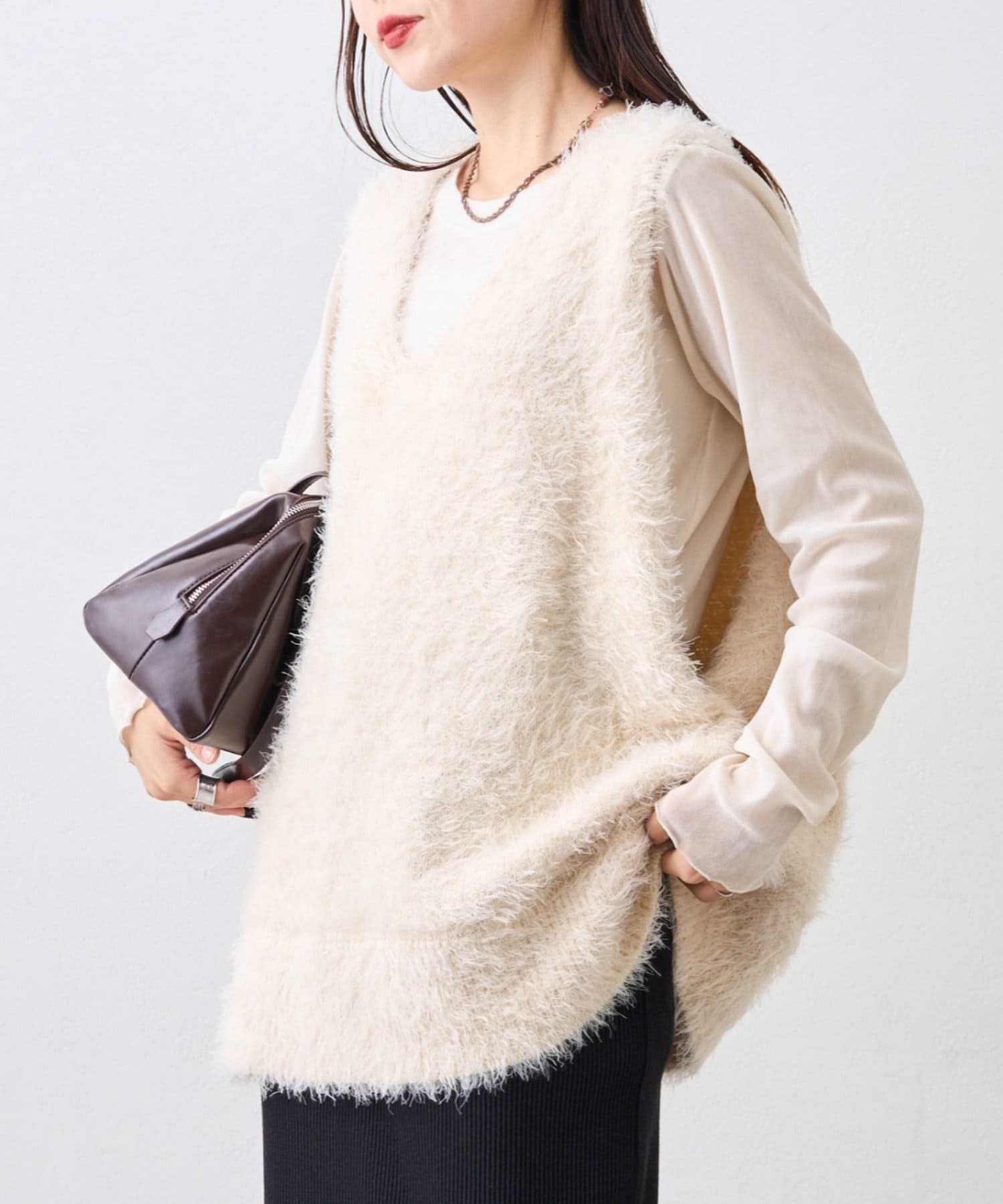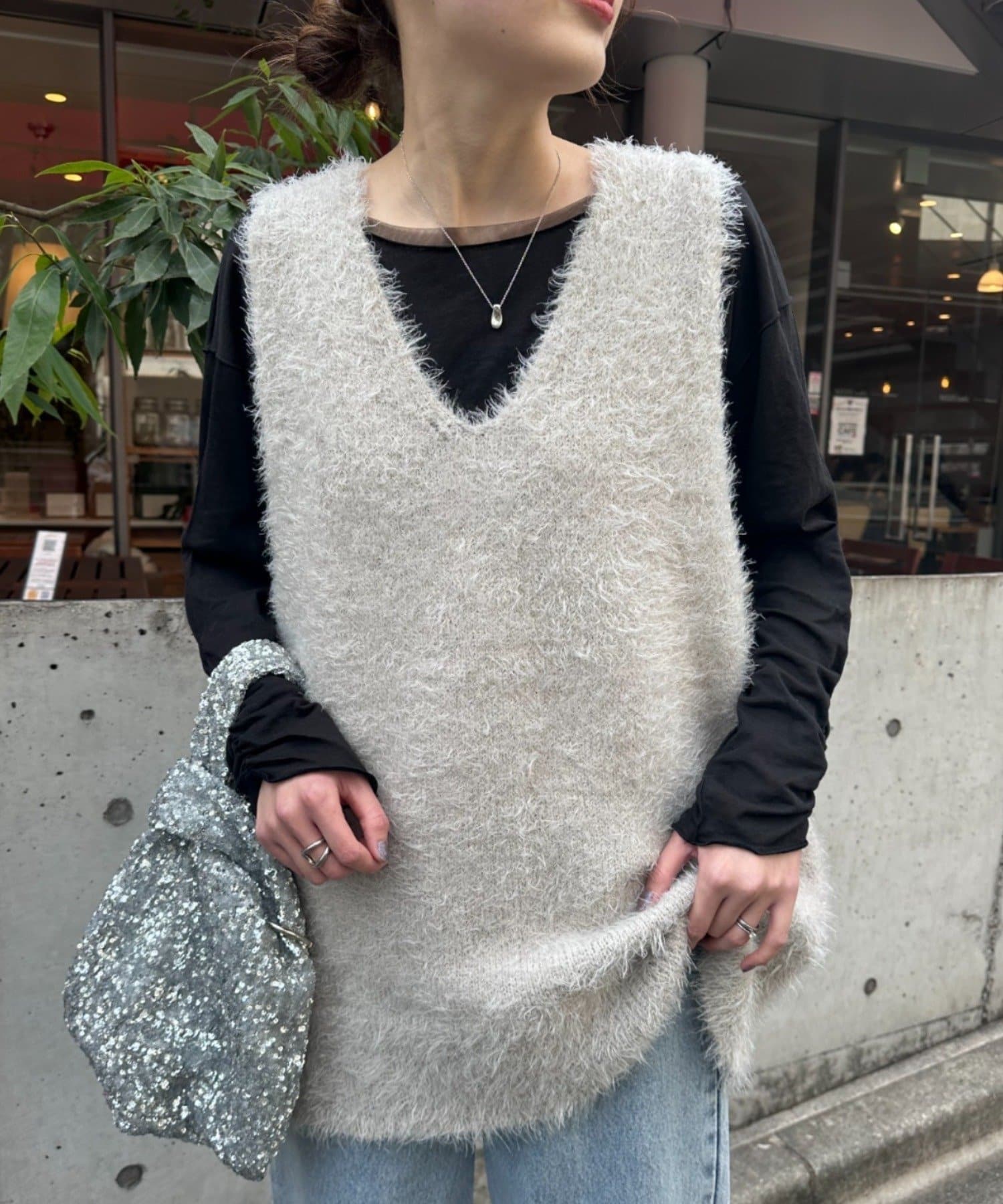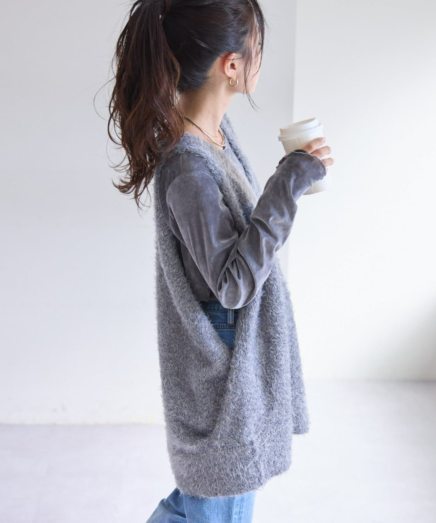 【体型カバーと抜け感◎】ミックスフェザーヤーンオーバーニットベスト(WEB限定)