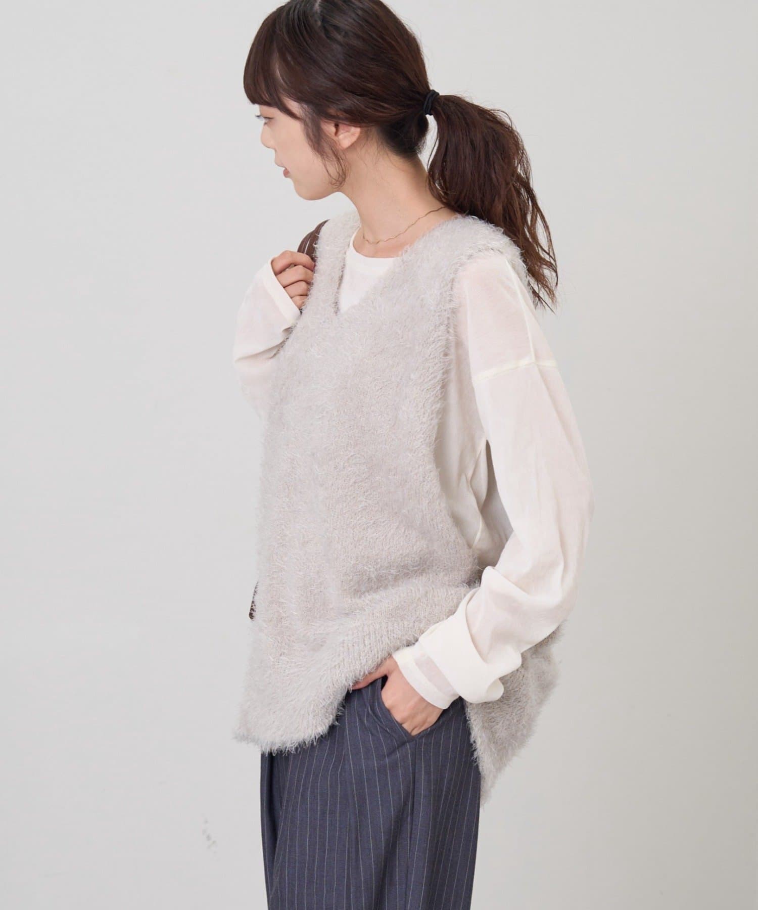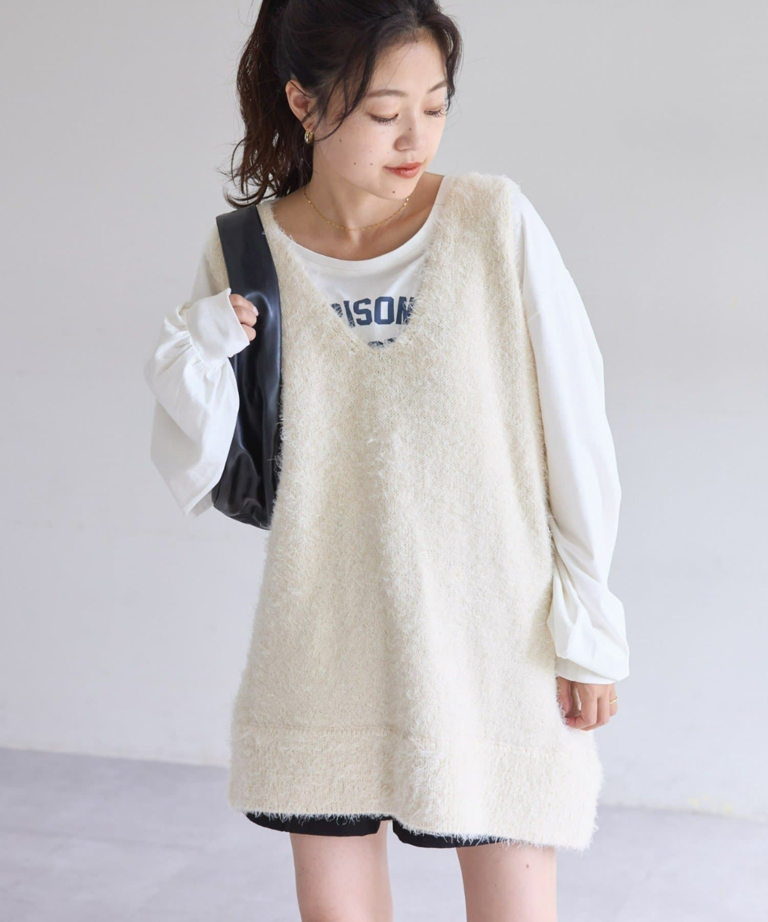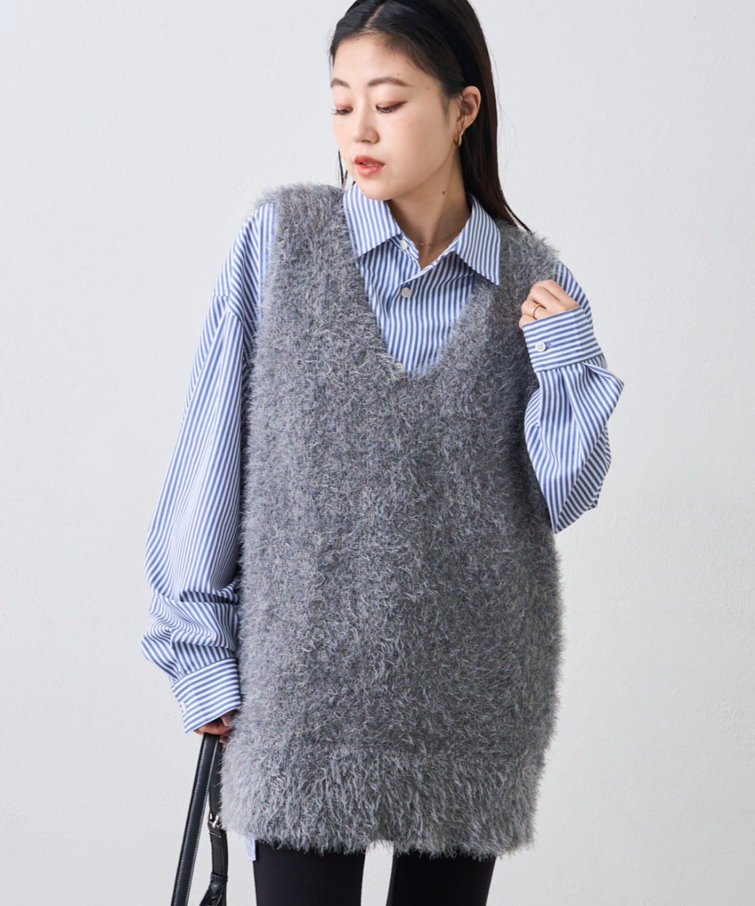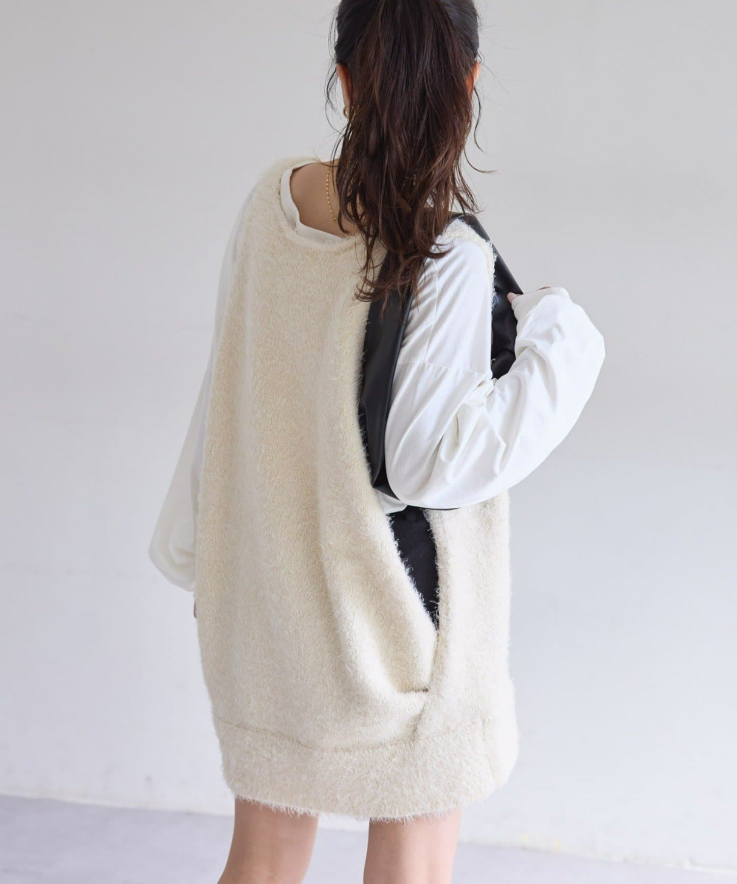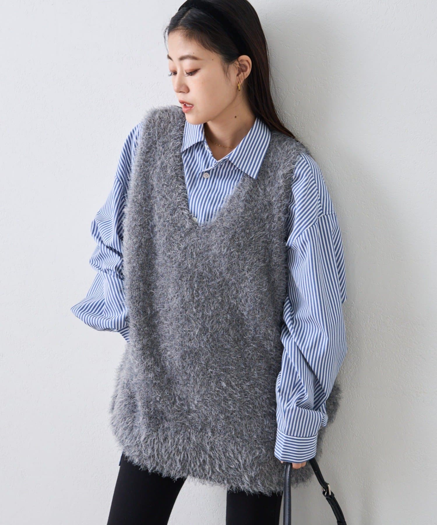 【体型カバーと抜け感◎】ミックスフェザーヤーンオーバーニットベスト(WEB限定)