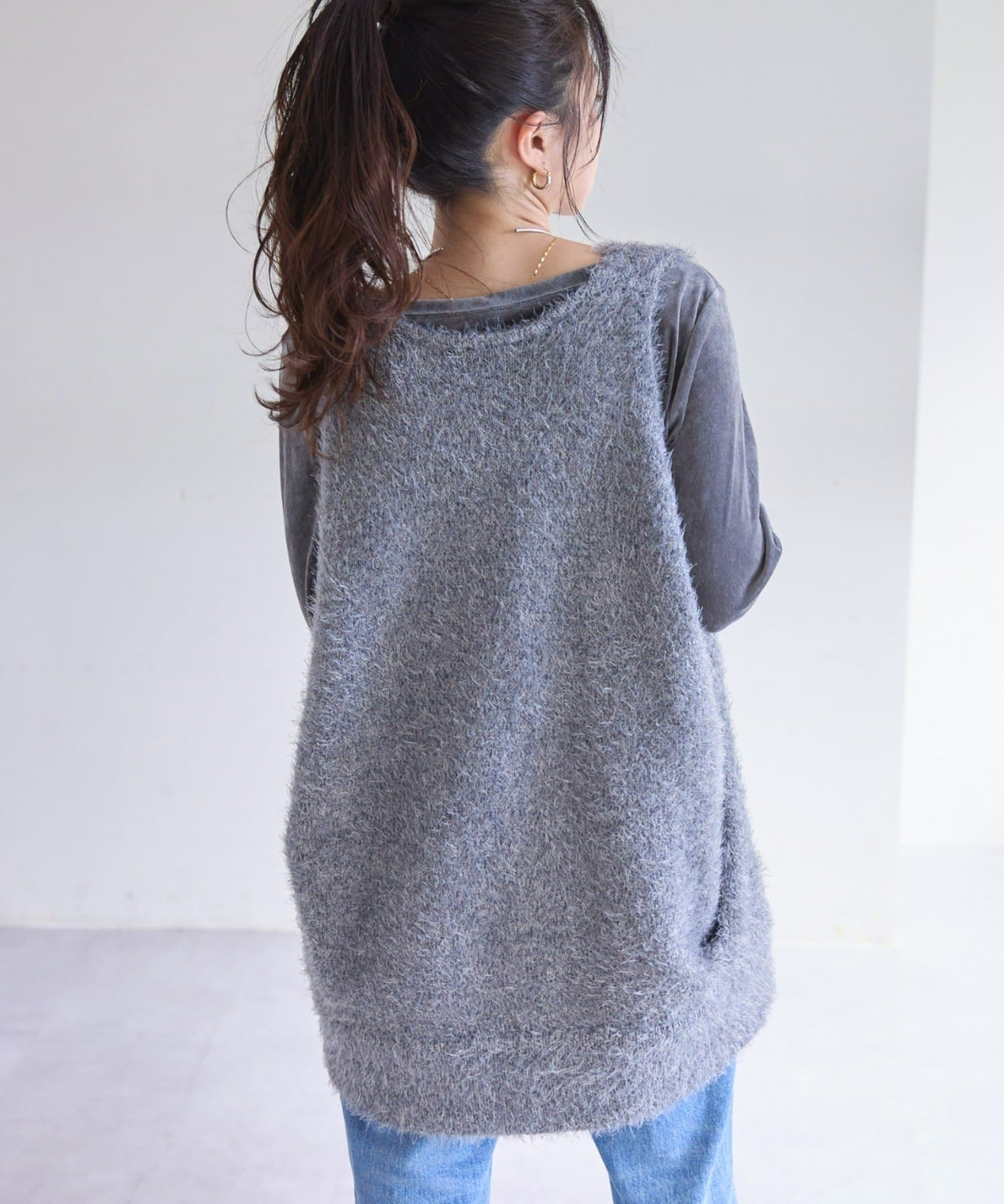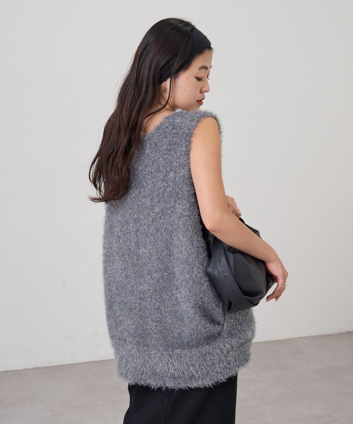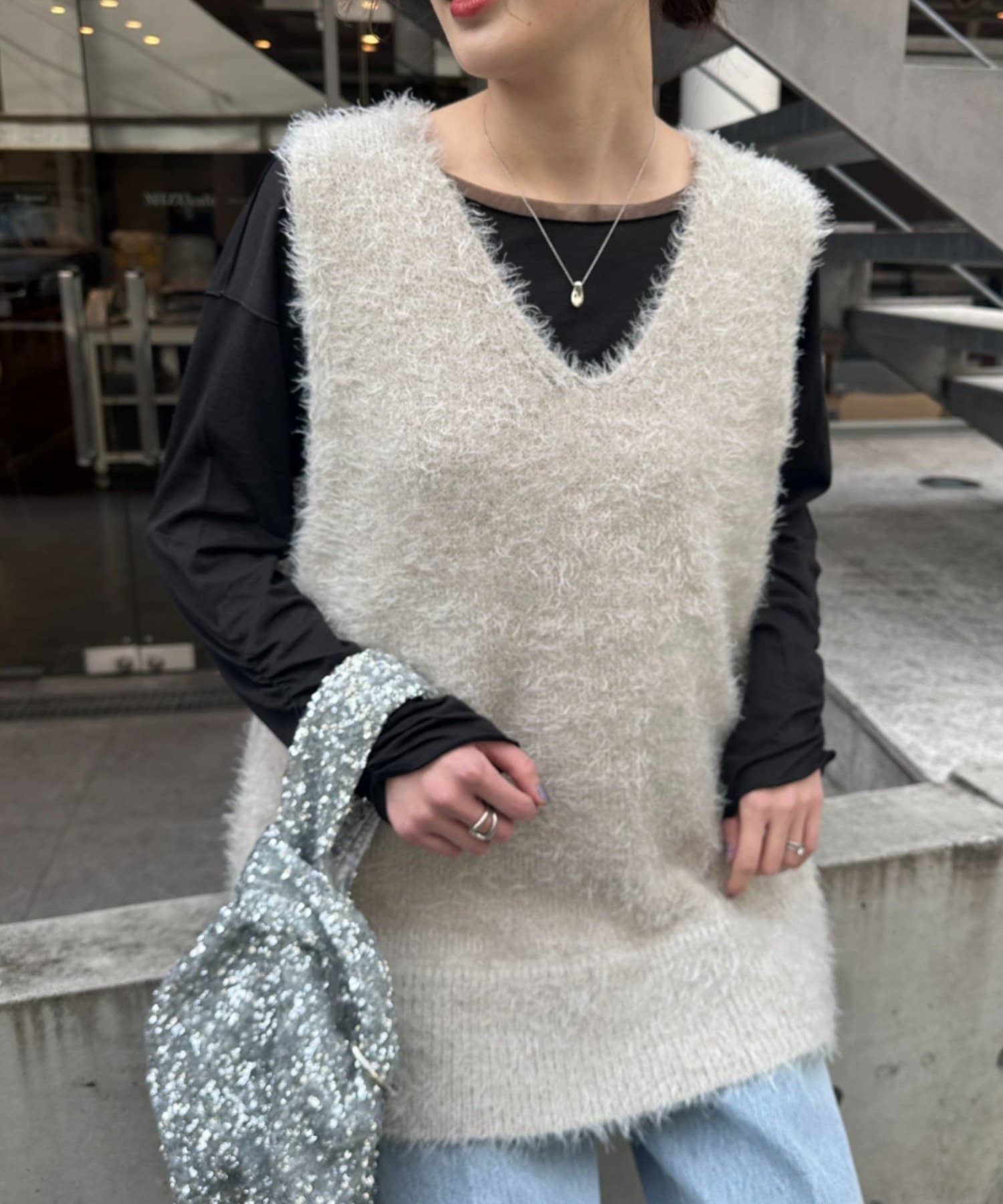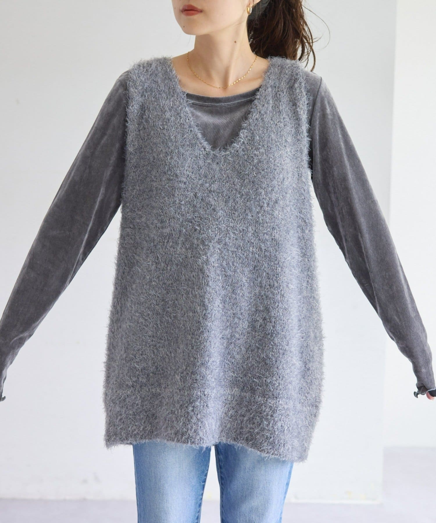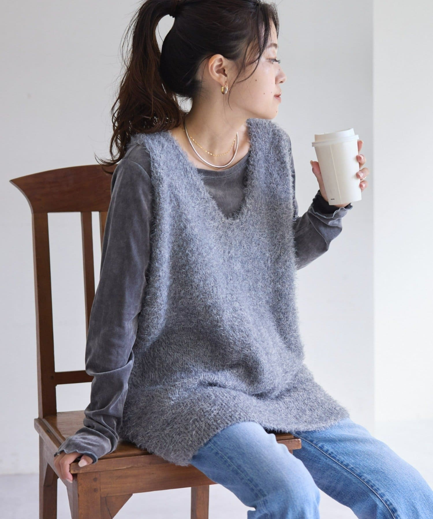 【体型カバーと抜け感◎】ミックスフェザーヤーンオーバーニットベスト(WEB限定)