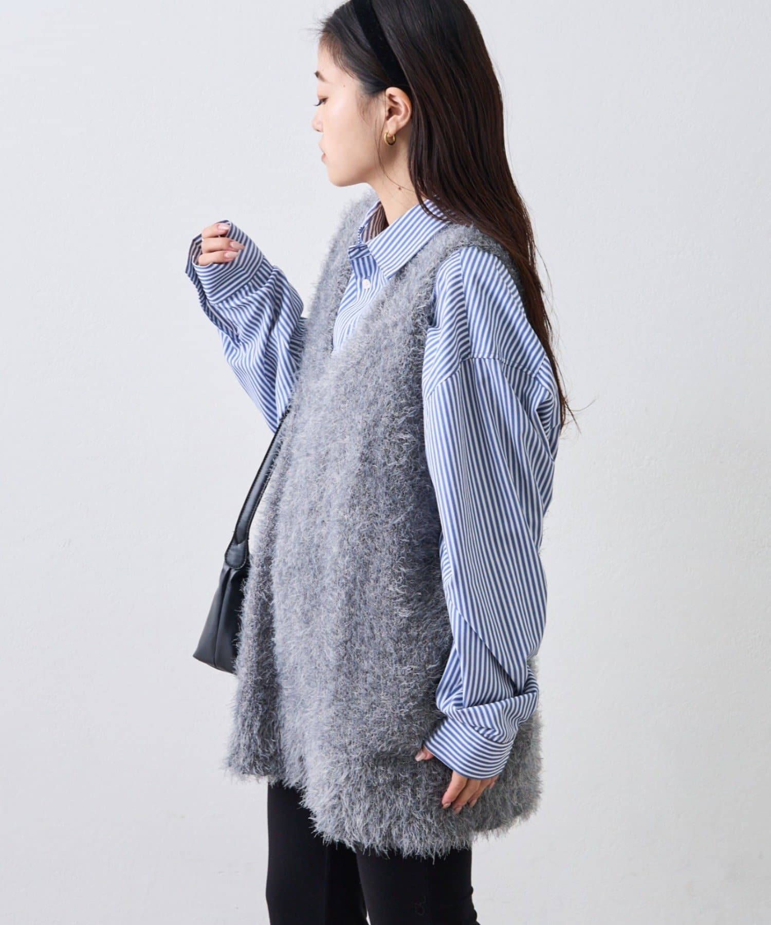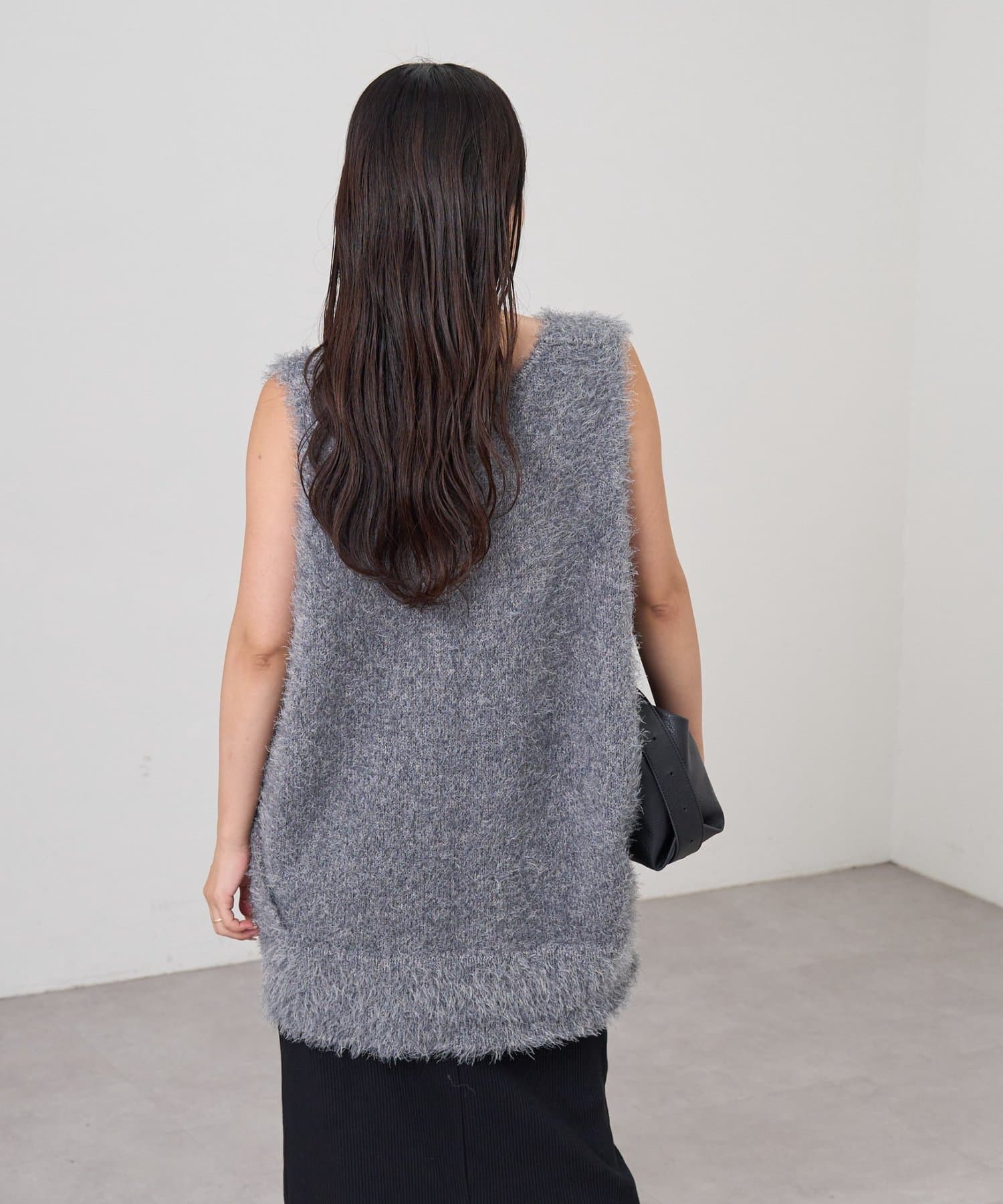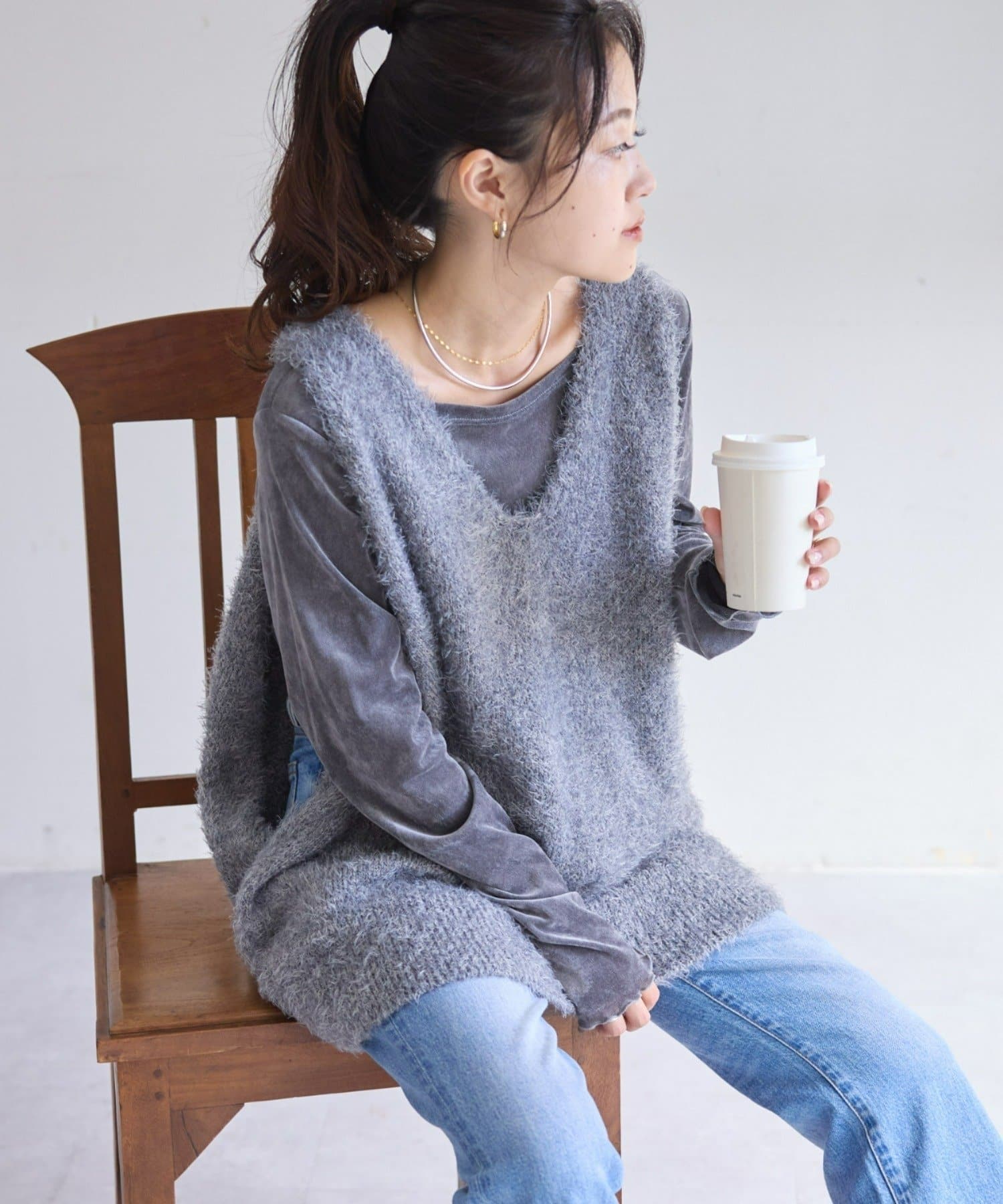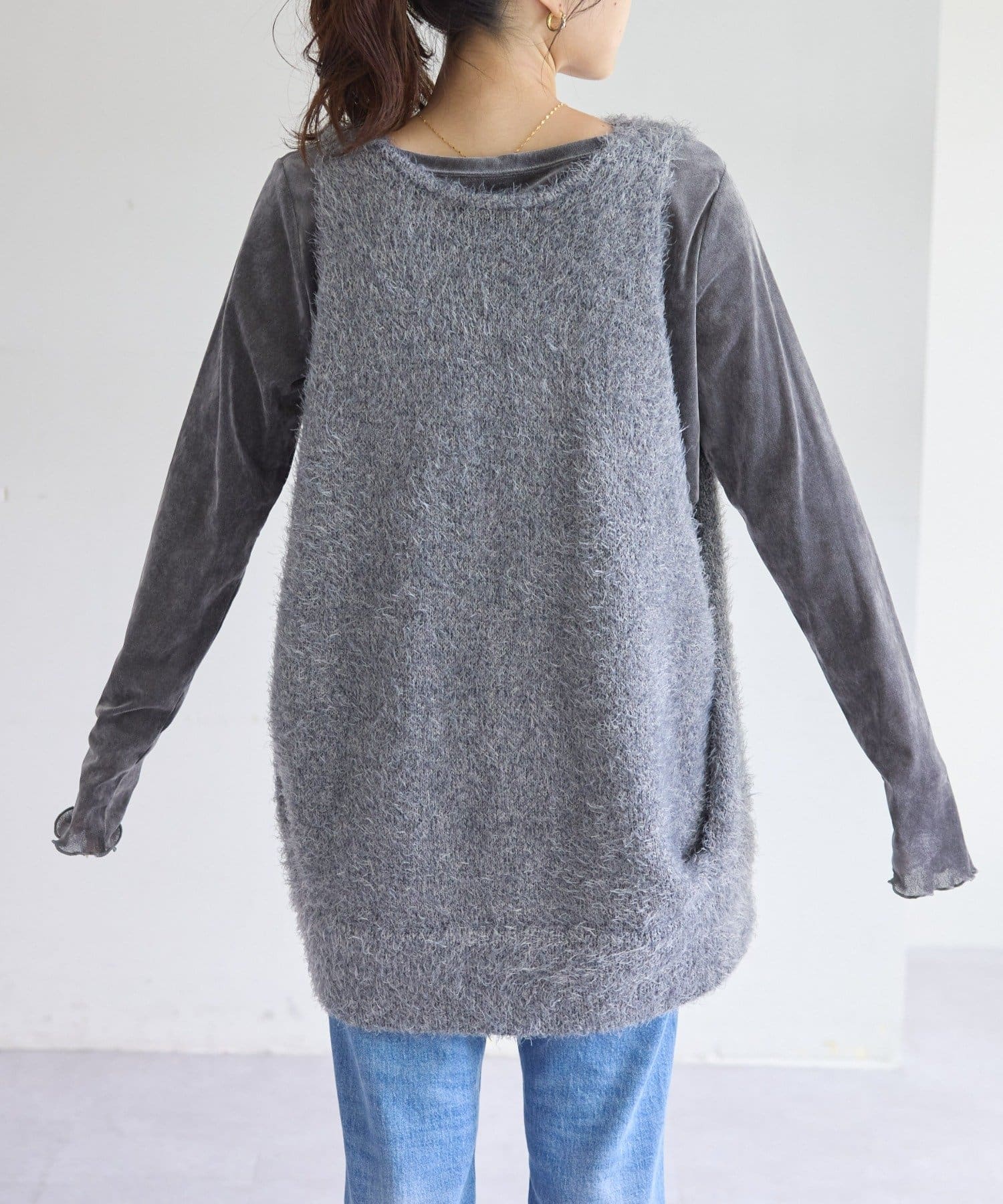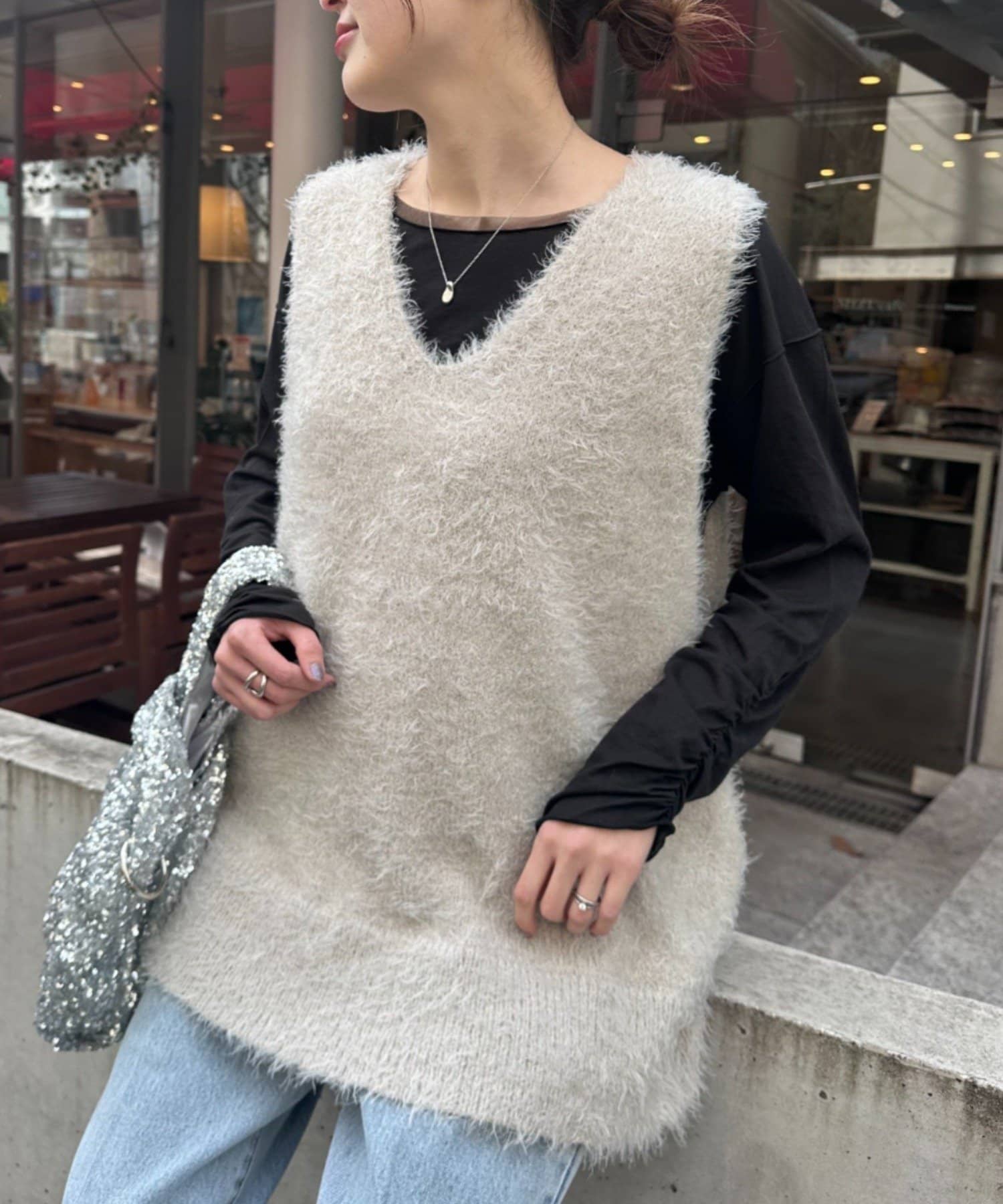 【体型カバーと抜け感◎】ミックスフェザーヤーンオーバーニットベスト(WEB限定)